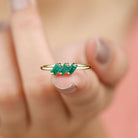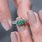 Baguette Cut Real Emerald Three Stone Promise Ring