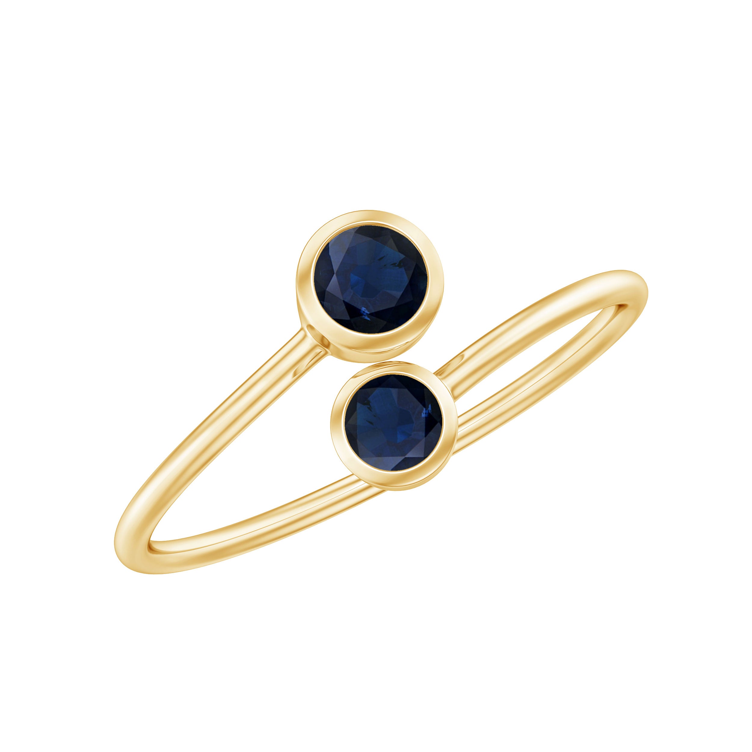 1/2 CT Bezel Set Blue Sapphire Two Stone Promise Ring