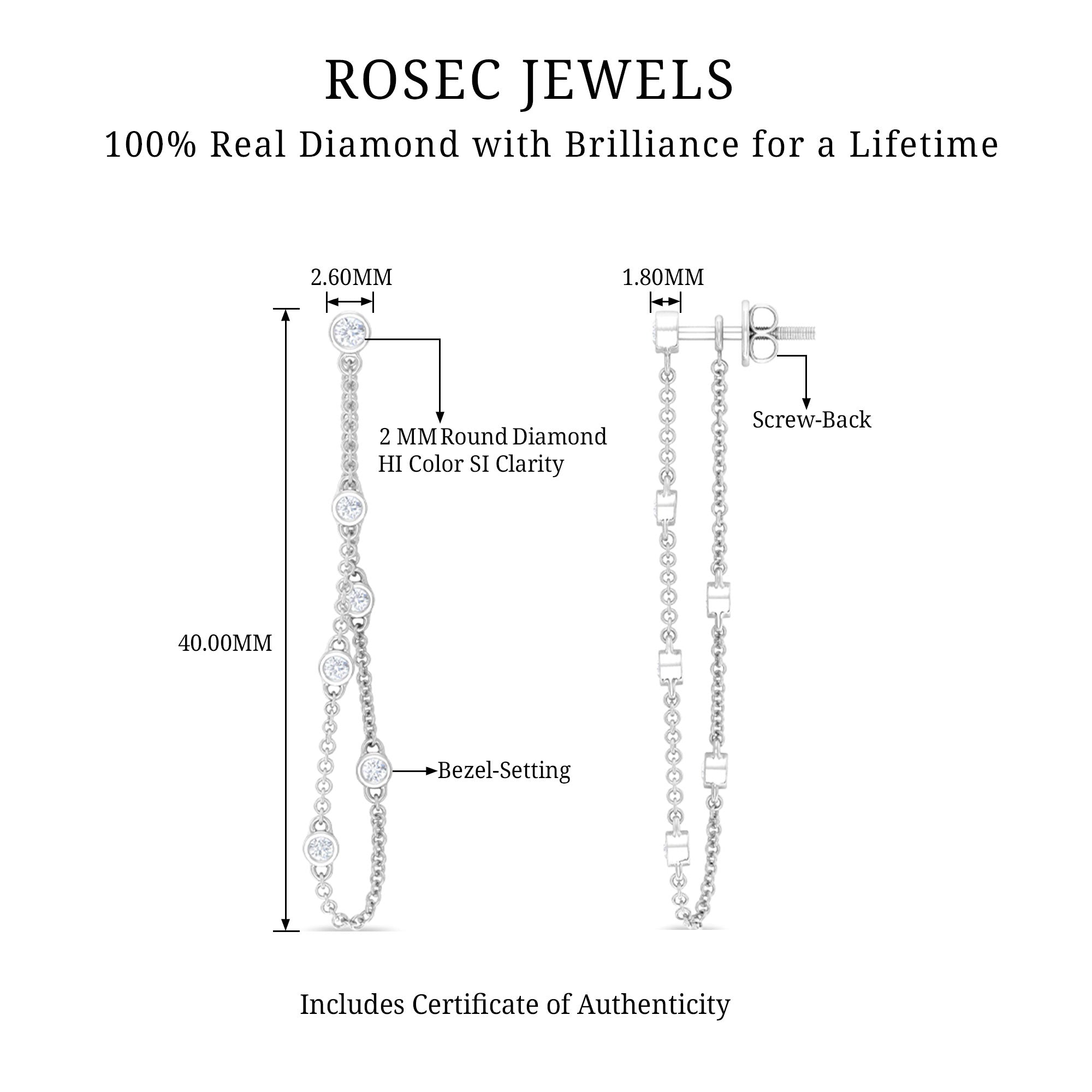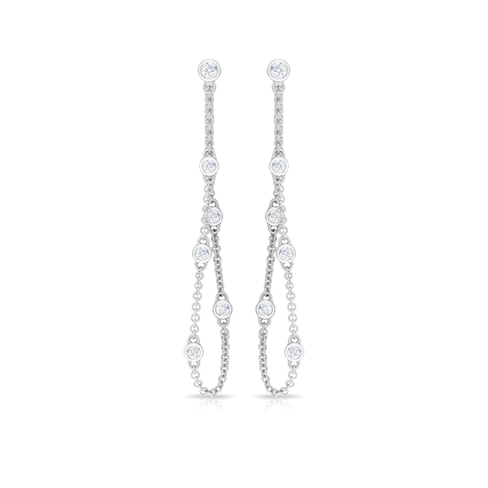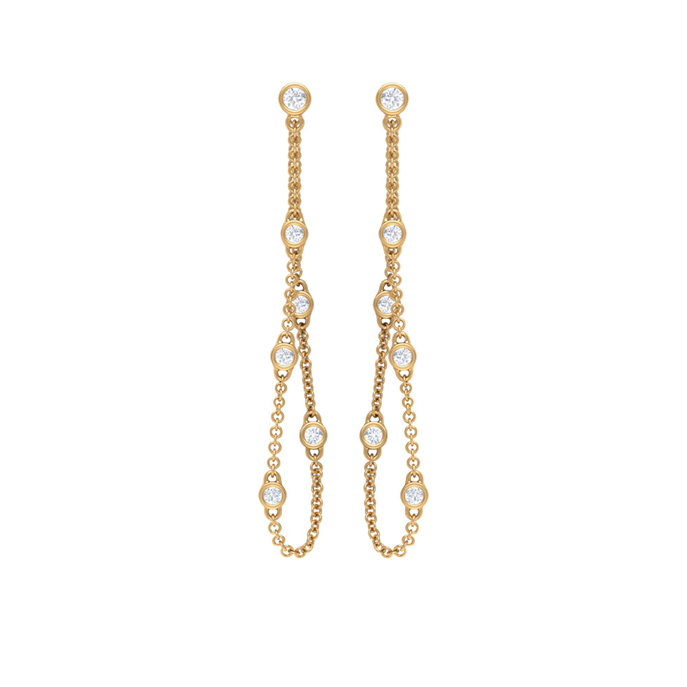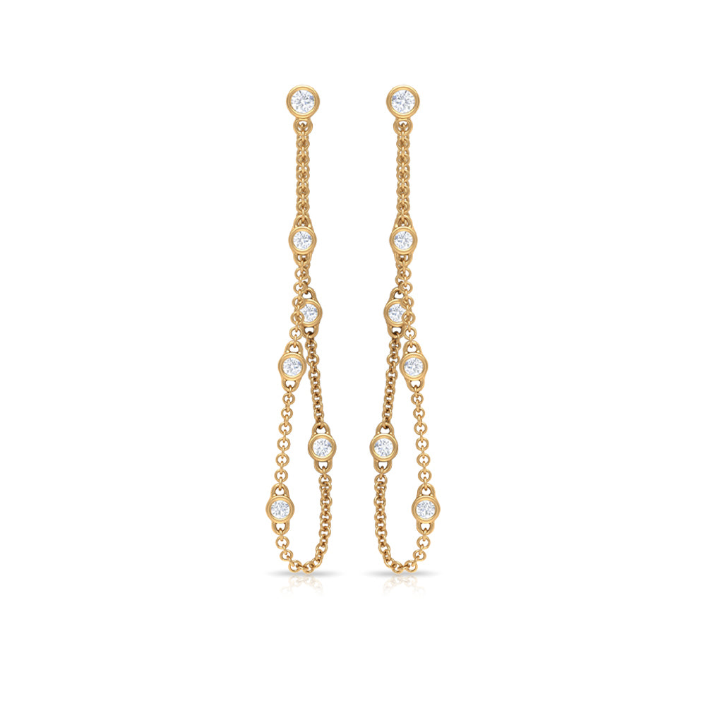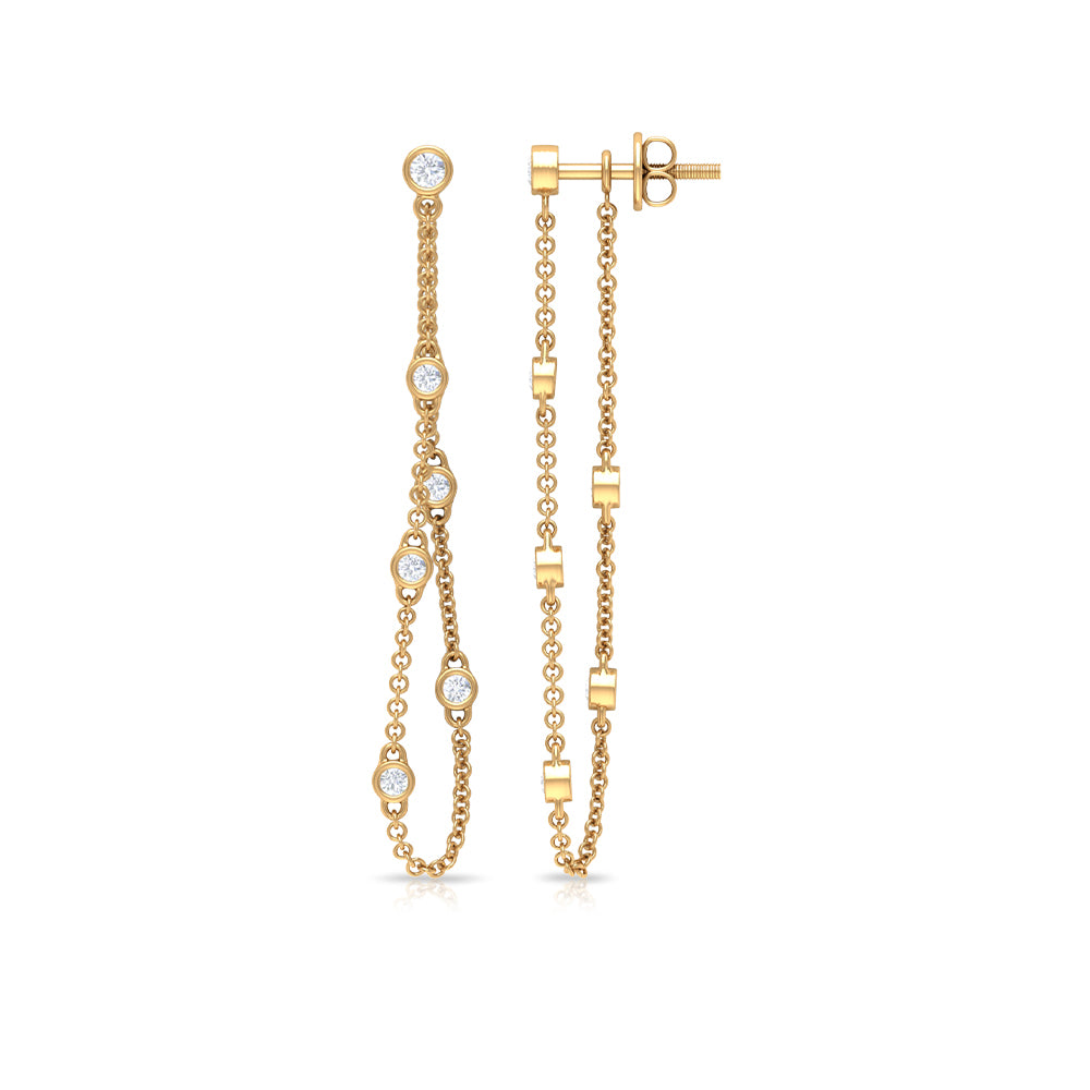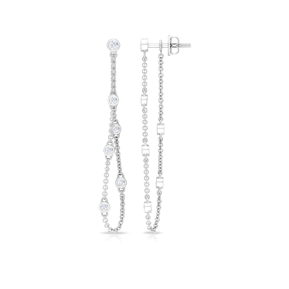 1/2 CT Bezel Set Diamond Drop Chain Earrings