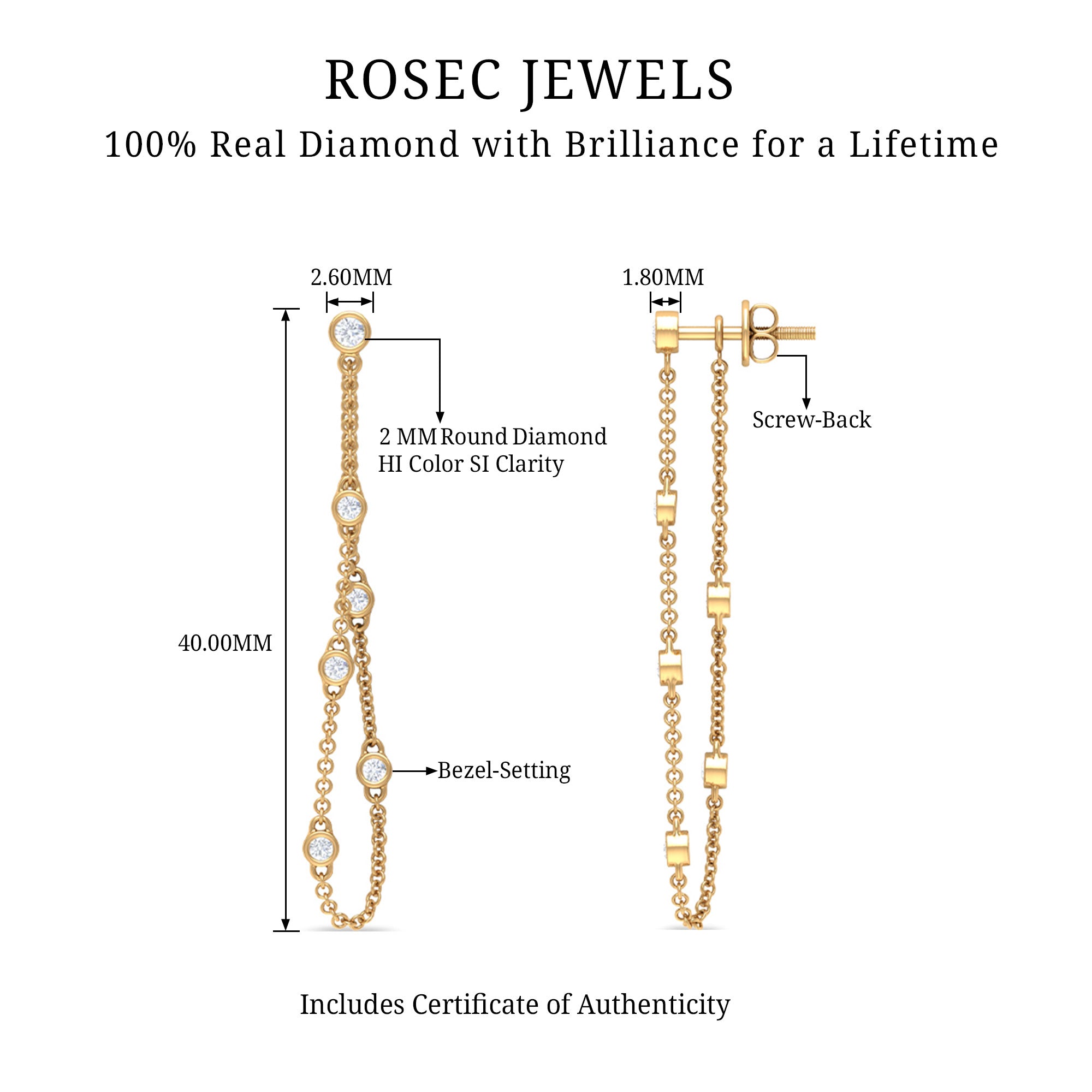 Make a statement when you flaunt these Chain earrings with Bezel Set Diamond accent, the long chain goes all the way back to the ear making it as unique as you.