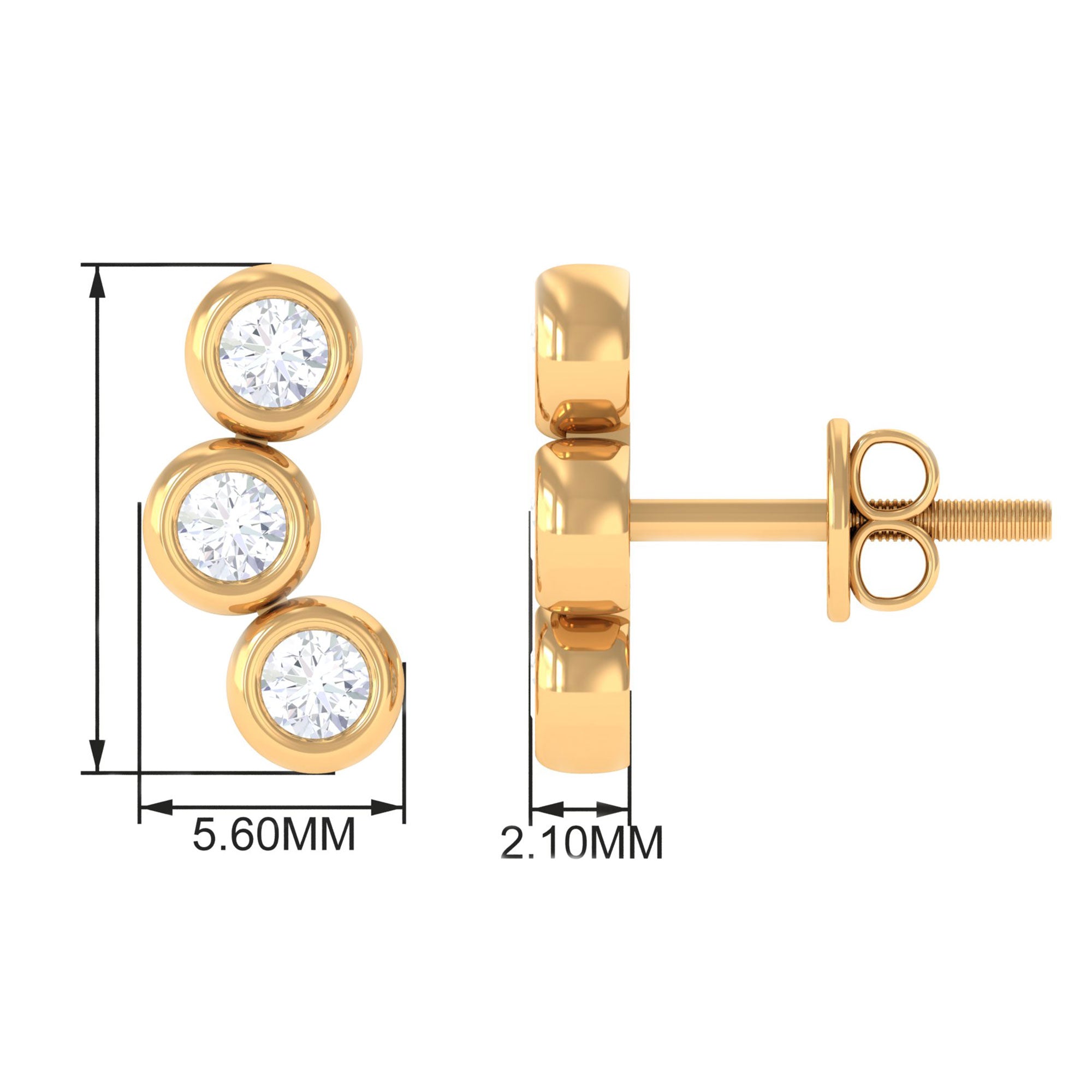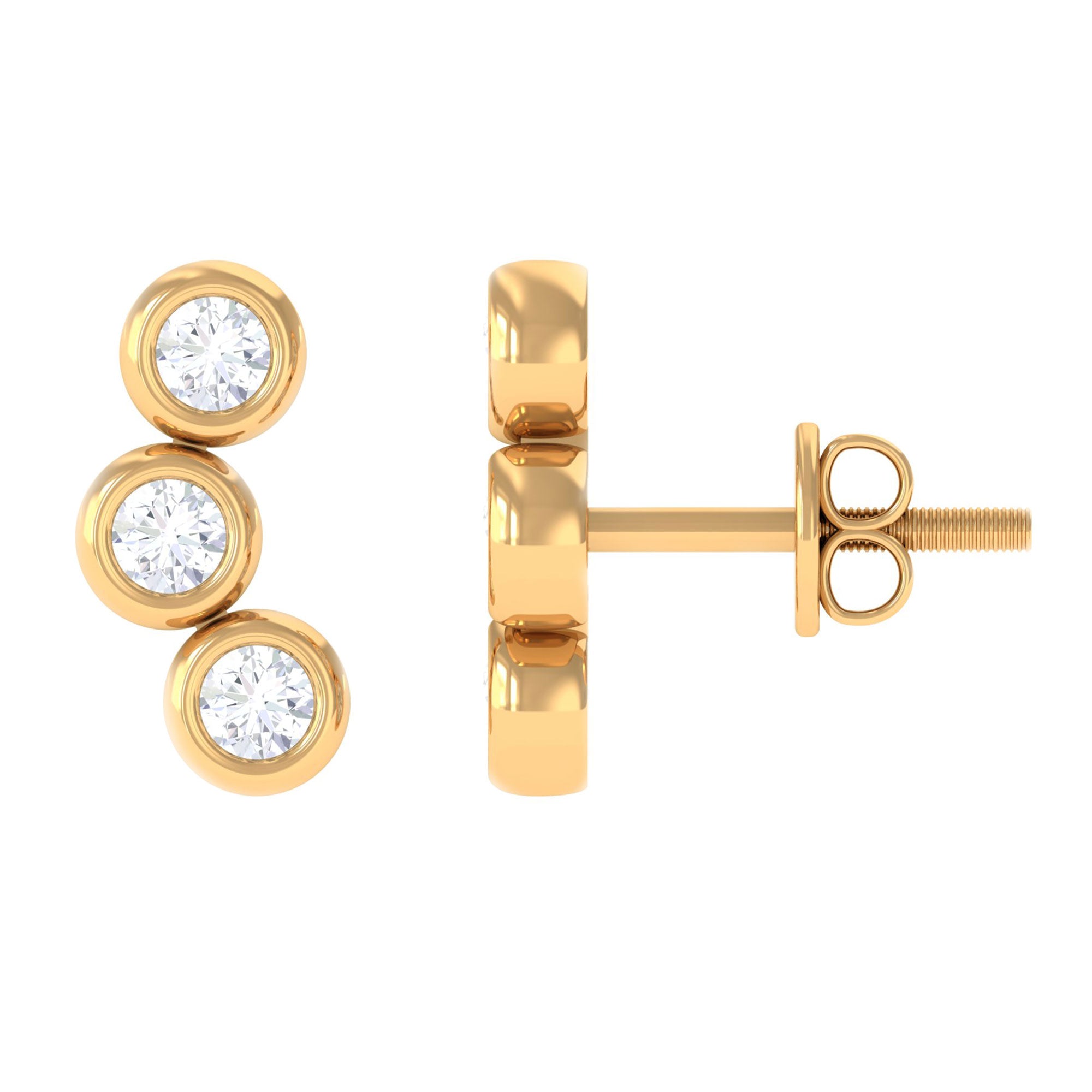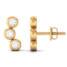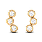 Make a statement with these stunning Three Stone Stud Earrings. Set in your choice of yellow, rose, and white gold, these earrings feature three round Moissanite stones in a beautiful bezel setting. The simple yet elegant design of these stud earrings makes them perfect for both everyday wear and special occasions.
