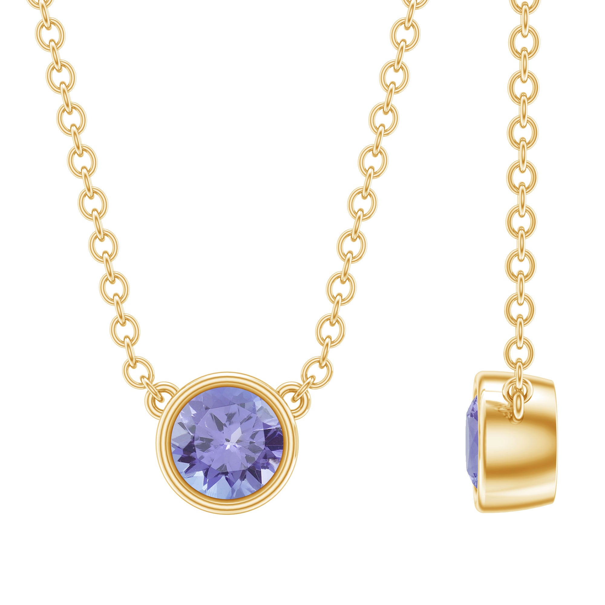1/2 CT Bezel Set Tanzanite Solitaire Pendant Necklace in Gold