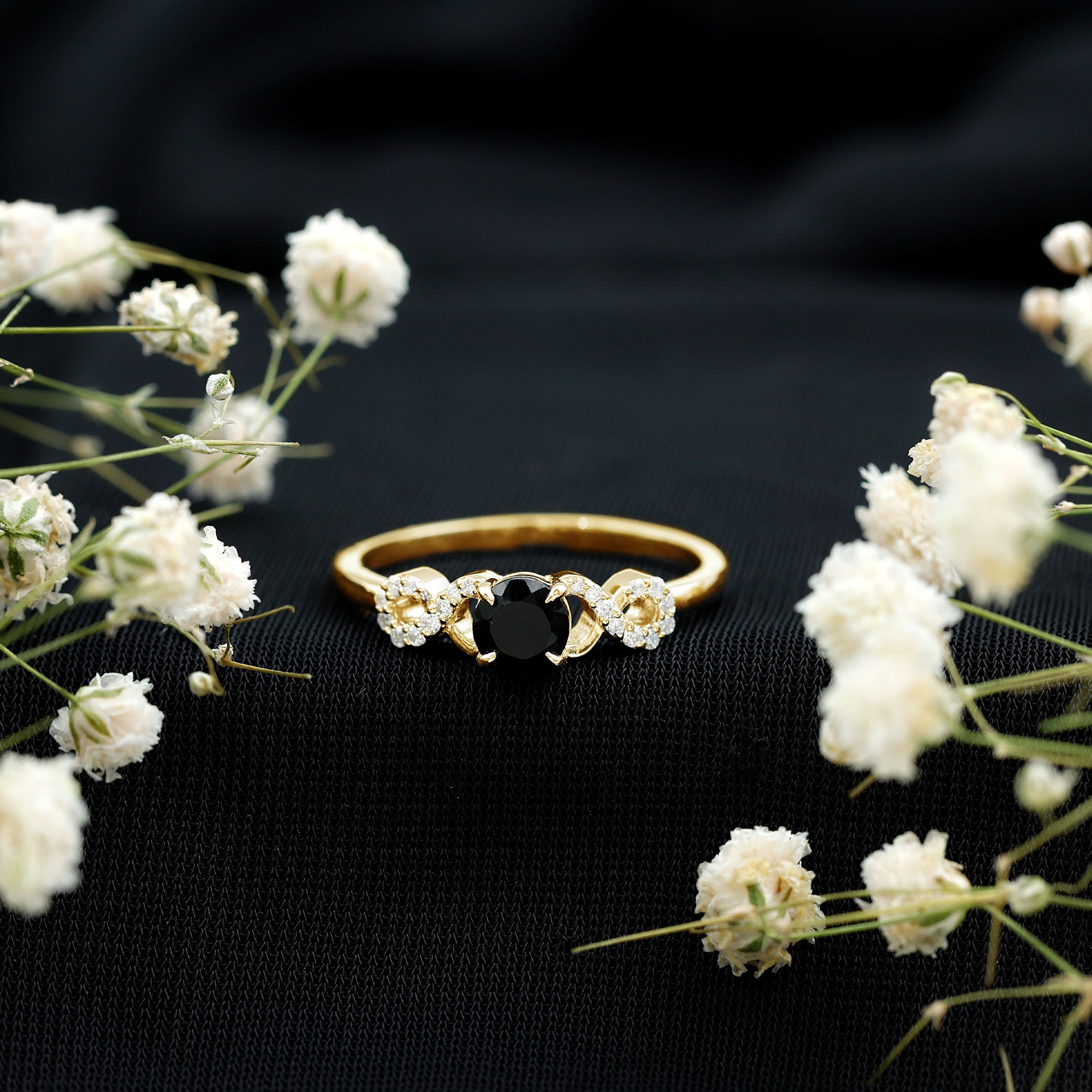 A Stylish and Fashionable Criss Cross Engagement Ring is a perfect match for your love. This Engagement Ring is decorated with Round Shape Black Onyx as a solitaire in a claw setting with Round Diamond over a crisis cross shank.