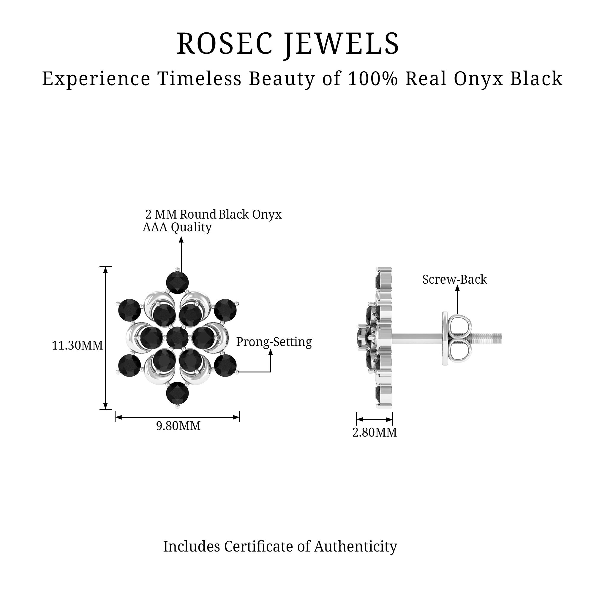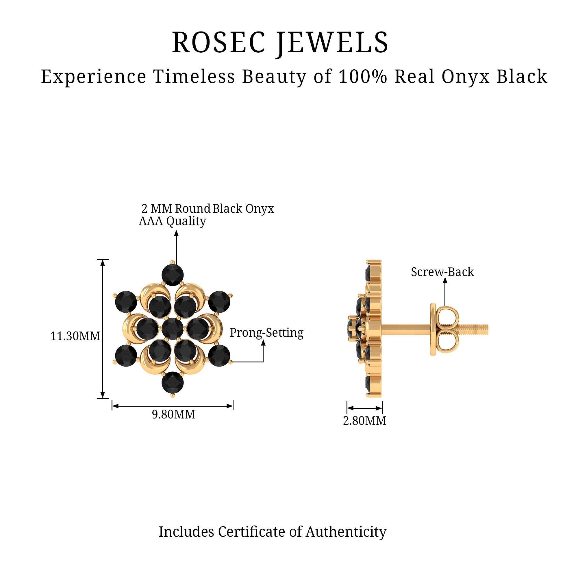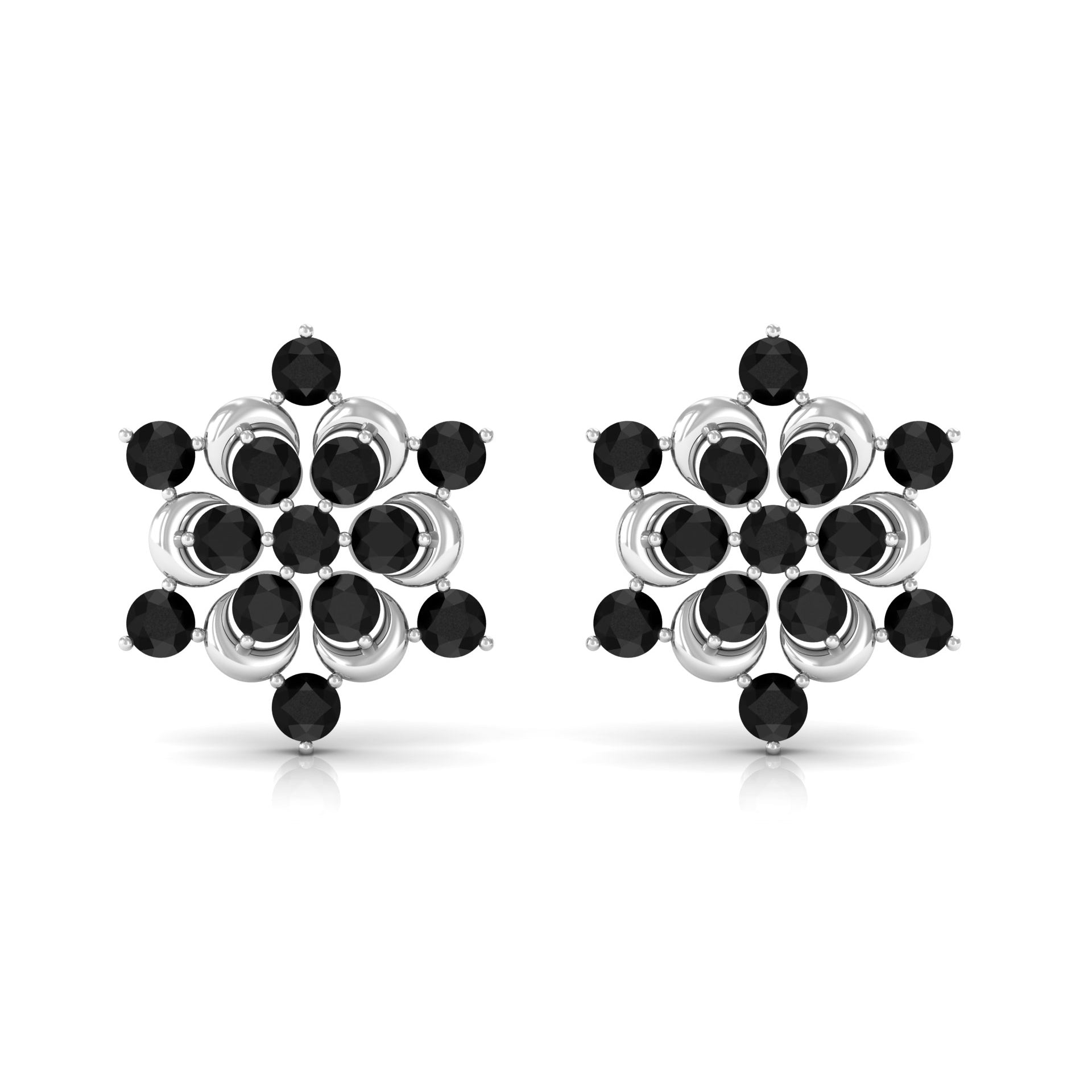 Feel Cute with our Snowflake Stud Earrings featuring Round Cut Black Onyx set in Prong Setting. This Statement Earrings are crafted in Solid Gold.