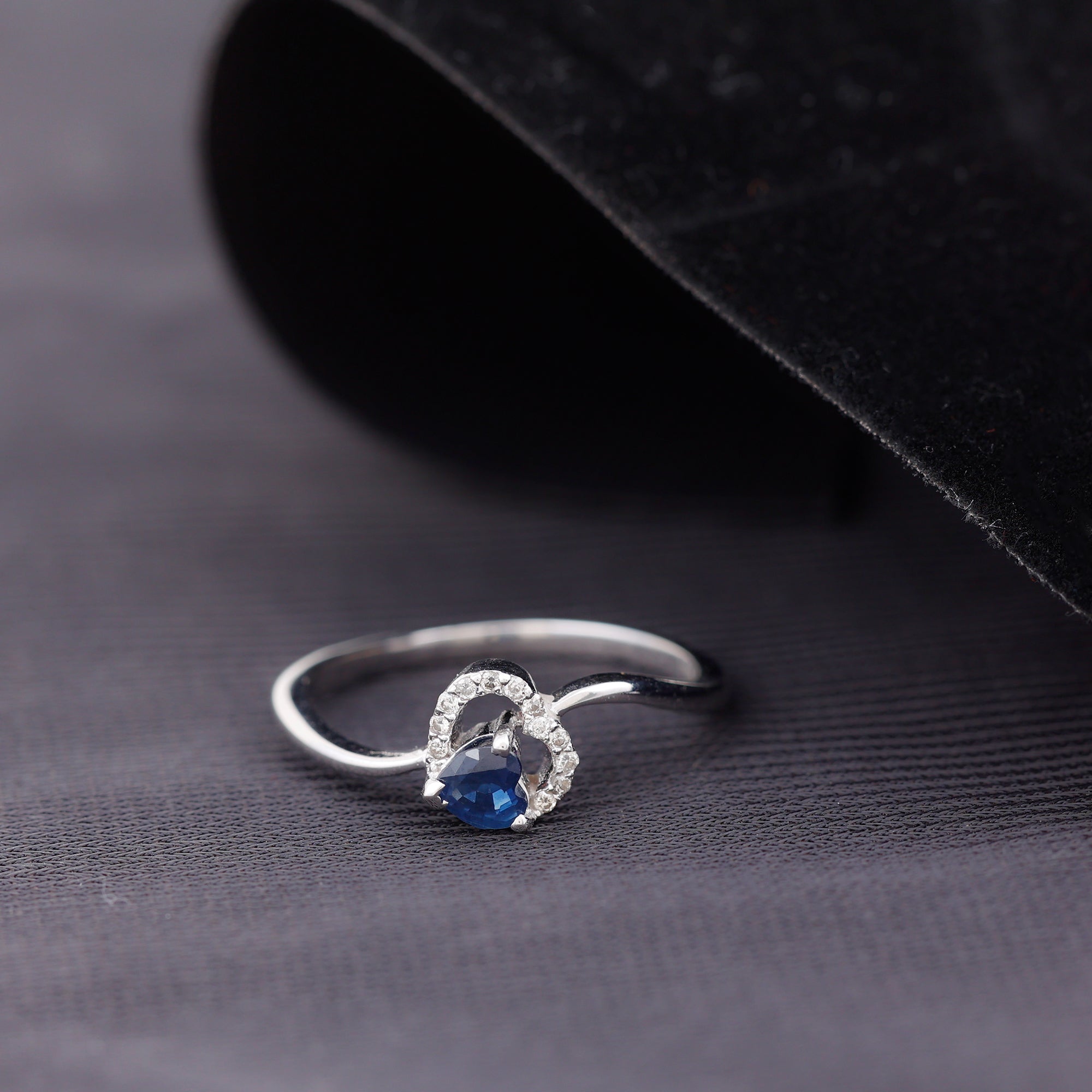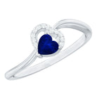 1/2 CT Blue Sapphire Heart Promise Ring with Diamond