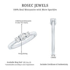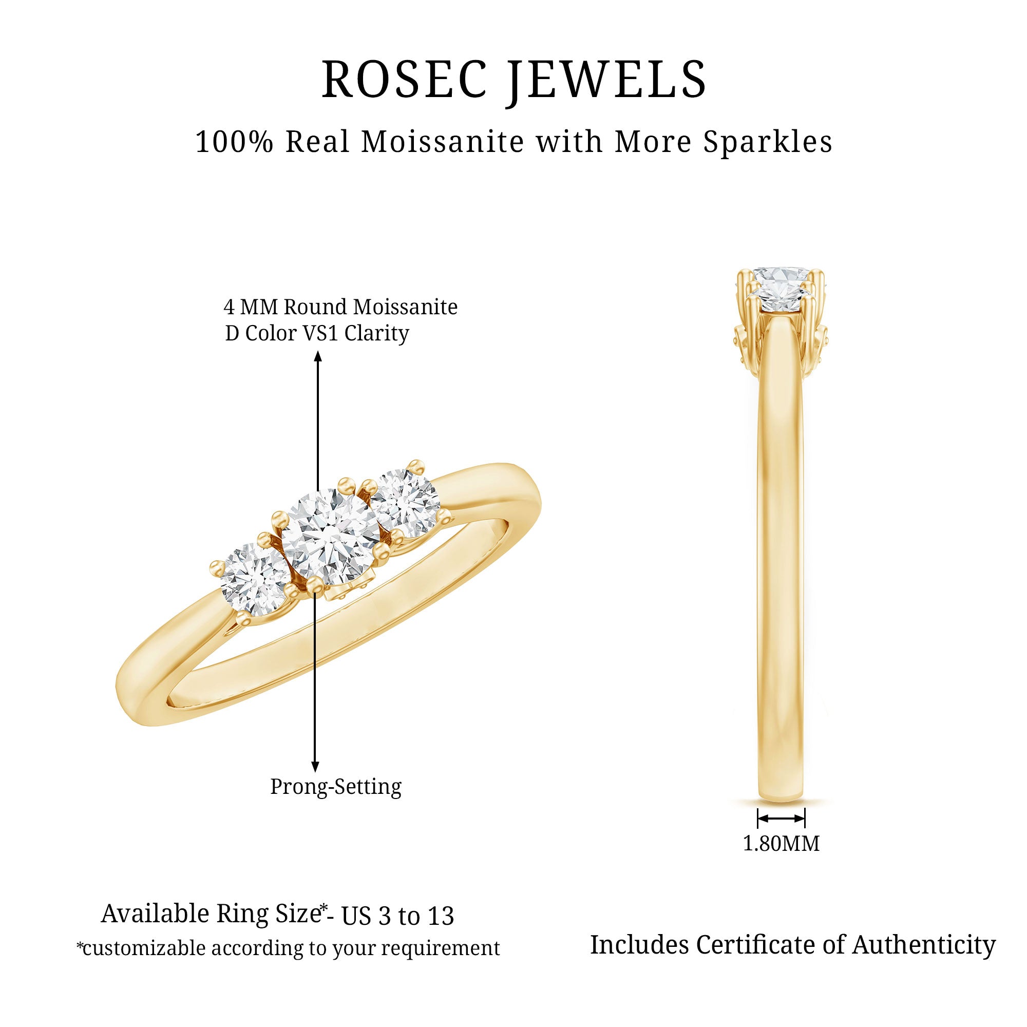 Seal your commitment with a one-of-a-kind Three Stone Ring that represents your past, present, and future. Rosec Jewels presents a stunning Moissanite Promise Ring, carefully handcrafted. It features three round Moissanites set in prongs for a refined look, enhanced by two peek-a-boo moissanites hidden beneath the main stone for an added surprise. This thoughtful touch elevates this Simple Moissanite Ring beyond mere jewelry, it becomes a treasured keepsake. With its elegant shape and comfortable wear, this 3 Stone Promise Ring is perfect for the modern bride who appreciates timeless beauty infused with significance. Whether youre marking a major milestone or looking for a way to express your devotion, this Past Present and Future Ring will be an ideal keepsake for her, one she will cherish forever. It beautifully captures the essence of your relationship in a single design. By blending contemporary style with classic elegance, this Minimalist Ring for Women showcases D color VS1 clarity stones that sparkle with fire and brilliance.