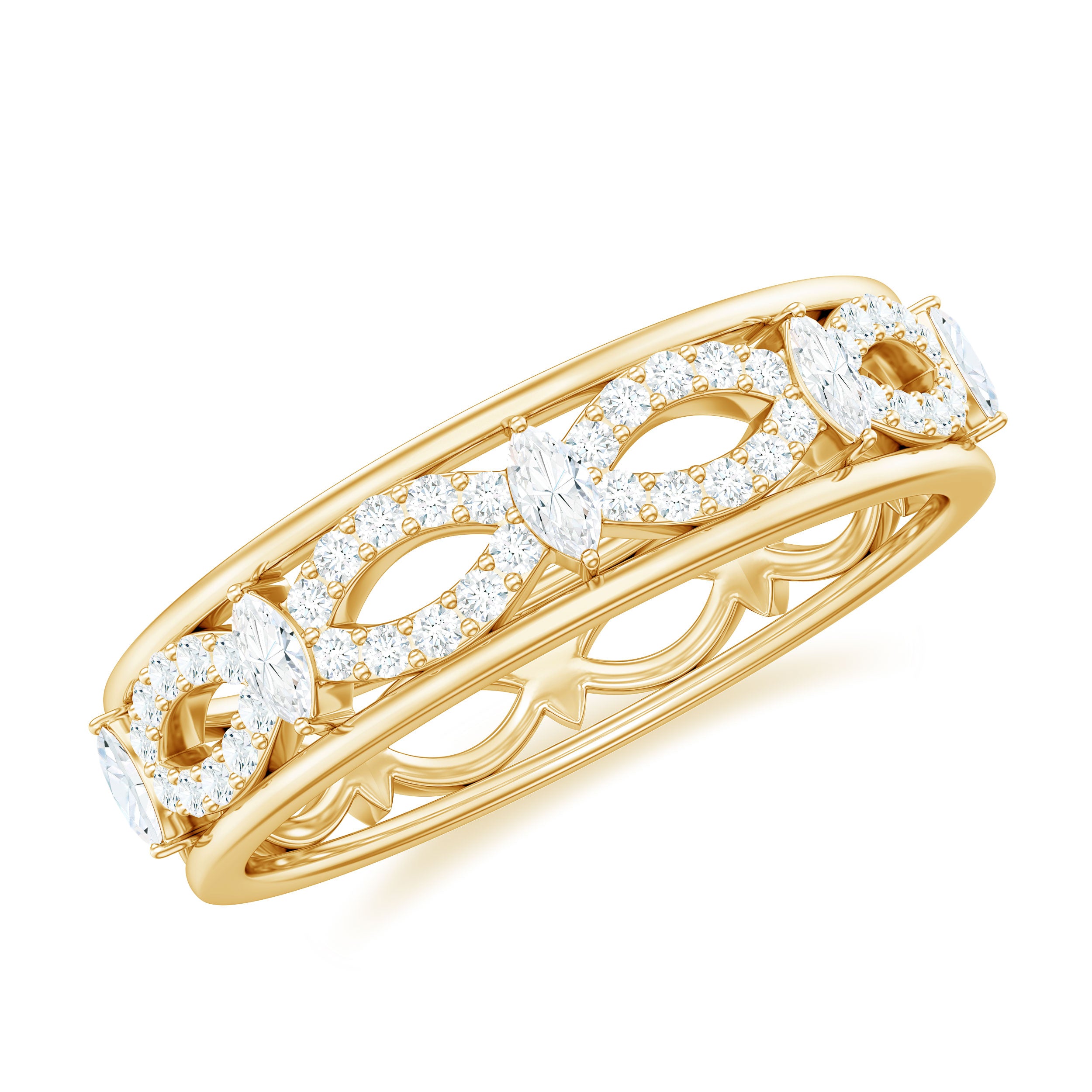 This stunning Moissanite Full Eternity Band is a fantastic gift for your loved one, guaranteed to impress. Featuring a twisted infinity design at its center, this beautiful band ring is embellished with tiny, shimmering moissanite stones, while baguette cut moissanite enhances the edges, boosting its charm and appeal. Its elegant and striking design makes it perfect for everyday wear as well as those special moments that truly count. This incredible Infinity Wedding Band is a heartfelt way to convey your true feelings and ensure you shine in any situation. Crafted for those who desire something timeless, durable, and meaningful, this Designer Wedding Band is made with great attention to detail. The Wide Moissanite Band is not only comfortable to wear but also built to last a lifetime, just like your love. It comes in a signature jewelry box, making it ideal for gifting or safe storage. Available in US ring sizes 3 to 13, this Wide Wedding Band promises a perfect fit for every woman. Whether you are tying the knot or upgrading your band, this piece is designed to represent your love story and journey.
