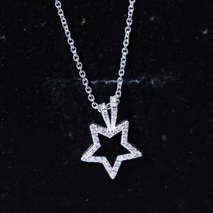 This exquisite moissanite pendant necklace is guaranteed to steal her heart. Featuring a beautifully crafted star pendant made of high-quality gold, it is embellished with a round cut moissanite stone in a prong setting. The sparkling moissanite stone adds a touch of glamour and sophistication to the piece, making it a perfect accessory for any occasion. With its timeless design and exceptional craftsmanship, this pendant necklace will remain a cherished piece of jewelry that shell treasure for years to come.