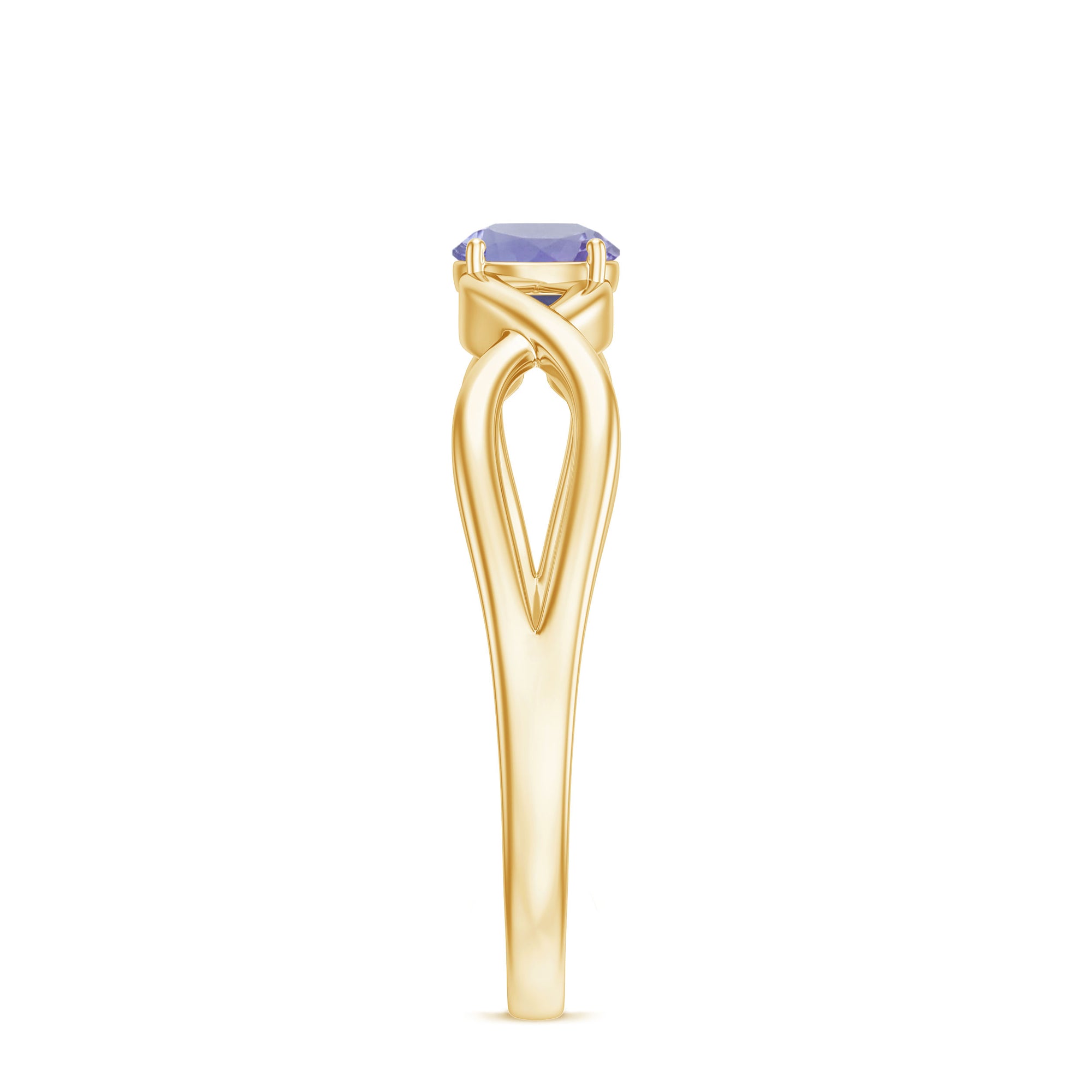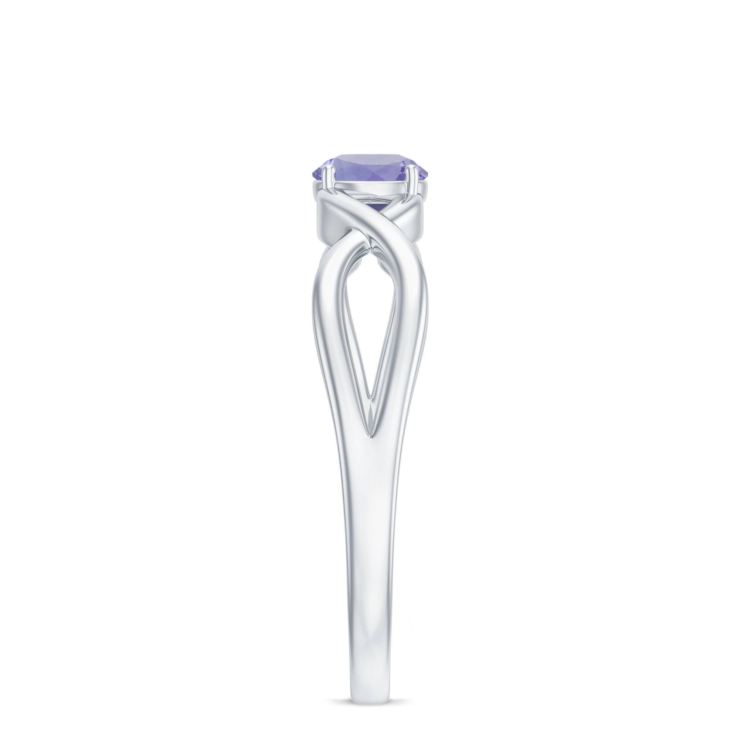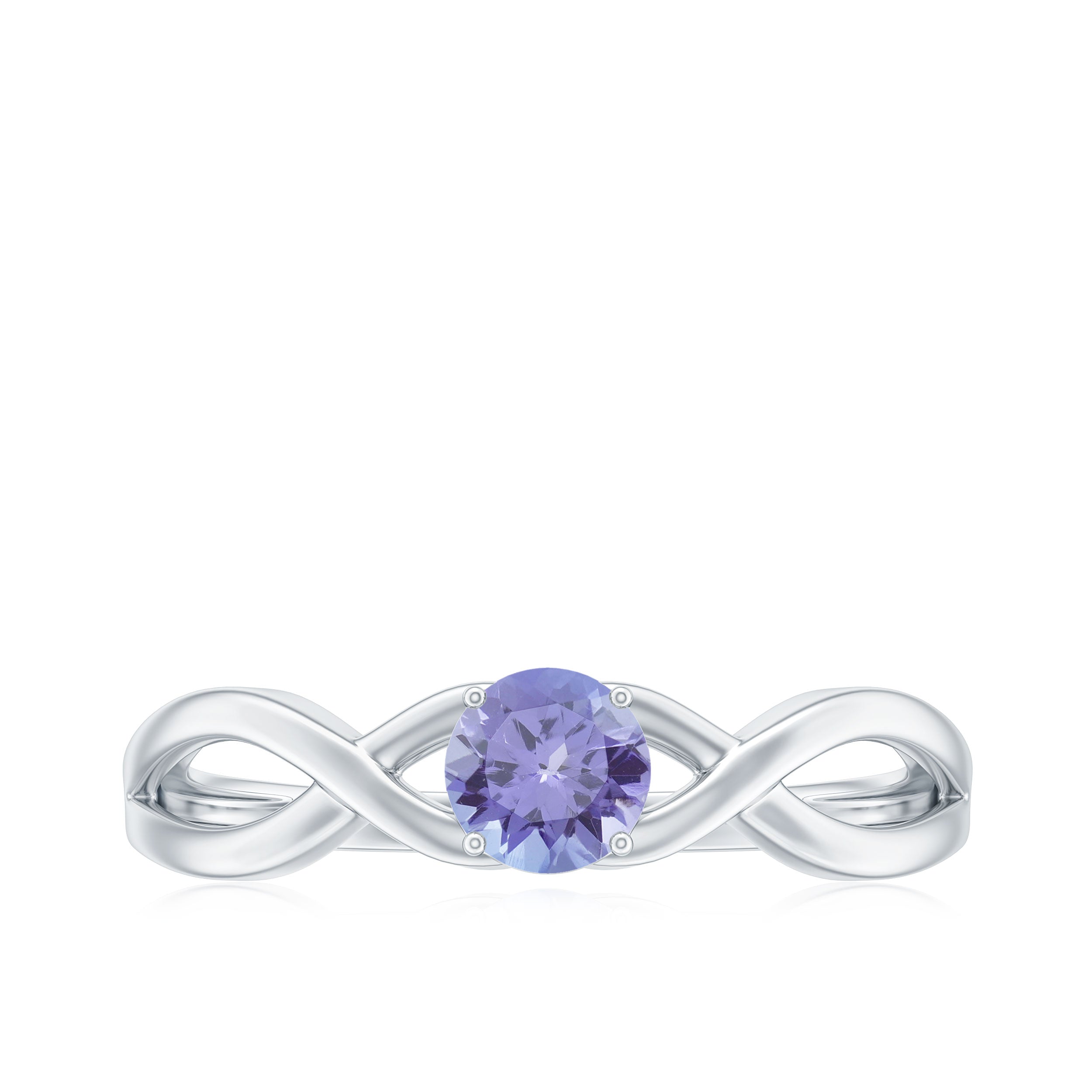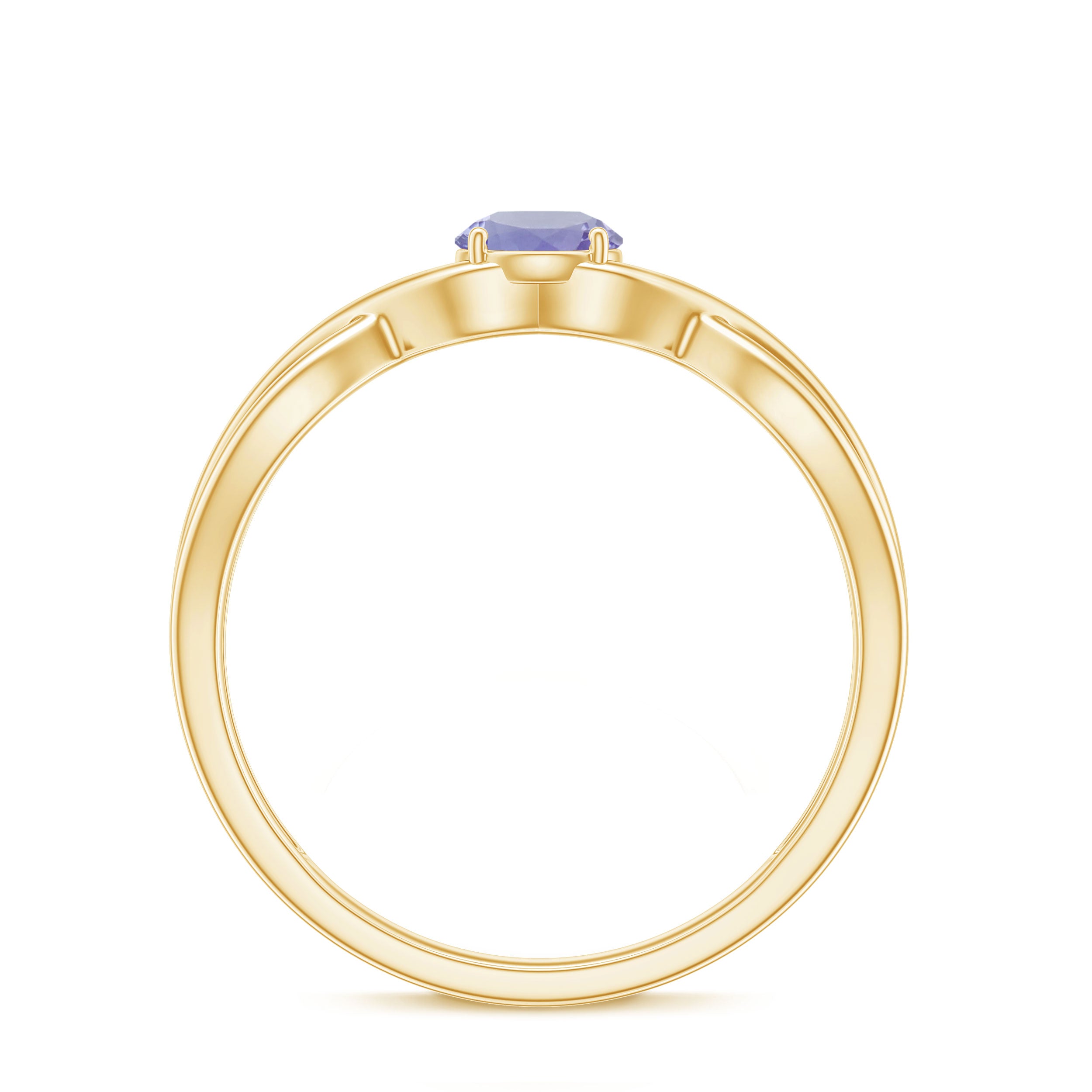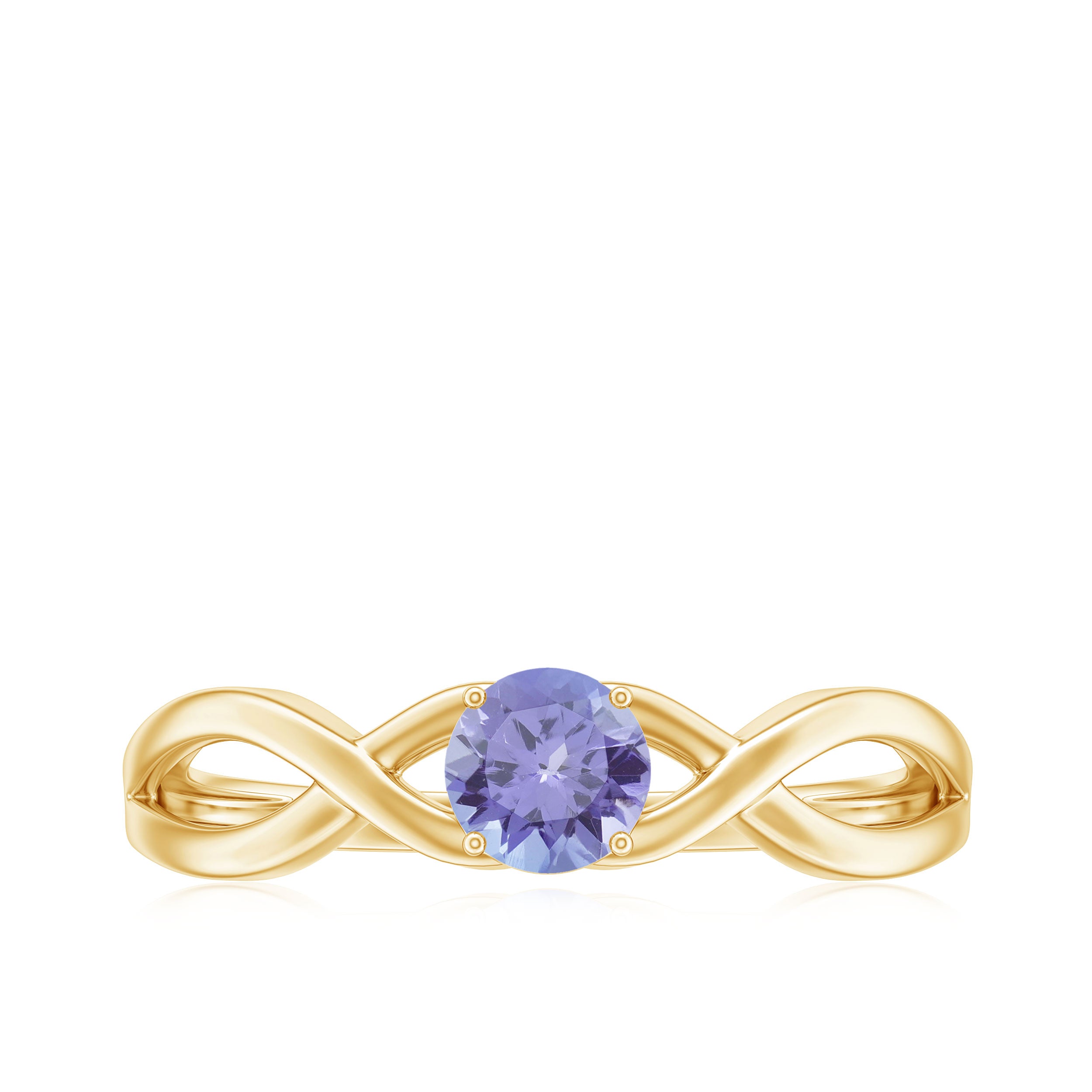Embrace romance with this Tanzanite Solitaire Promise Ring, designed in an elegant and sophisticated style. The ring features a Round Cut Tanzanite set as a solitaire on a Gold Crossover Shank. For special occasions, this jewelry accessory is crafted in Gold Metal.