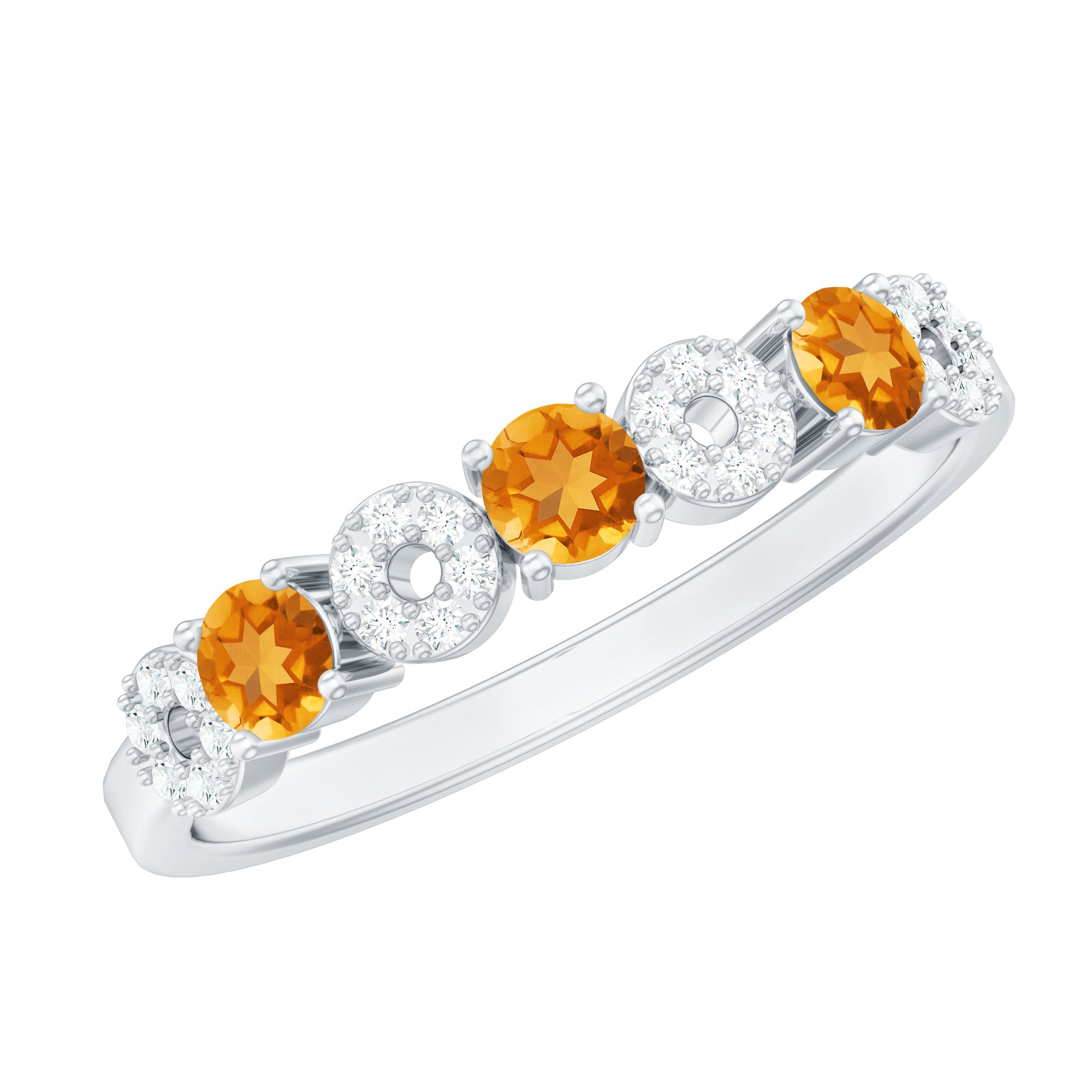 1/2 CT Citrine and Diamond Semi Eternity Ring