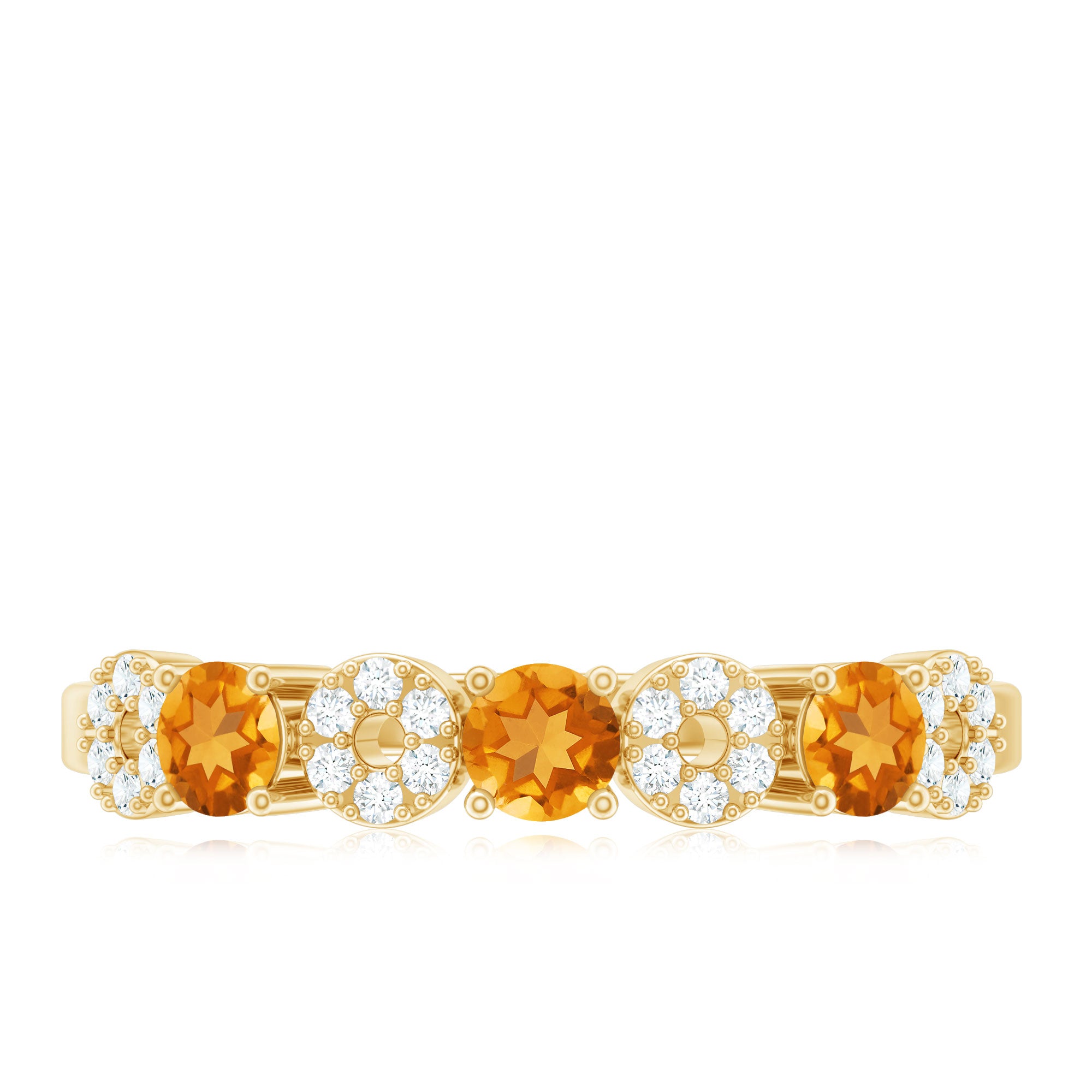 Symbolize eternal love with our anniversary gift featuring round citrine and Diamond on a semi-band. A timeless expression of never-ending love.
