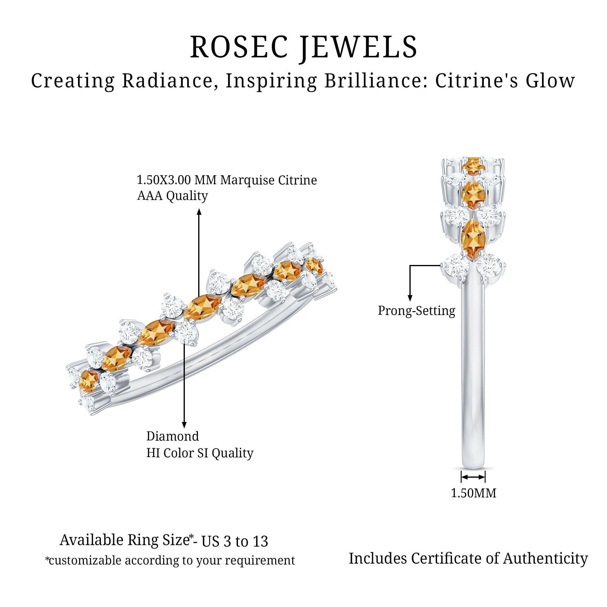 1/2 CT Classic Marquise Citrine and Diamond Half Eternity Ring