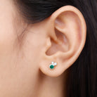 1/2 CT Dainty Emerald and Diamond Three Stone Stud Earrings