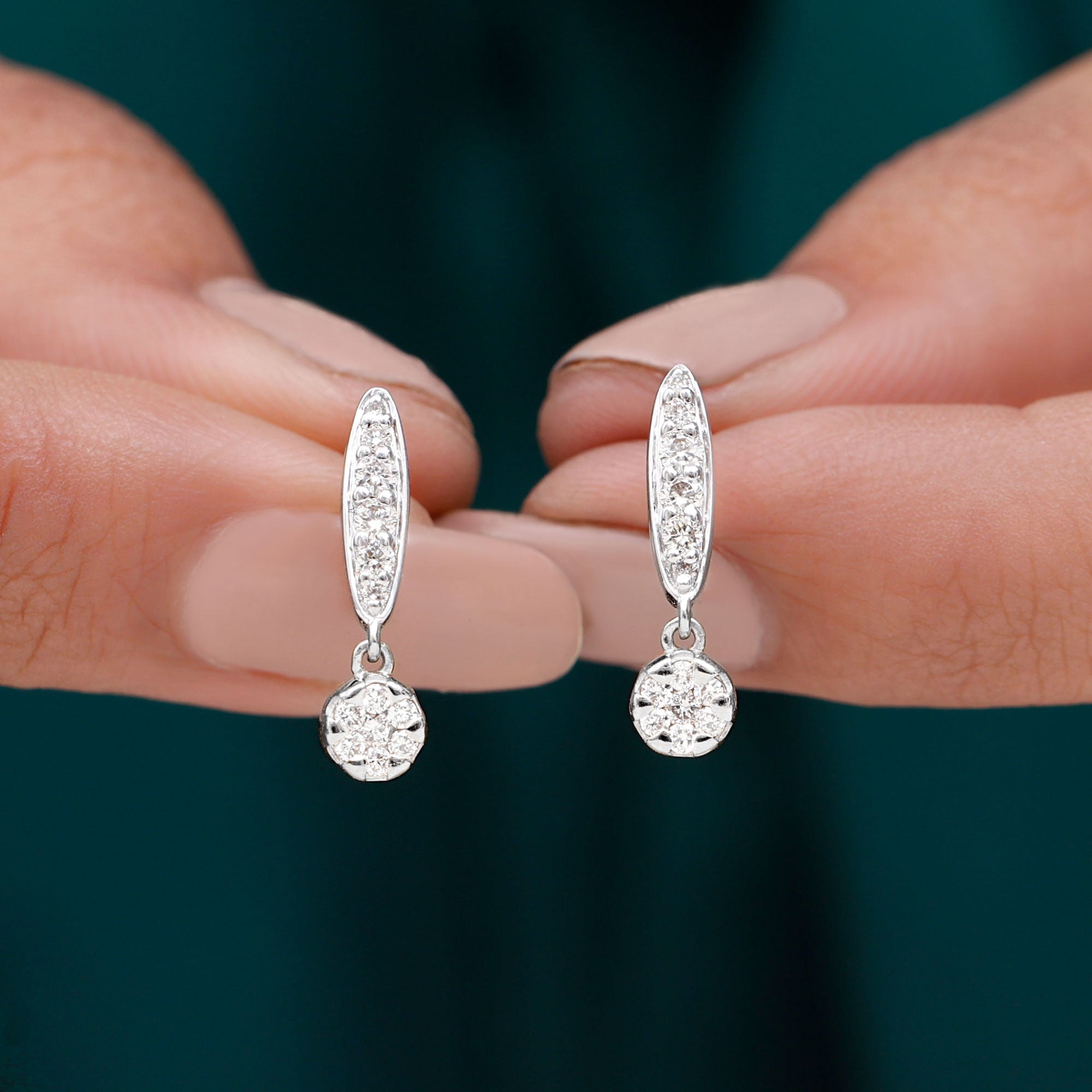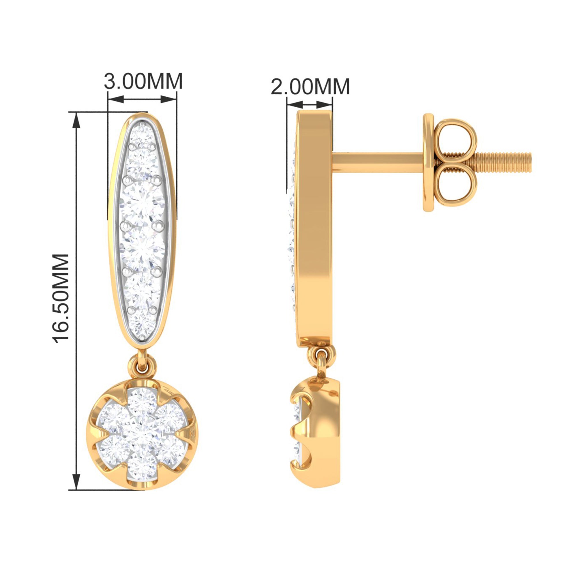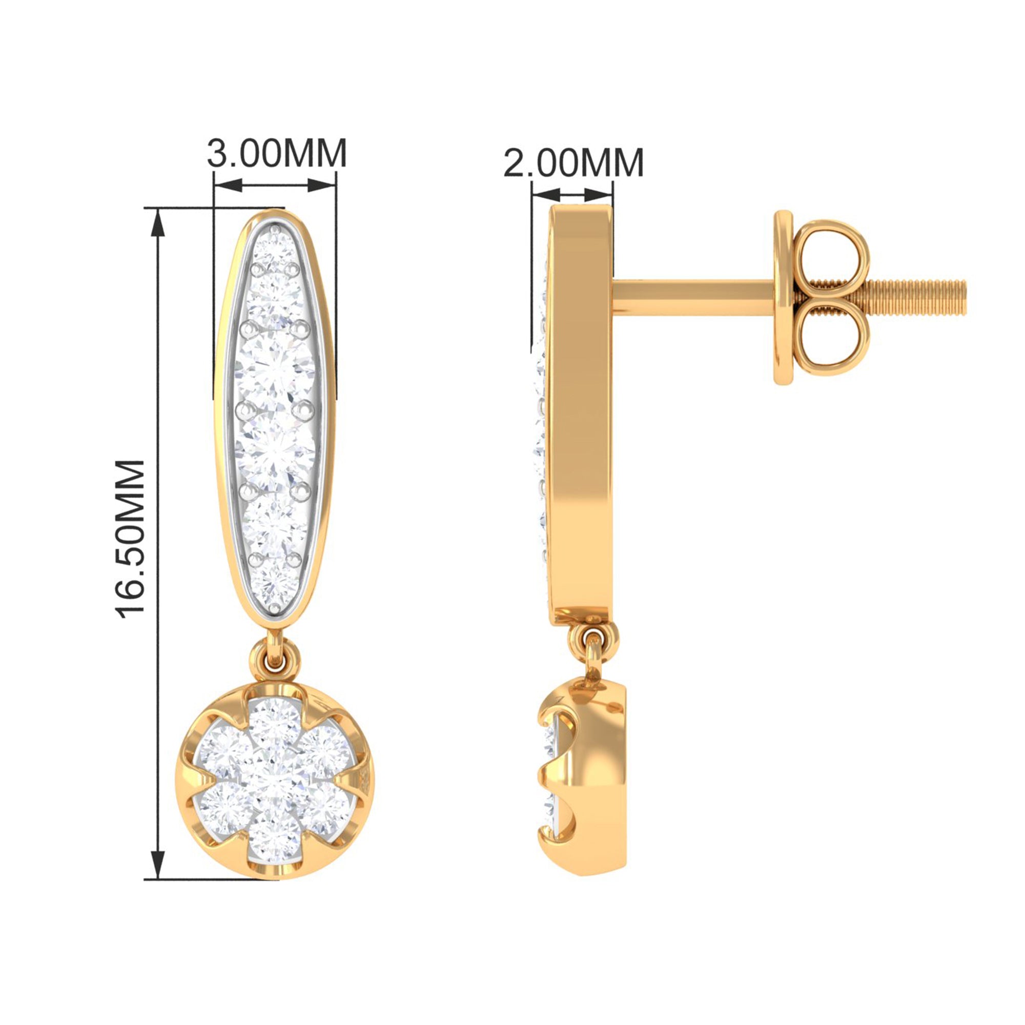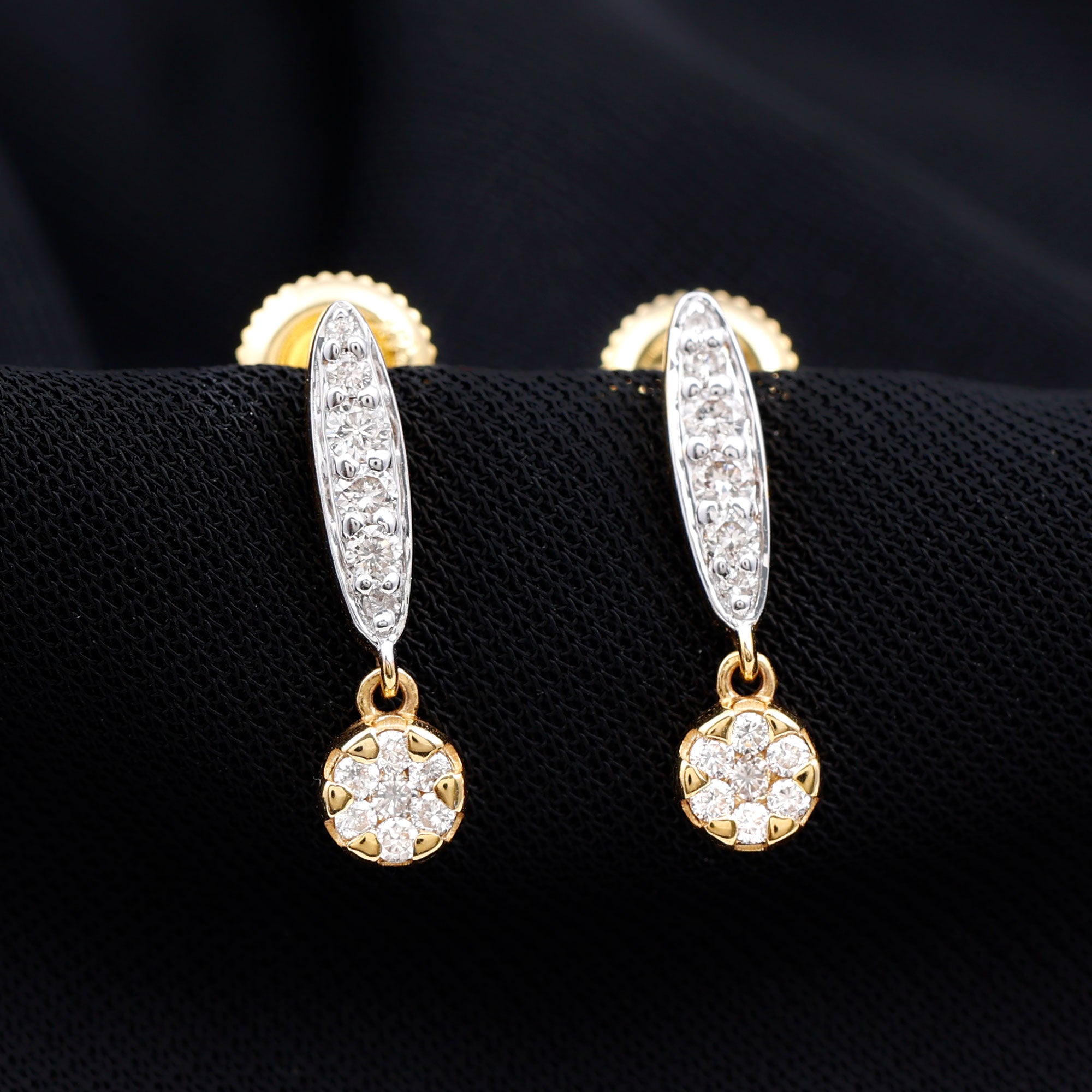 This Diamond Drop Earrings is adorned in Solid Gold with Round Cut Diamonds embellished in Prong Setting for you to curate an outstanding look.