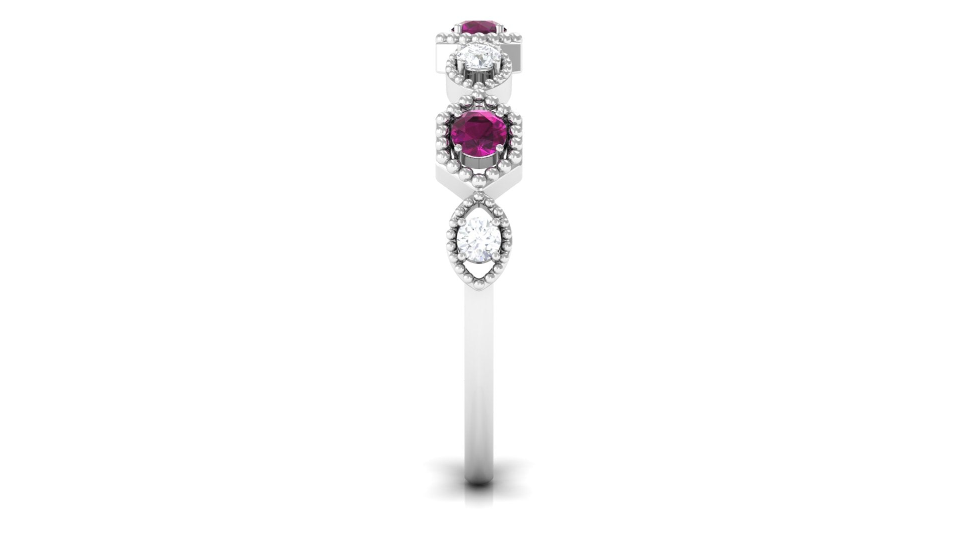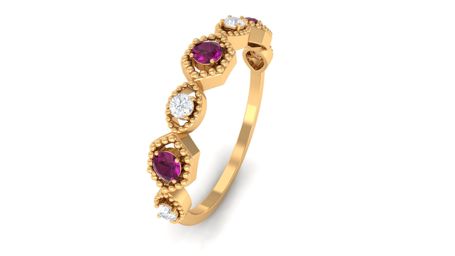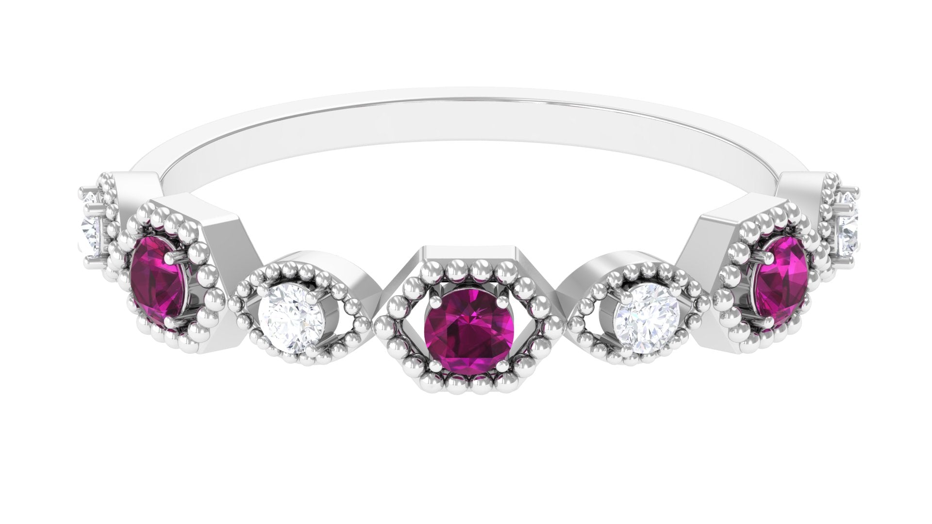 1/2 CT Elegant Rhodolite and Diamond Half Eternity Ring