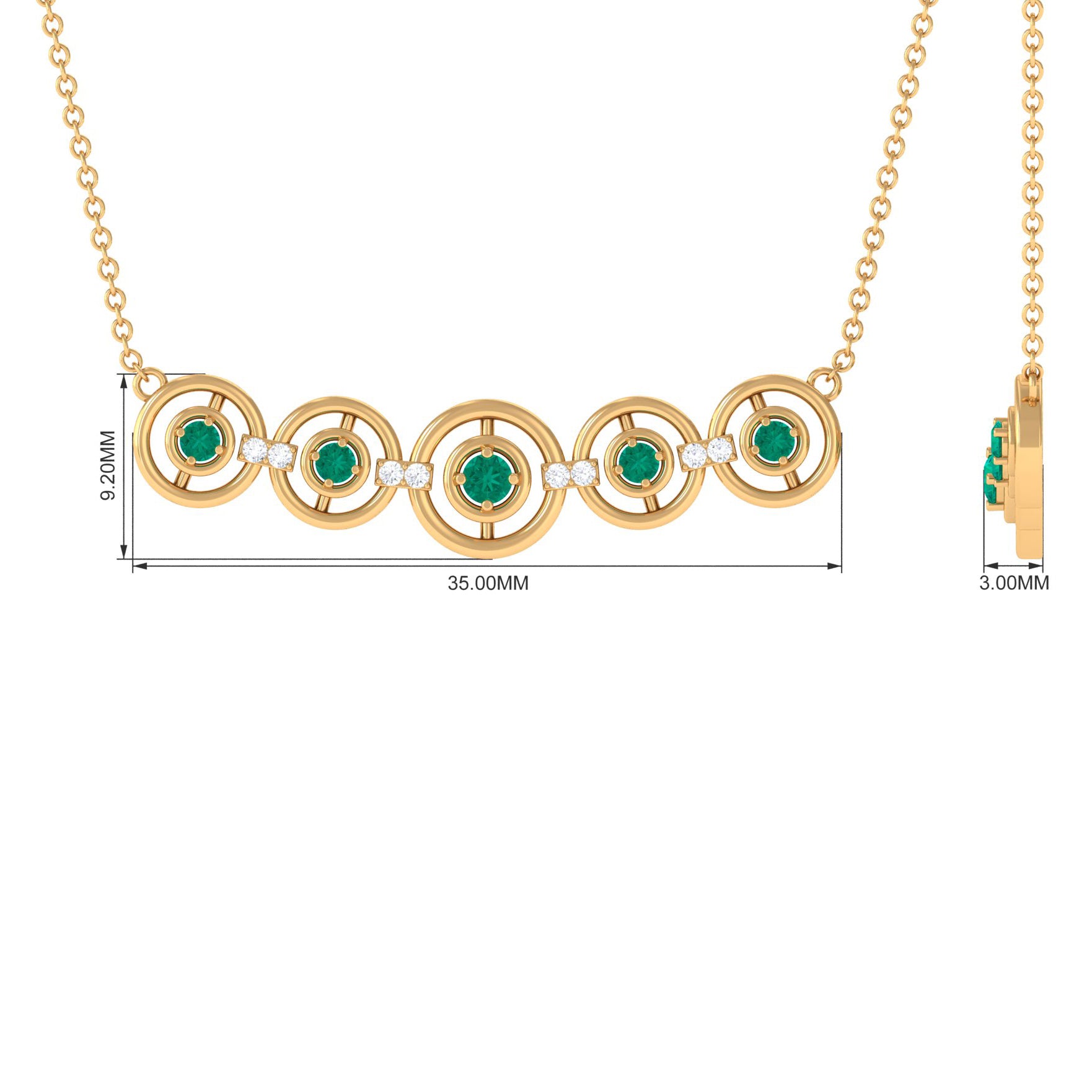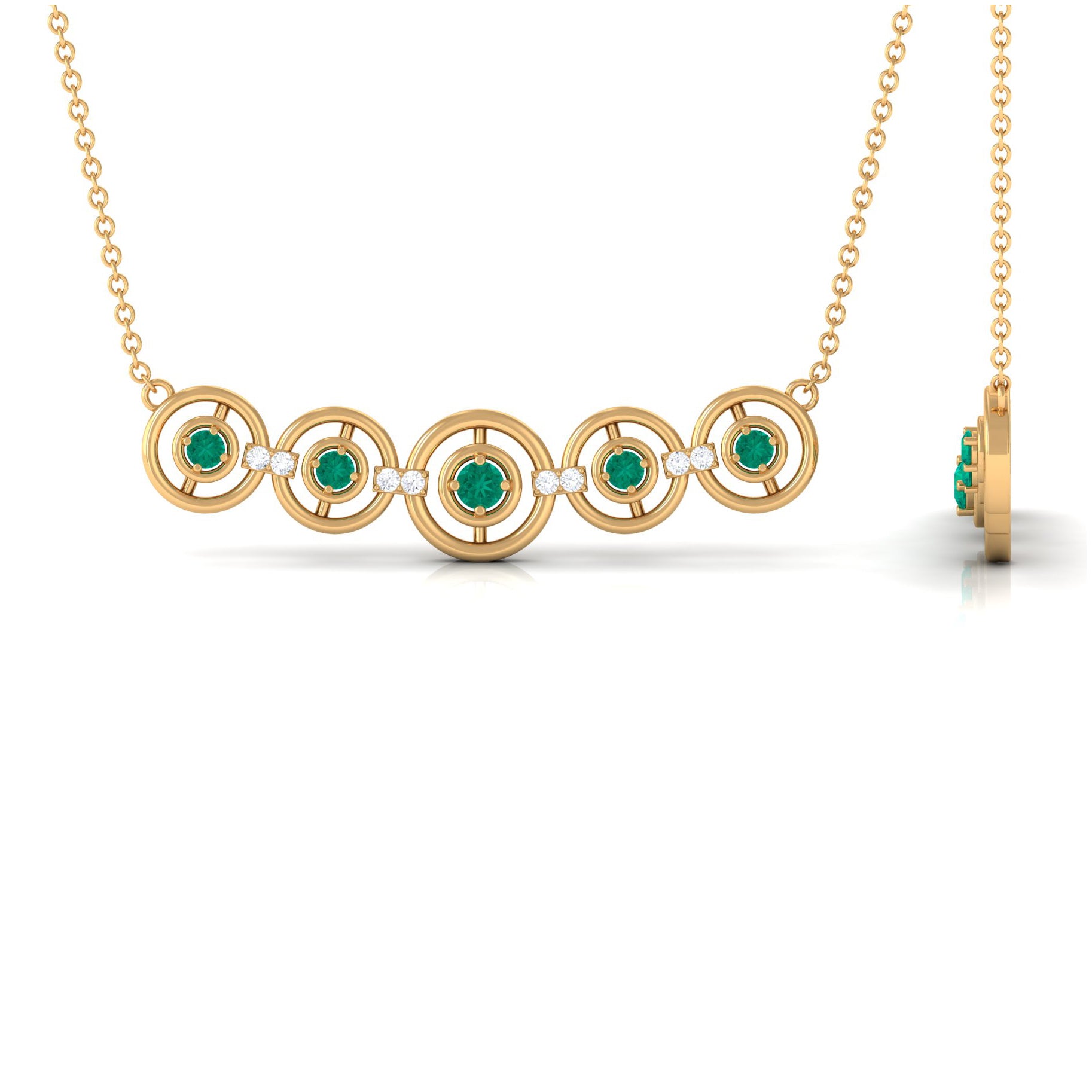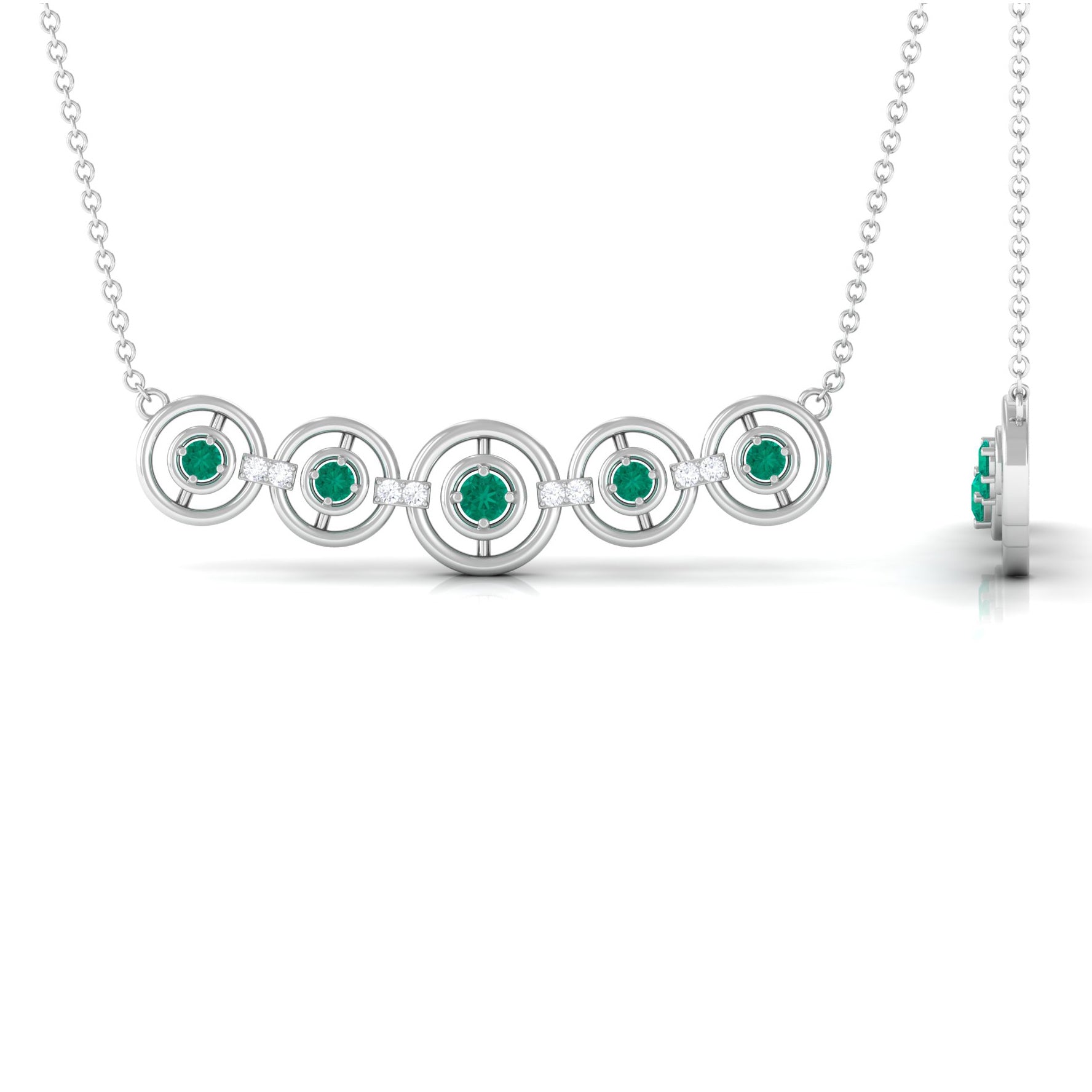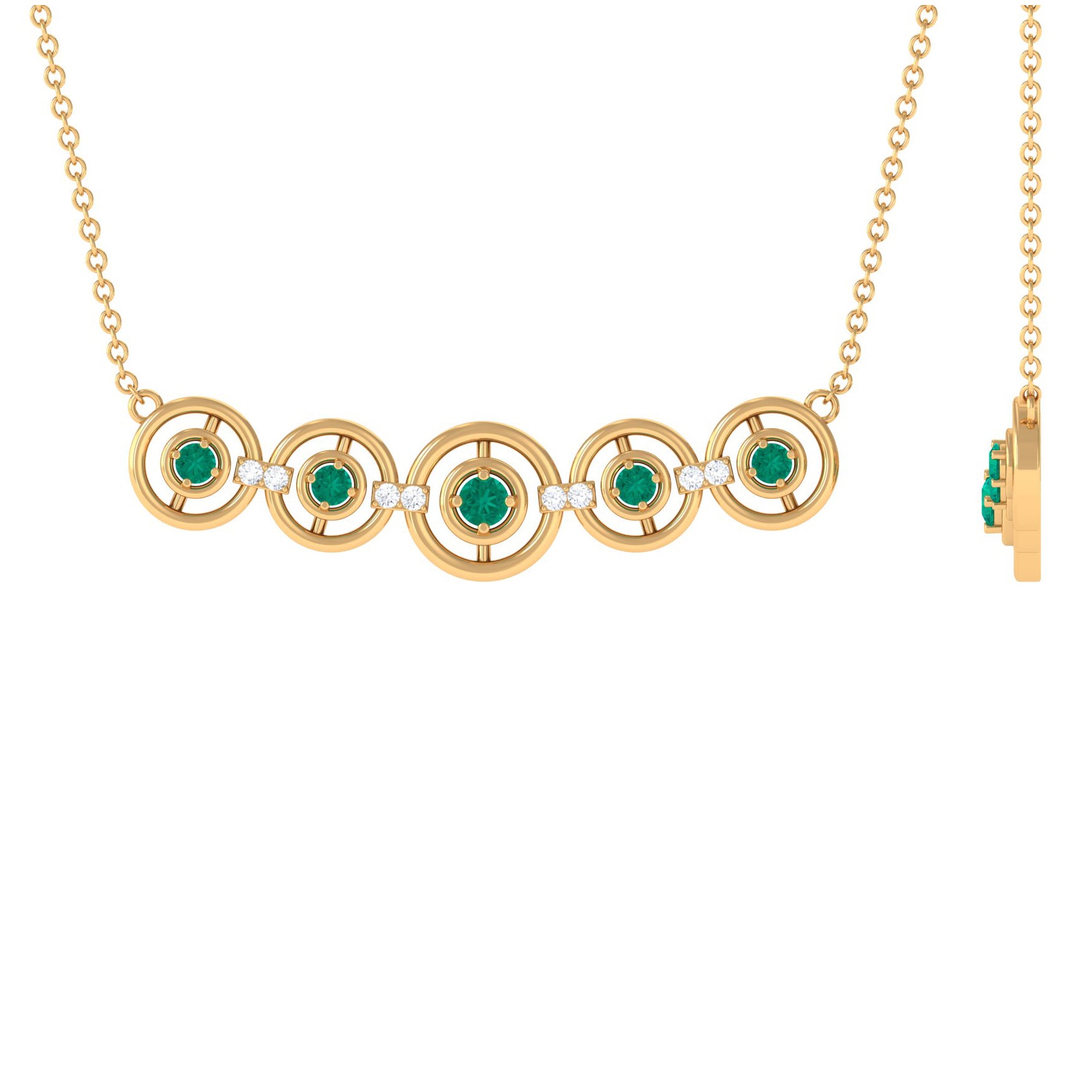 For days when you prefer a more minimalist style, consider our Emerald Contemporary Necklace. This trendy necklace features a sleek motif adorned with vibrant emeralds and sparkling Diamond stones. Perfect for women born in the month of May, this Designer necklace is a must-have accessory that effortlessly combines contemporary design with timeless elegance.