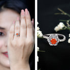 1/2 Ct Fire Opal Flower Engagement Ring with Diamond