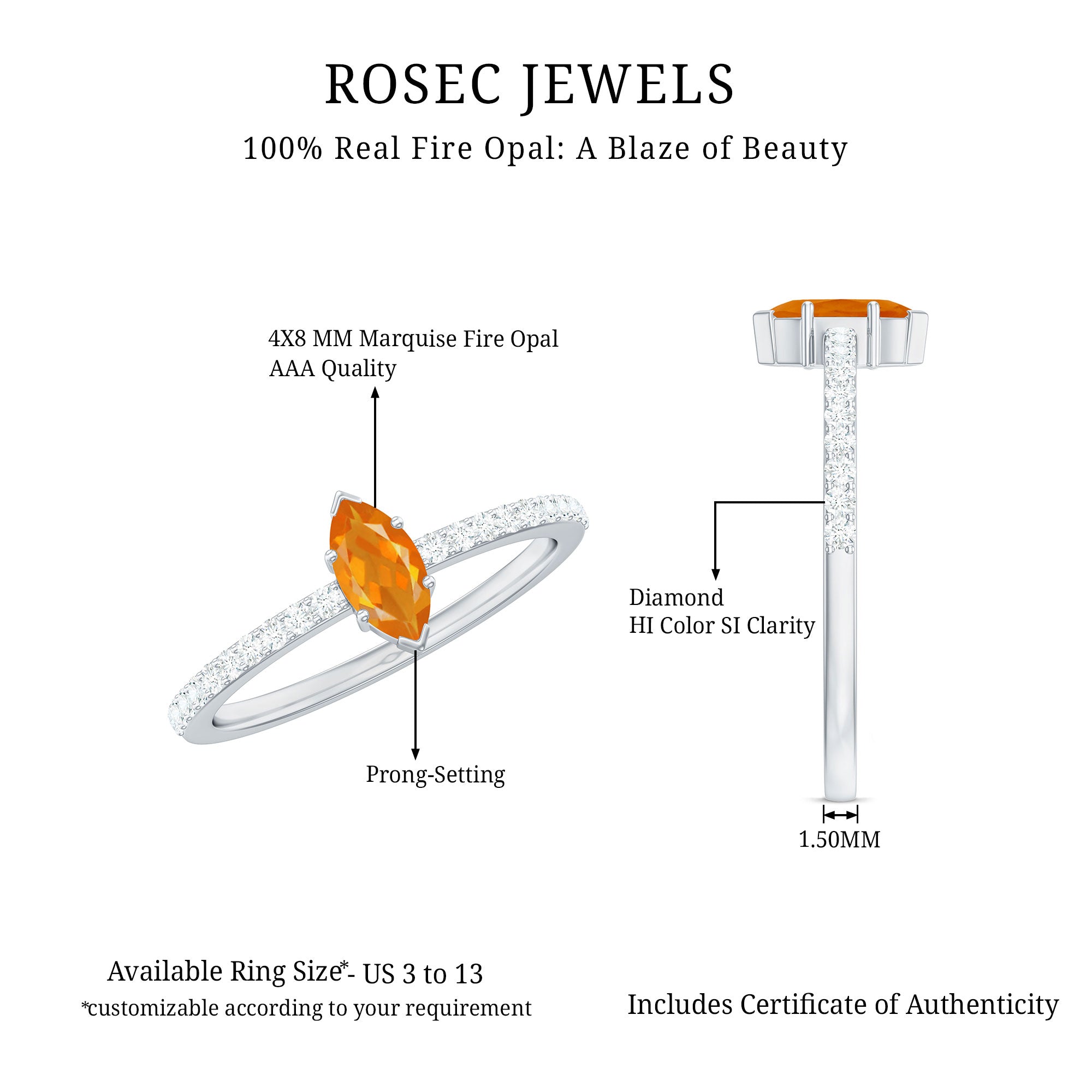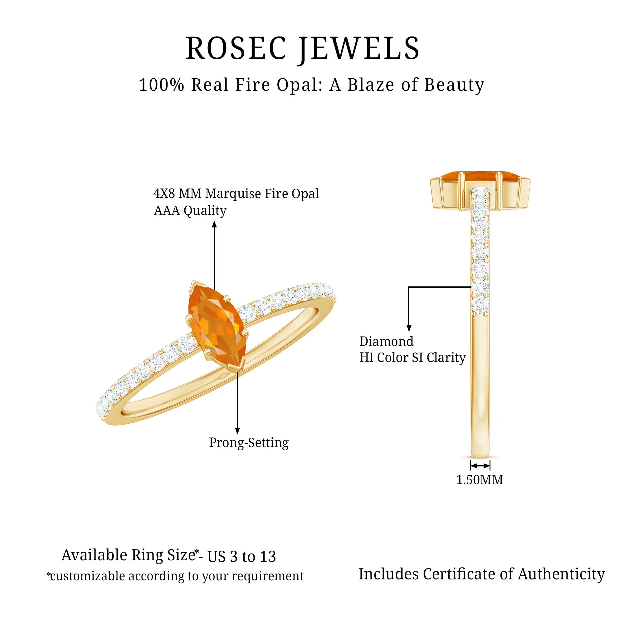 1/2 Ct Fire Opal Marquise Engagement Ring with Diamond