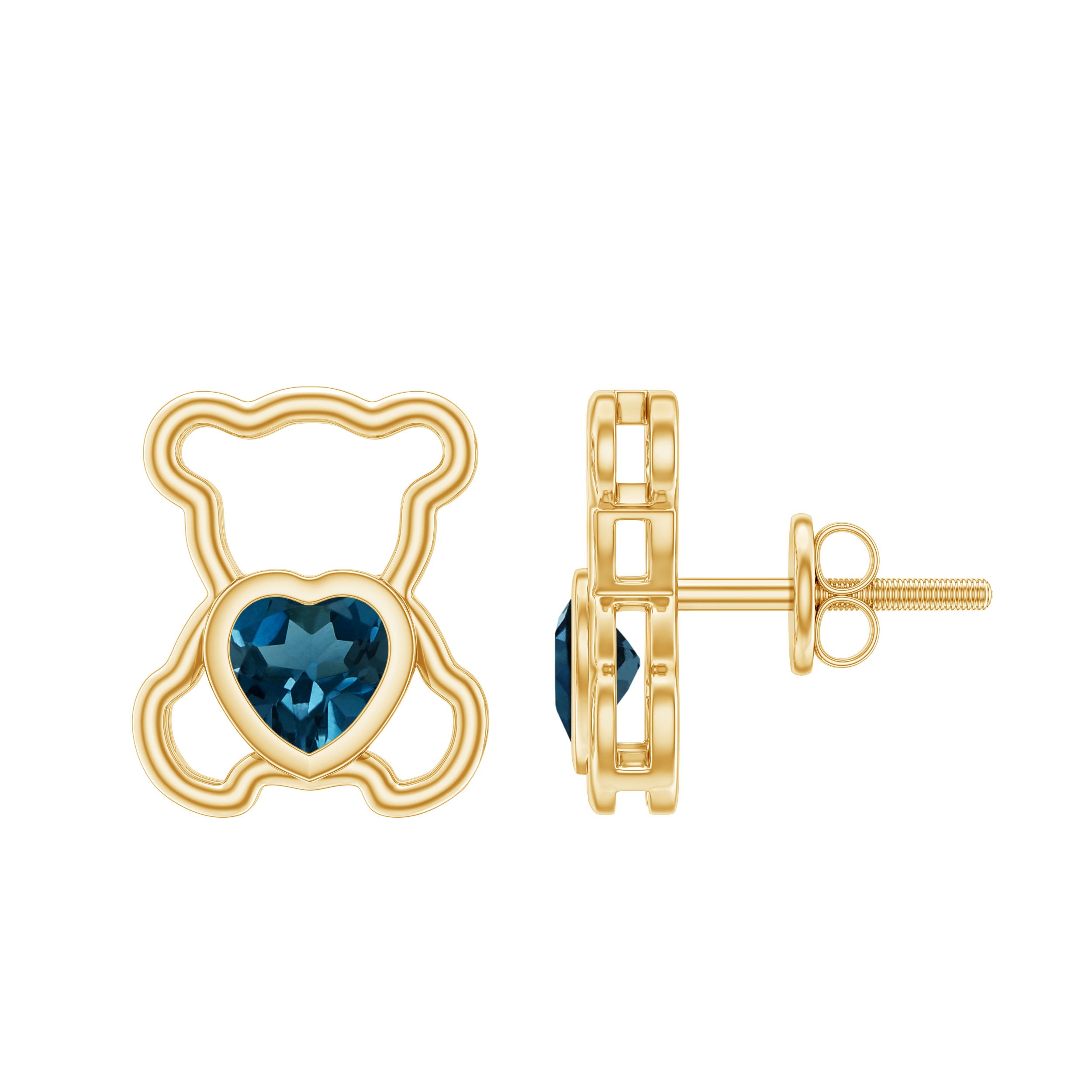 Add a touch of trendiness to your look with our adorable Teddy Bear Stud Earrings for Women. Made of solid gold and featuring a heart-shaped London Blue Topaz in a bezel setting. These earrings are perfect for adding a touch of elegance to any outfit.