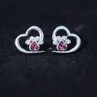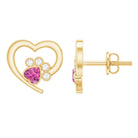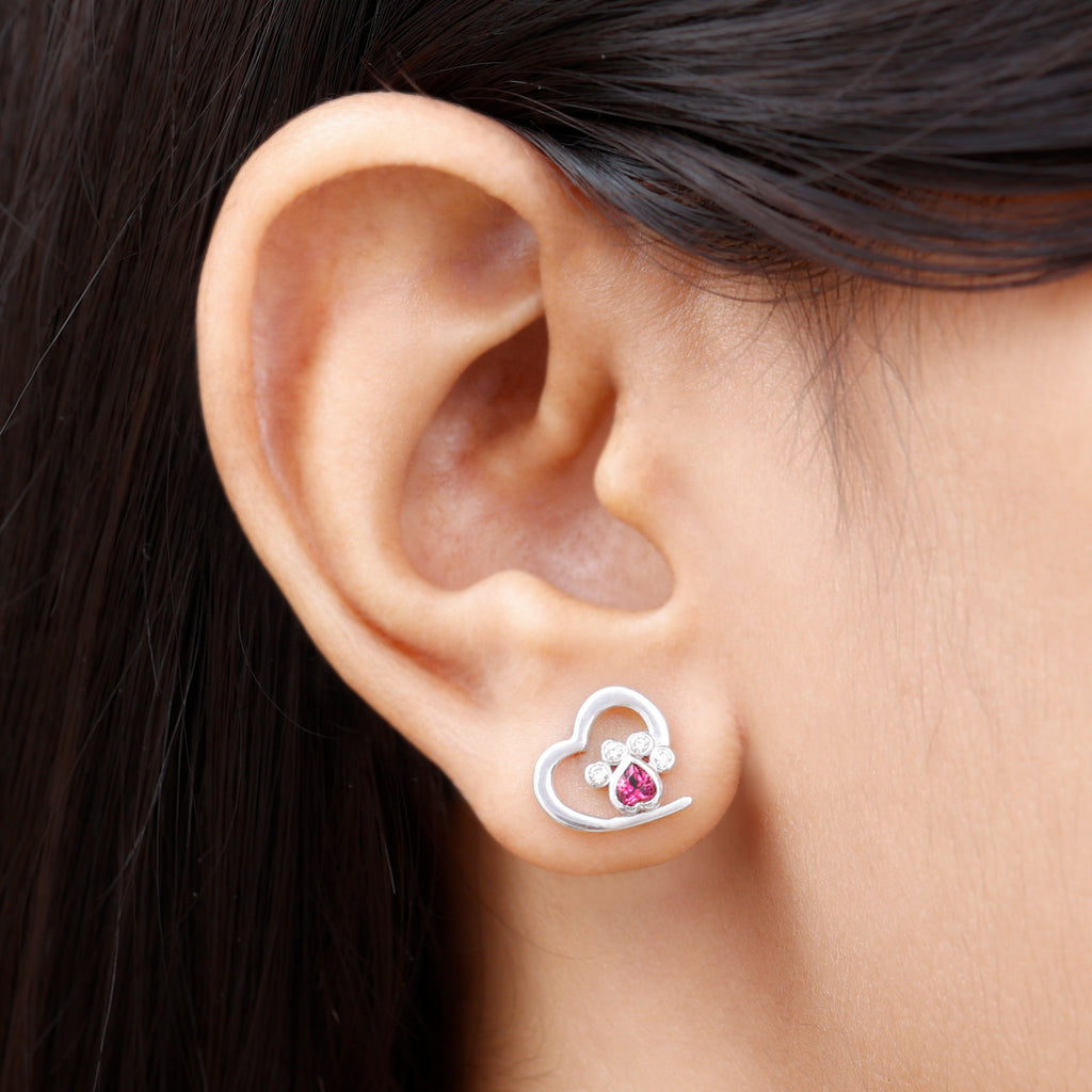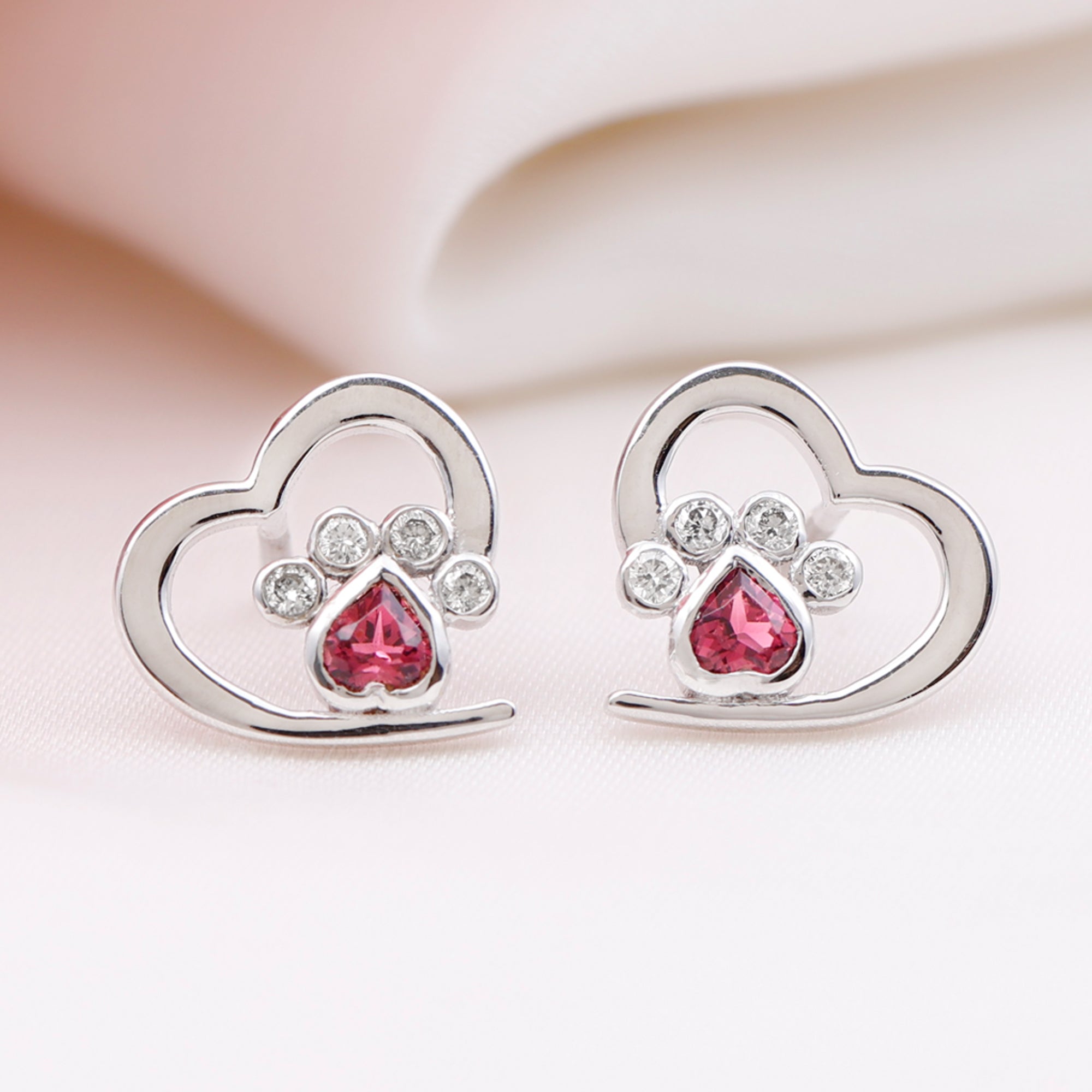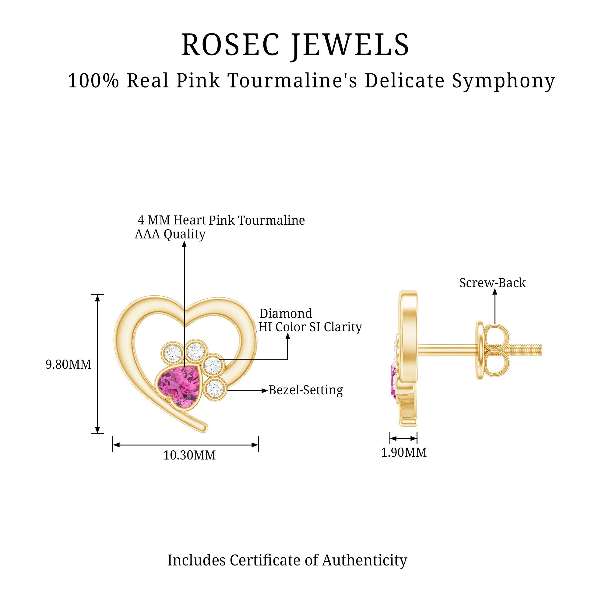 1/2 CT Heart Shape Pink Tourmaline and Diamond Dog Paw Stud Earrings