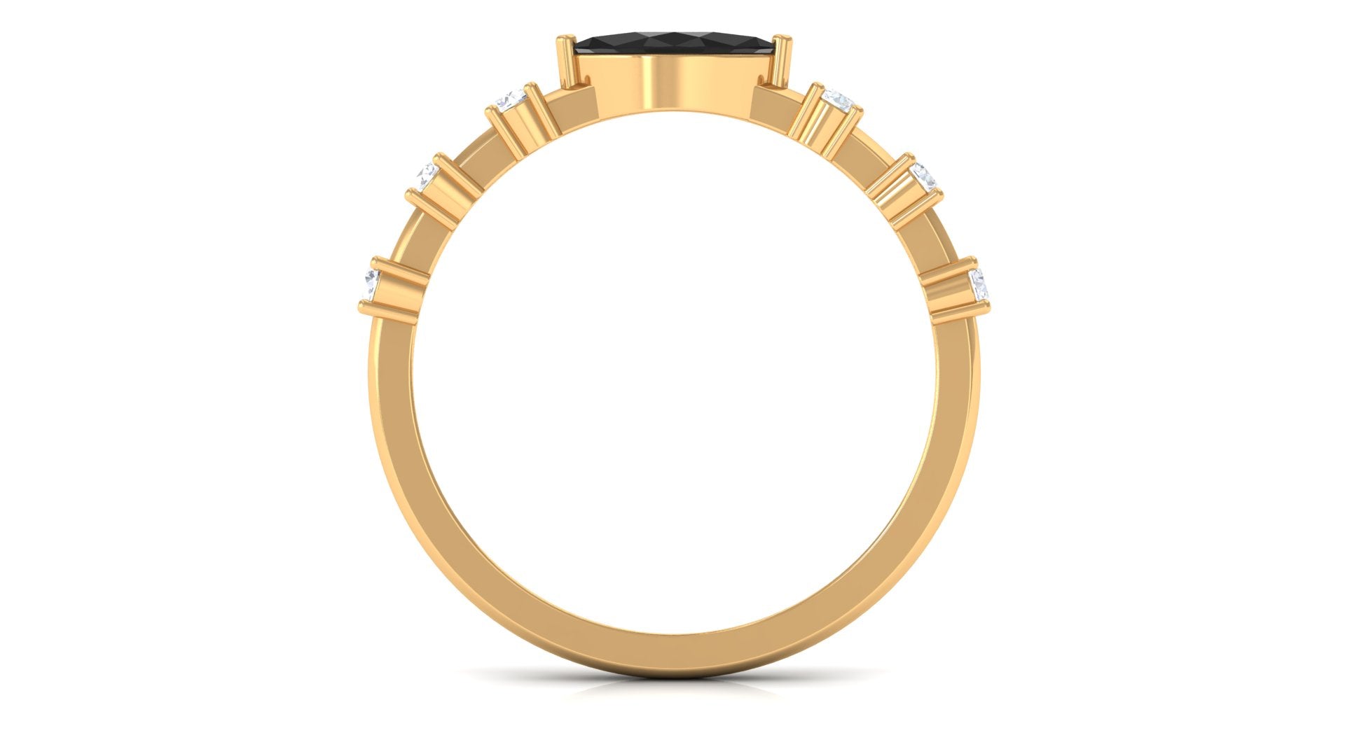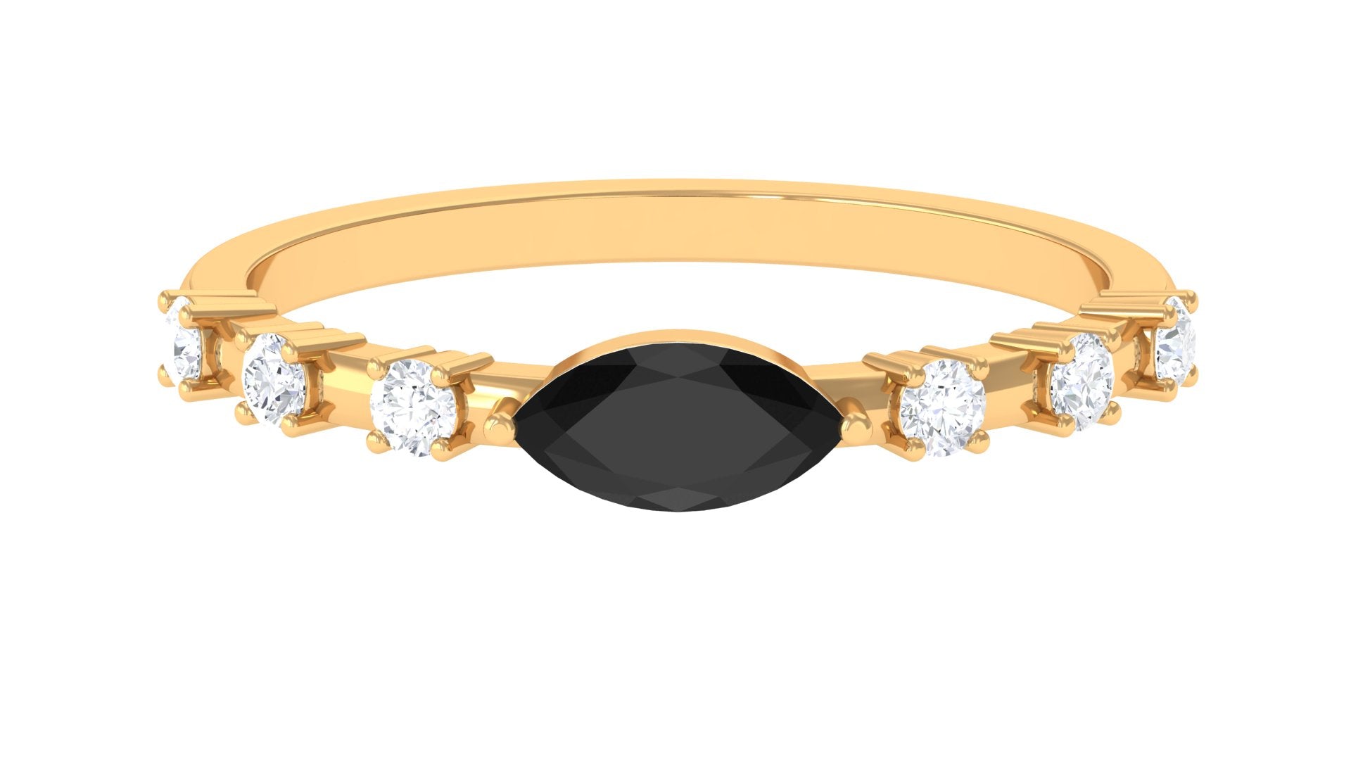 A great East West Ring for your lady with a classic and trendy sense of style adorn with marquise cut black spinel and Round Shape Diamond in prong setting.
