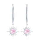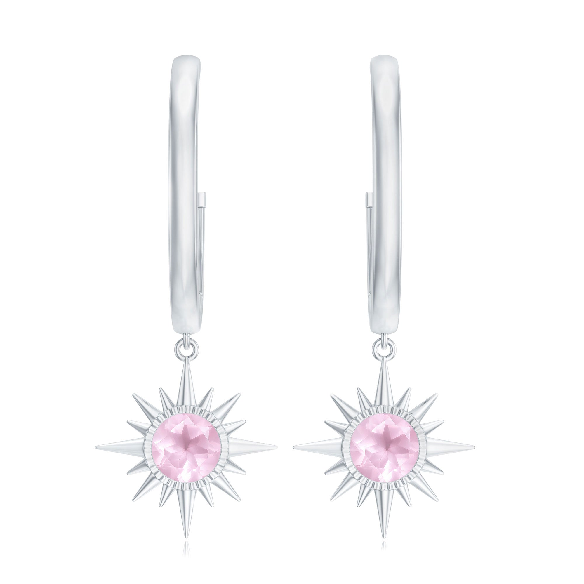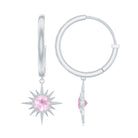 1/2 CT Milgrain Bezel Set Rose Quartz Sunburst Drop Hoop Earrings for Women
