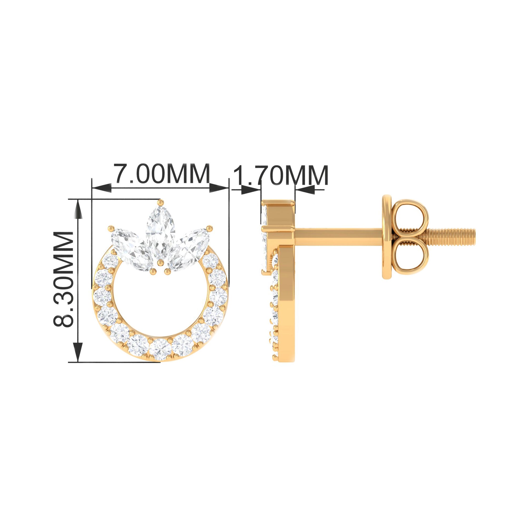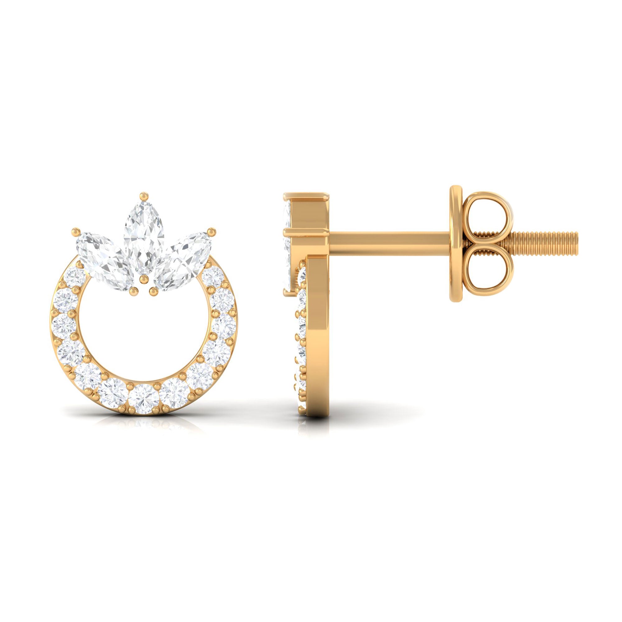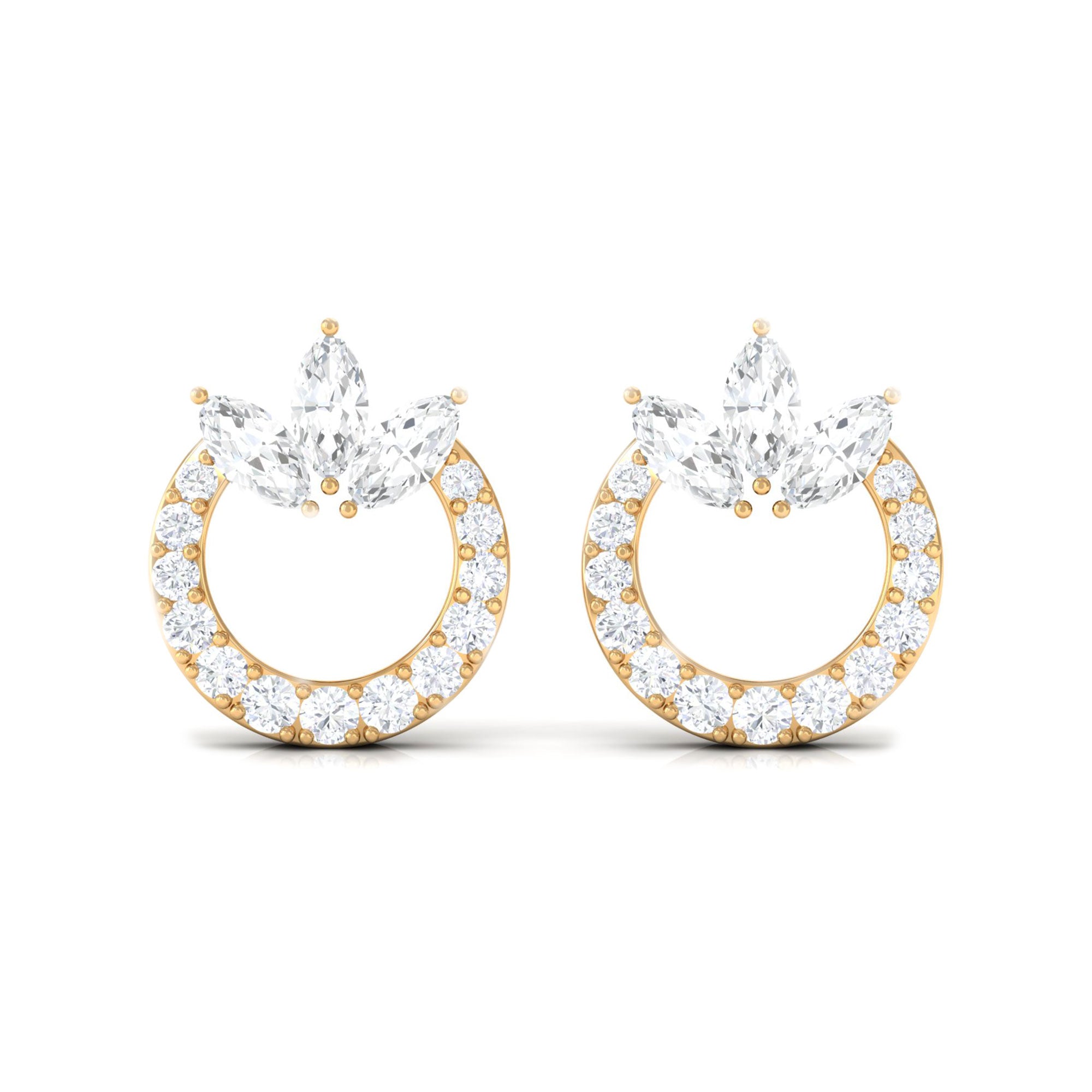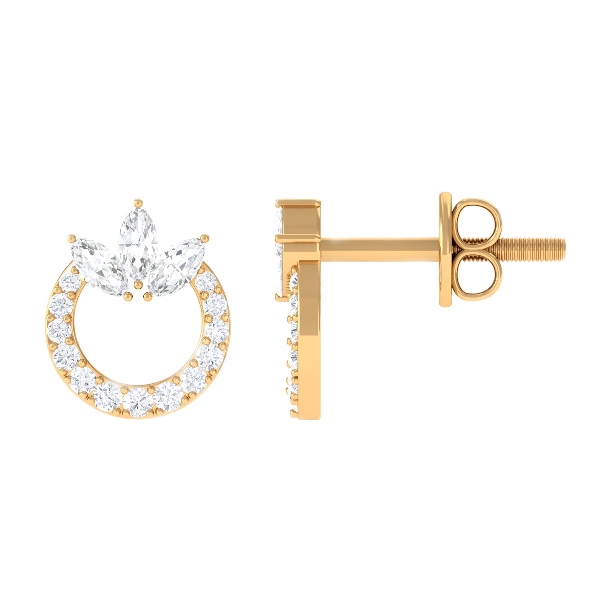 These earrings are the epitome of timeless elegance and sophistication. The circle design is a symbol of infinity and eternal love, making these earrings a perfect gift for a loved one. These earrings are crafted gold. The Moissanite stones sparkle and shine, adding a touch of glamour to any outfit. These earrings are versatile and can be worn with a variety of styles. They are perfect for any occasion, whether its a formal event or a casual night out. Add these stunning earrings to your jewelry collection today.
