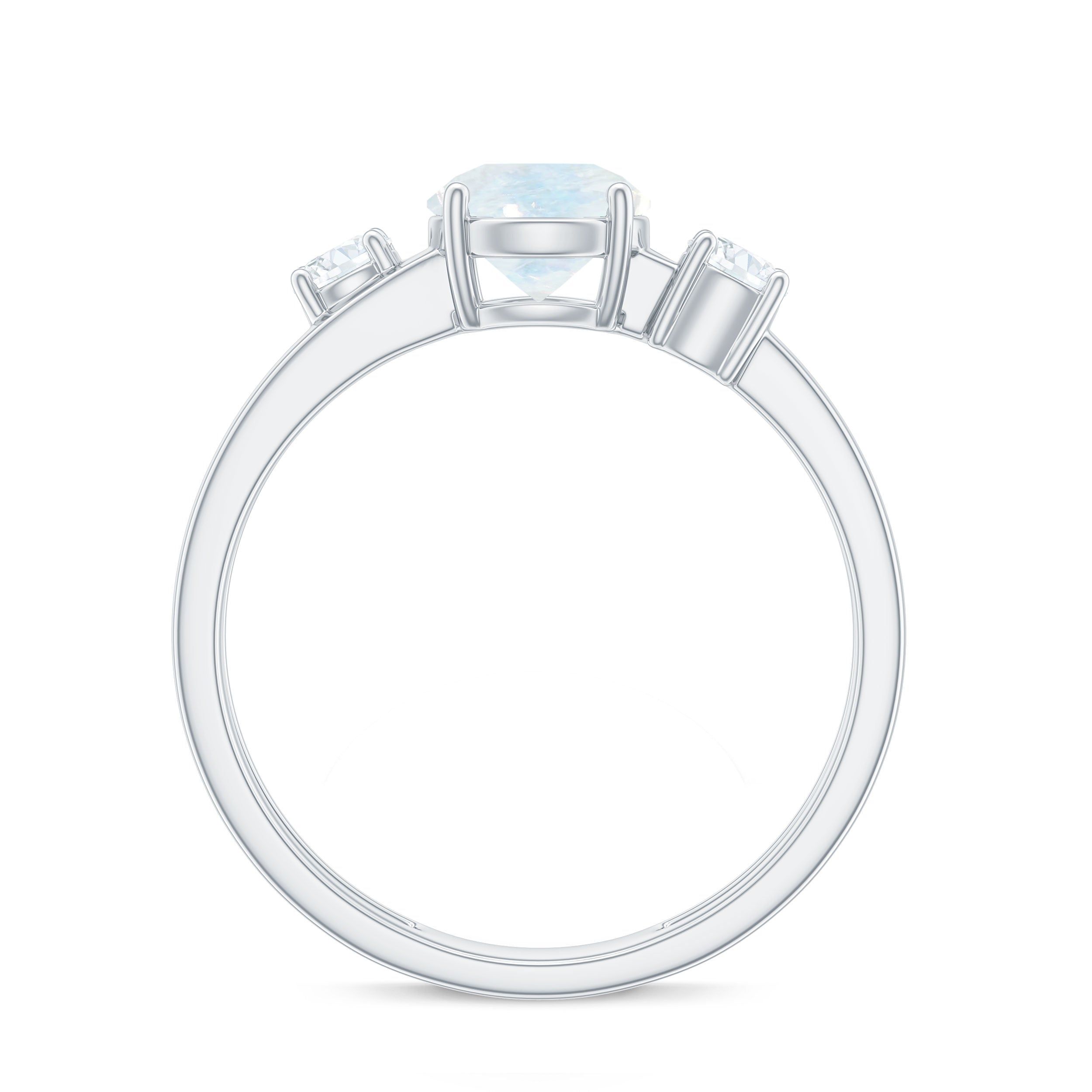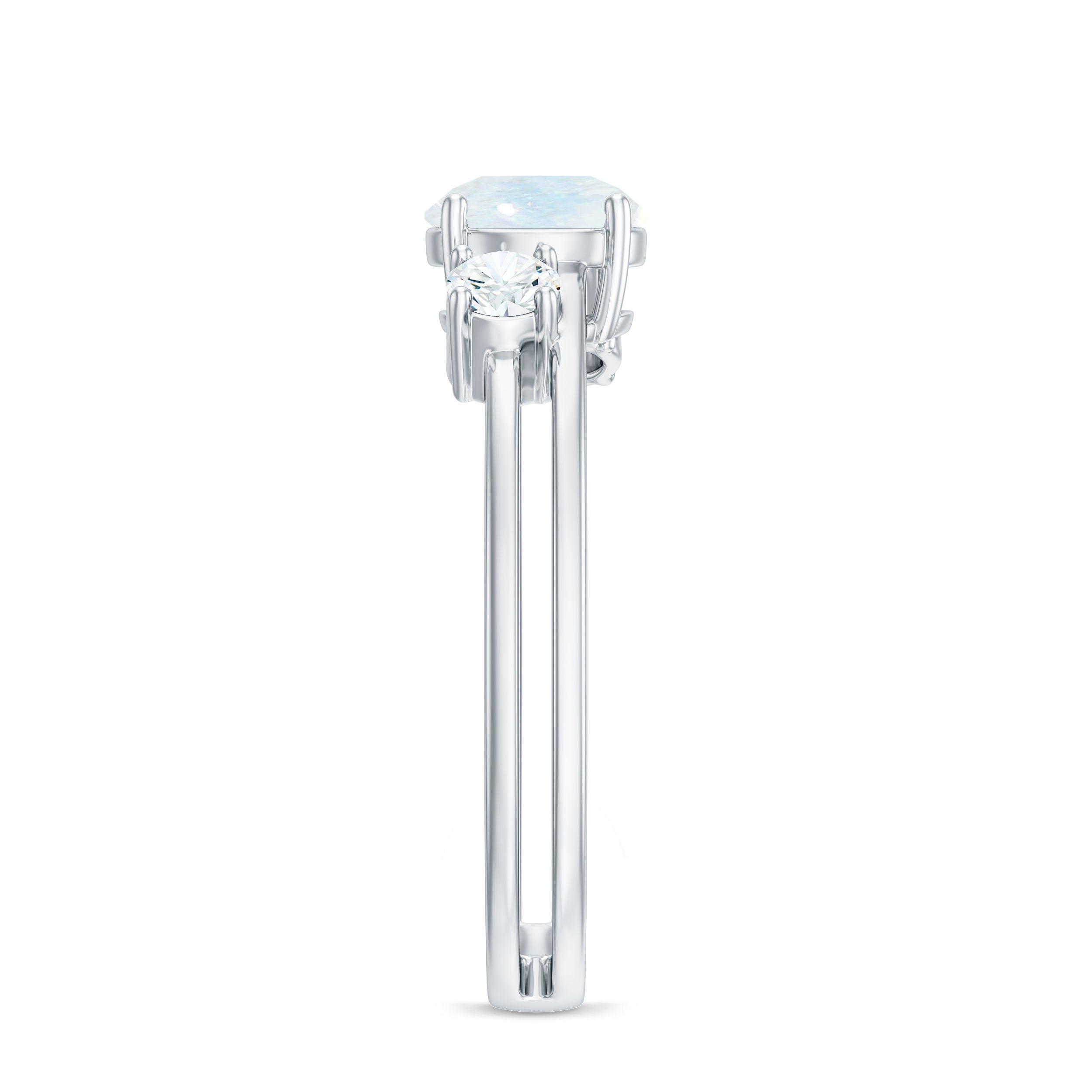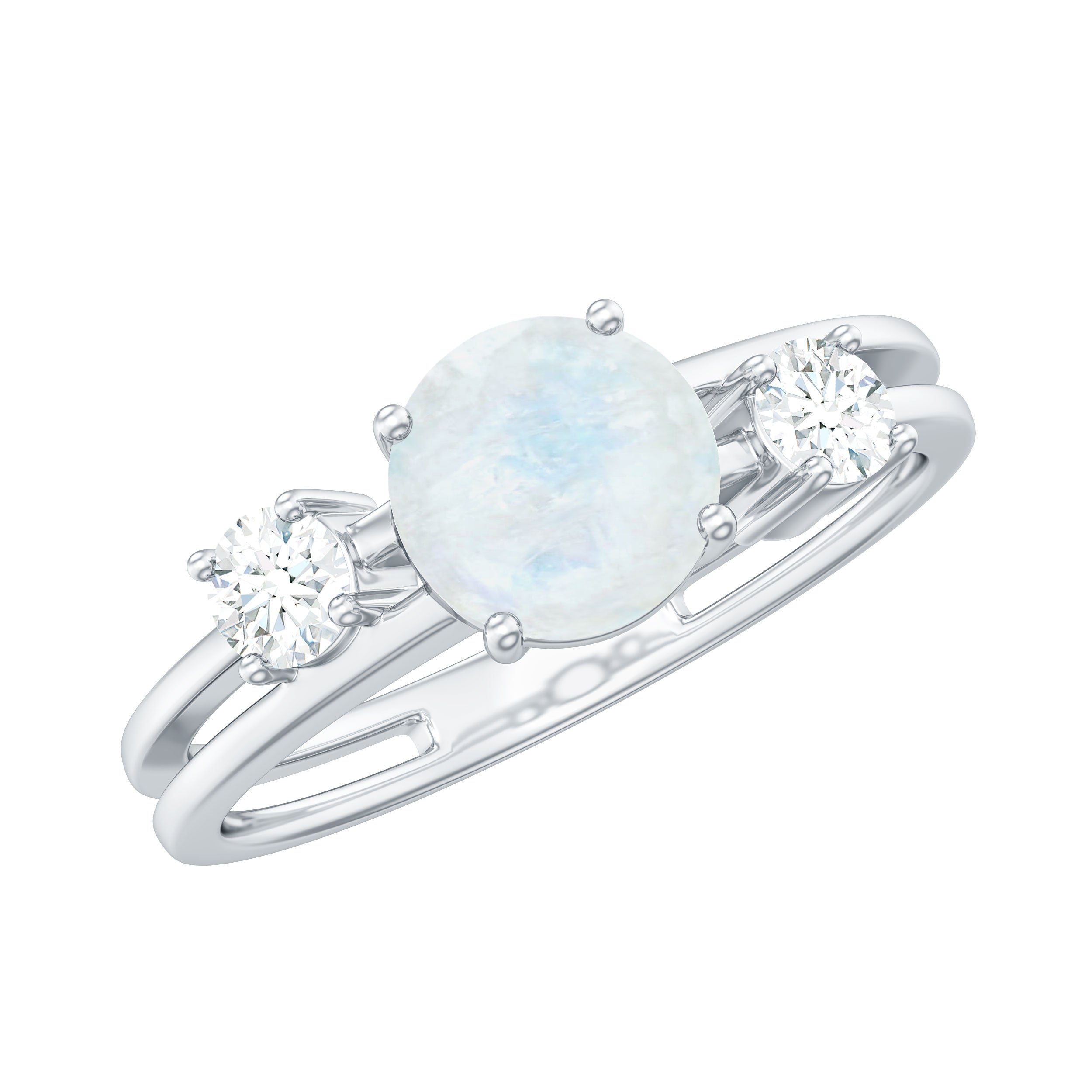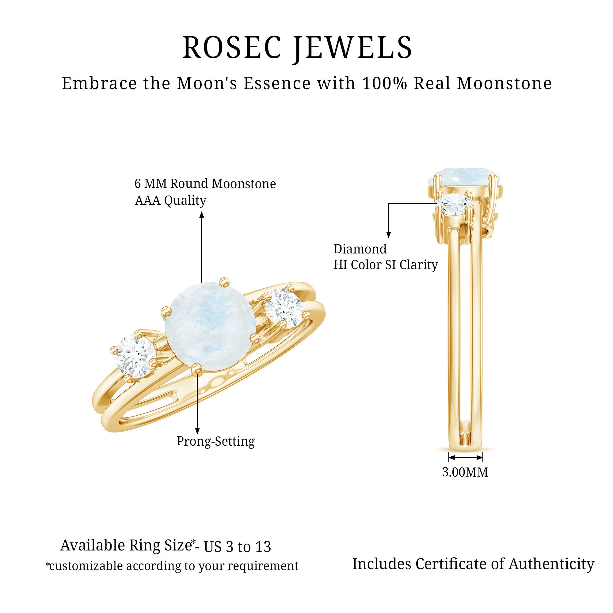 1/2 CT Moonstone Solitaire Double Band Ring with Diamond