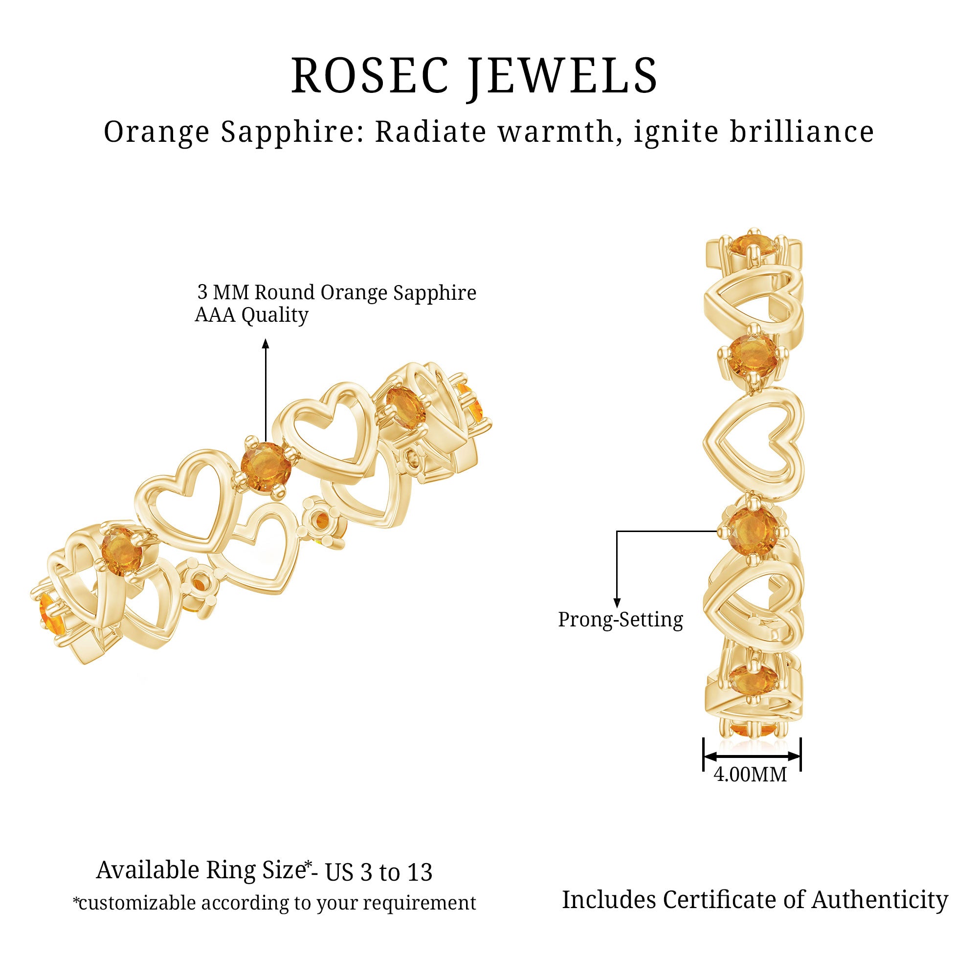 1/2 CT Orange Sapphire Gold Open Heart Band Ring for Women