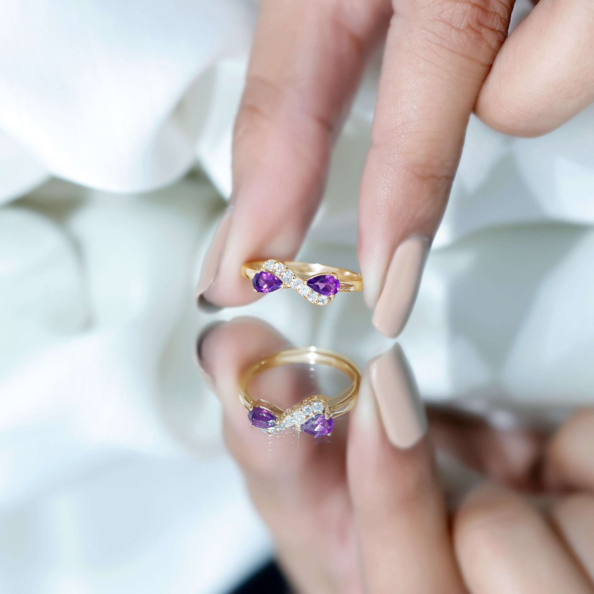 1/2 CT Pear Amethyst Infinity Promise Ring with Diamond
