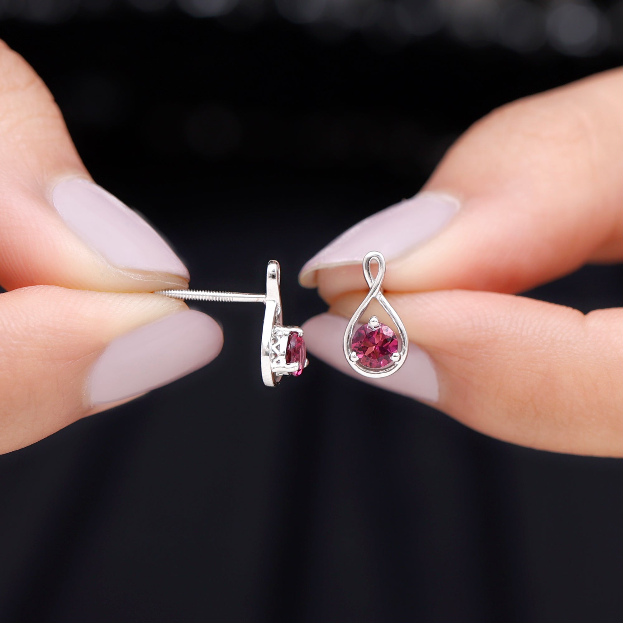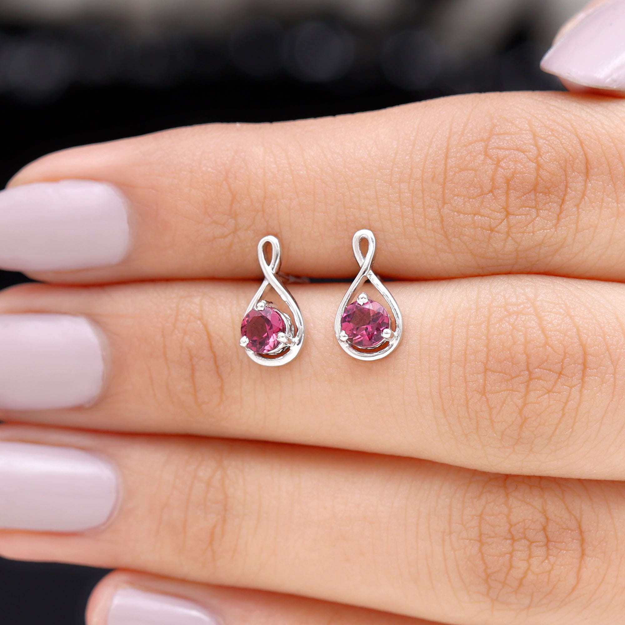 The Unique Design Infinity Stud Earrings are embellished with 4x4 MM Round Cut Pink Tourmaline in Prong Setting studded Beautifully on Solid Gold composed Unique Infinity Pattern. The Lovely Pair of Screw Back Finding Stud Earring is a perfect New Year Surprise for your Lady.