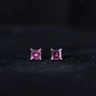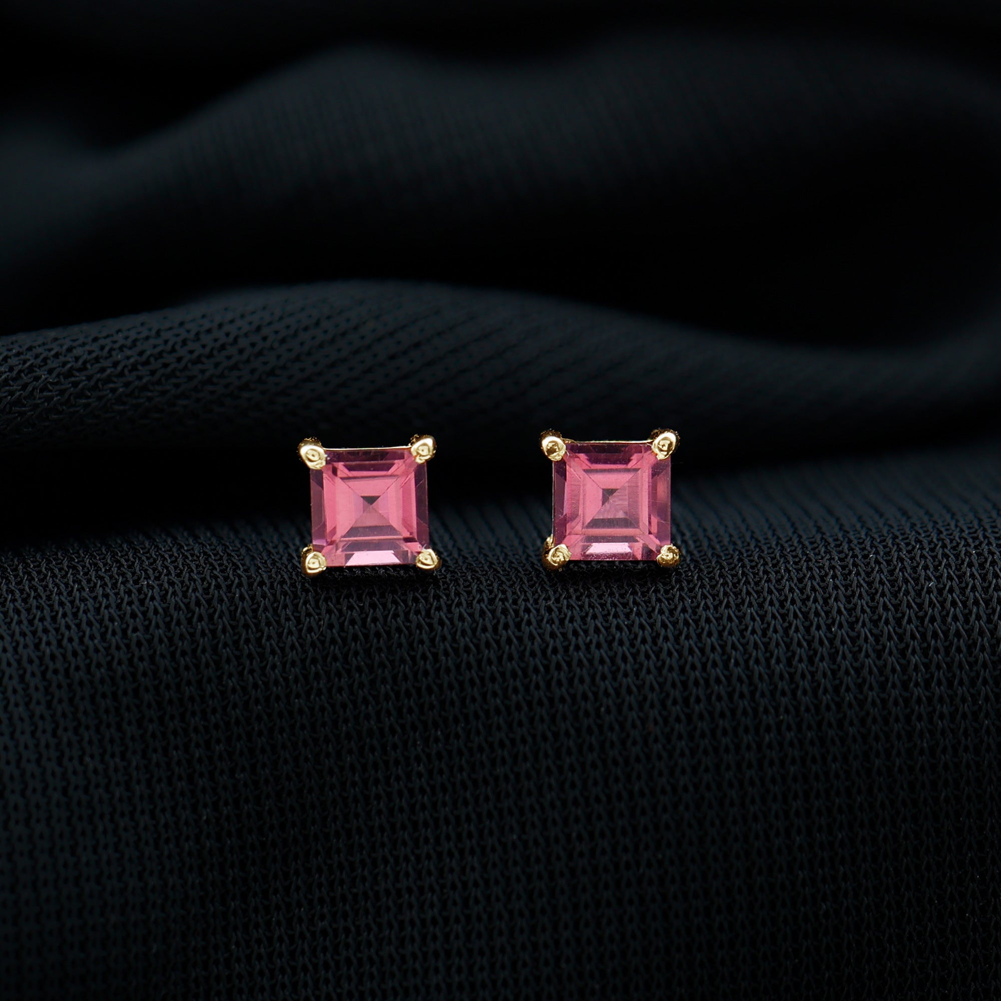 1/2 CT Princess Cut Solitaire Stud Earrings with Pink Tourmaline