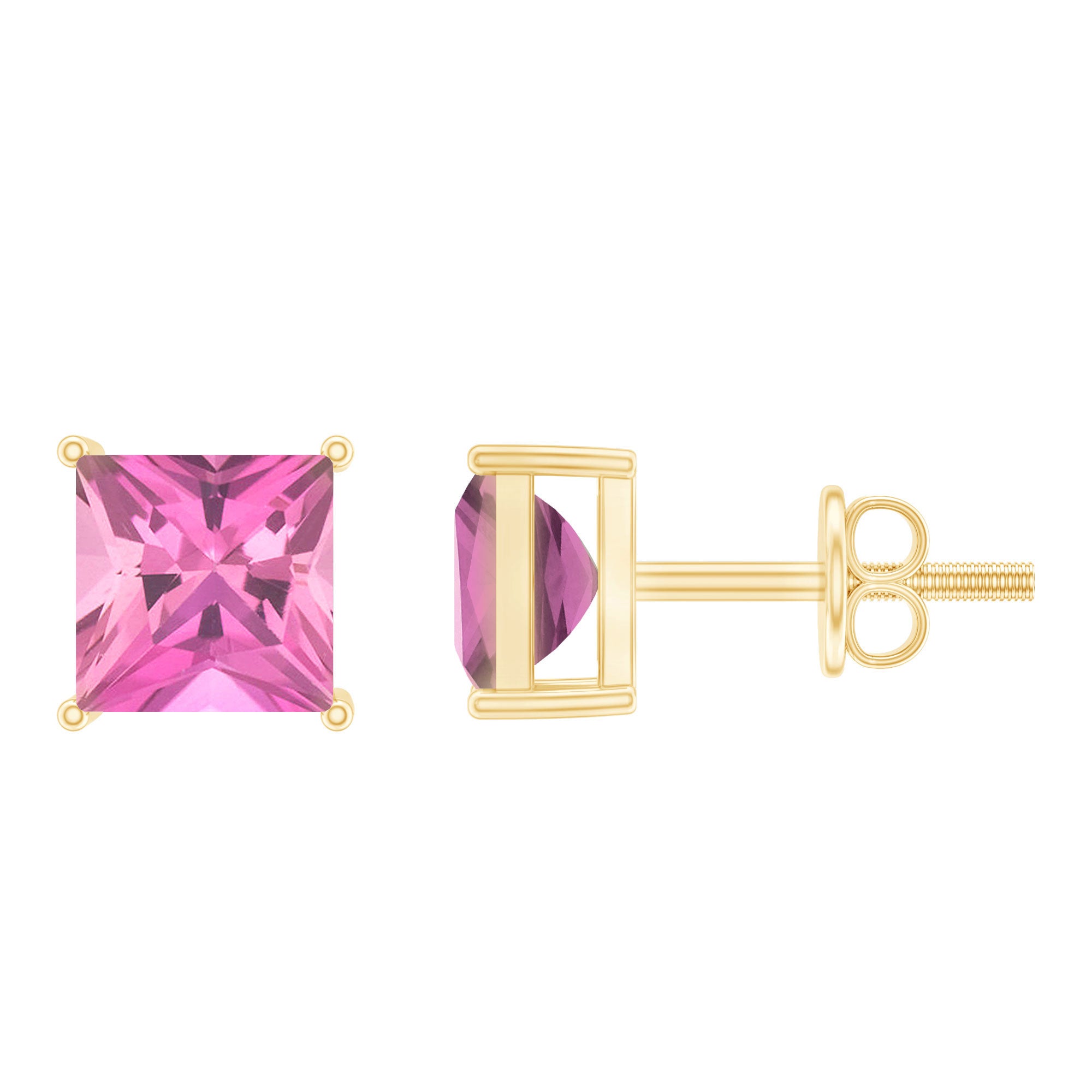 Dazzle like never before in our Solitaire Stud Earrings for Women in Solid Gold featuring Princess Cut Pink Tourmaline embellished in Prong Setting.