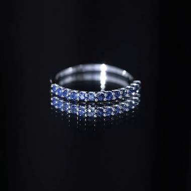 Gracefully designed, this Semi Eternity Ring makes for a beautiful gift for your beloved. Round Cut Blue Sapphire stones adorn this Stackable Anniversary Band Ring to create a charming appeal. This Eternity Band Ring is crafted in Solid Gold for an opulent appeal.