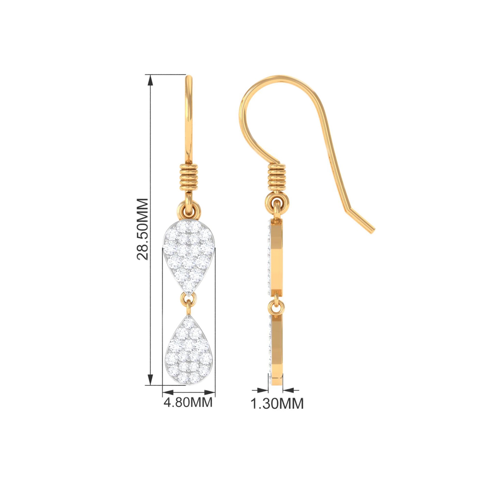 Make a statement with our scintillating diamond dangle earrings. The earrings feature a dangle pattern covered in round diamonds set in a pave setting, and come with a secure fish hook. Whether youre dressing up for a night out or simply want to add a touch of glamor to your everyday look, these diamond dangle earrings are sure to make you shine brighter than ever.