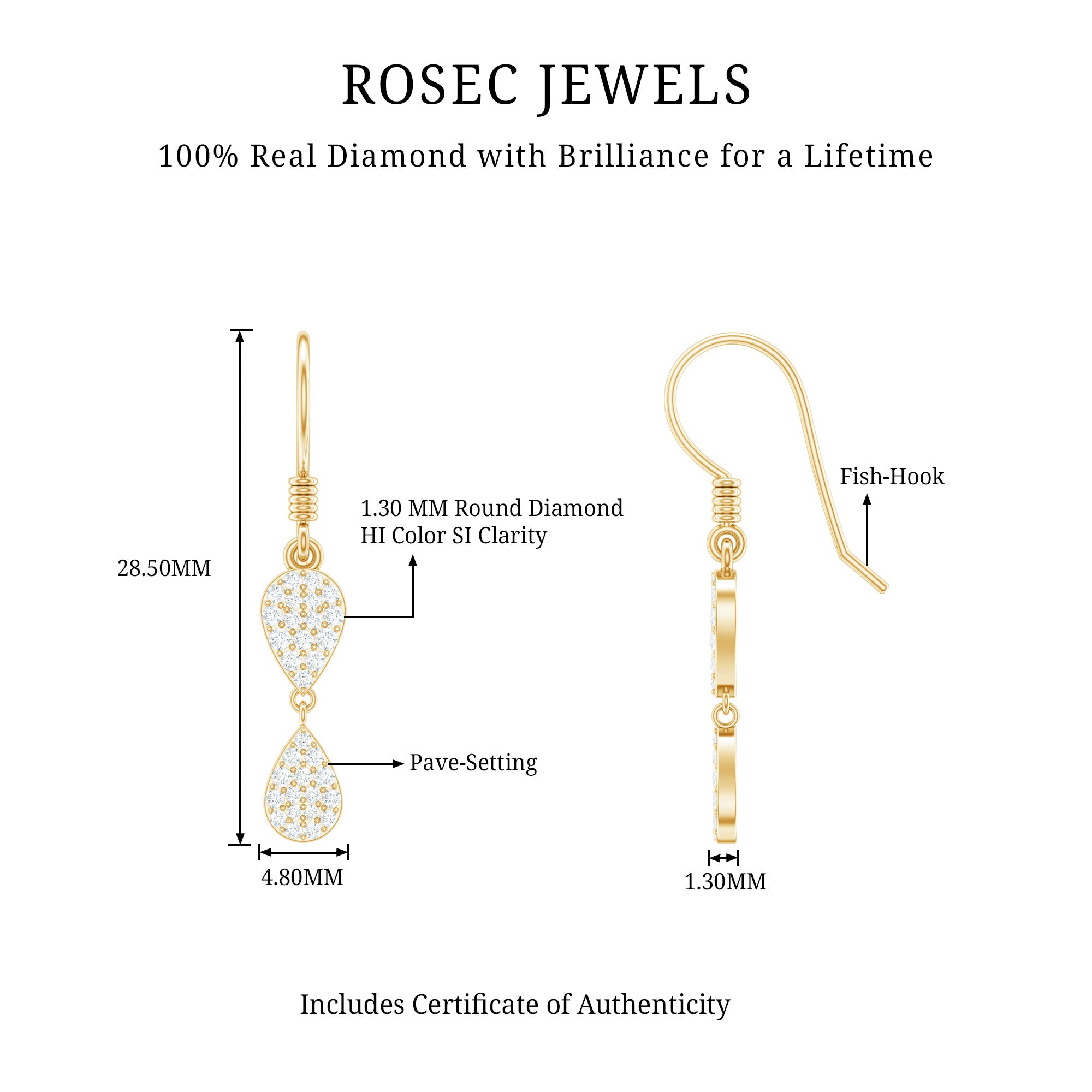Make a statement with our scintillating diamond dangle earrings. The earrings feature a dangle pattern covered in round diamonds set in a pave setting, and come with a secure fish hook. Whether youre dressing up for a night out or simply want to add a touch of glamor to your everyday look, these diamond dangle earrings are sure to make you shine brighter than ever.