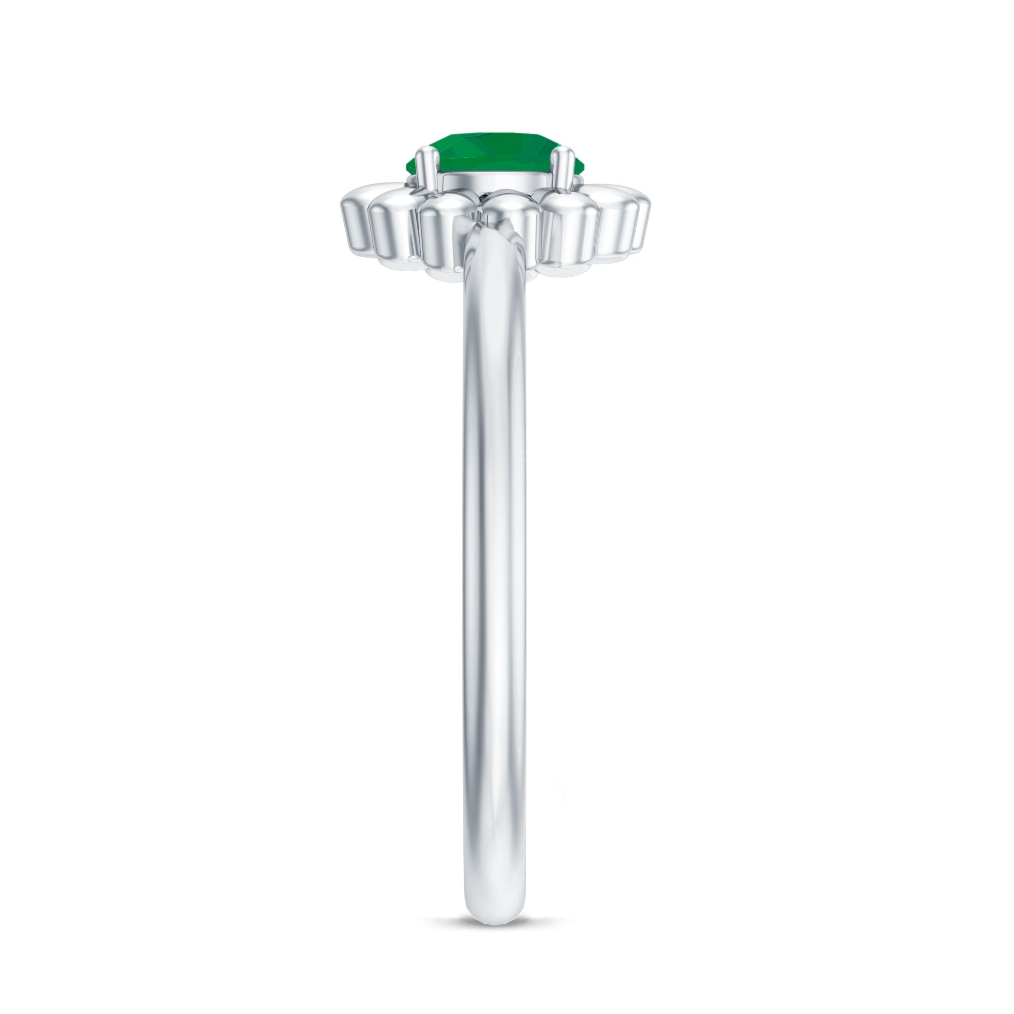 Promise her a love that blossoms forever with this enchanting Flower Promise Ring, a delicate masterpiece that captures the beauty of romance in full bloom. At the center of this floral design rests a vivid 5 mm Round Shape Emerald gemstone, glowing with lush green brilliance and symbolizing growth and devotion. The flower motif gently unfurls around the center stone, creating a stunning design that feels both feminine and timeless. Thoughtfully crafted to embody the poetry of nature, this Emerald Promise Ring is a keepsake of affection, a daily reminder of a bond that continues to flourish. Whether it is a heartfelt promise, a meaningful gift or a symbol of new beginnings, this Emerald Flower Ring speaks straight to the soul. Presented in a signature jewelry box and available in a range of ring sizes, this Emerald Ring for Women is ready to make any moment unforgettable.