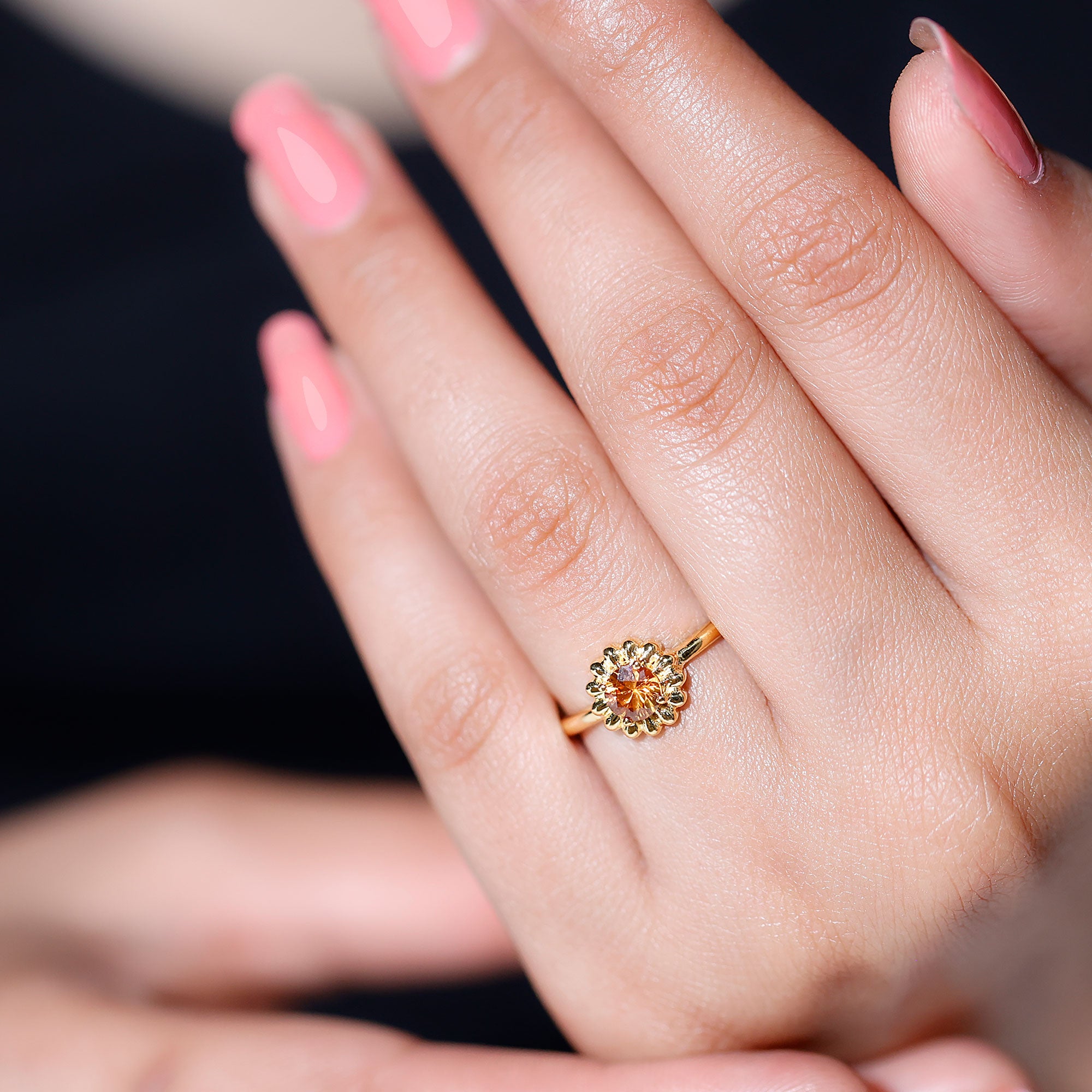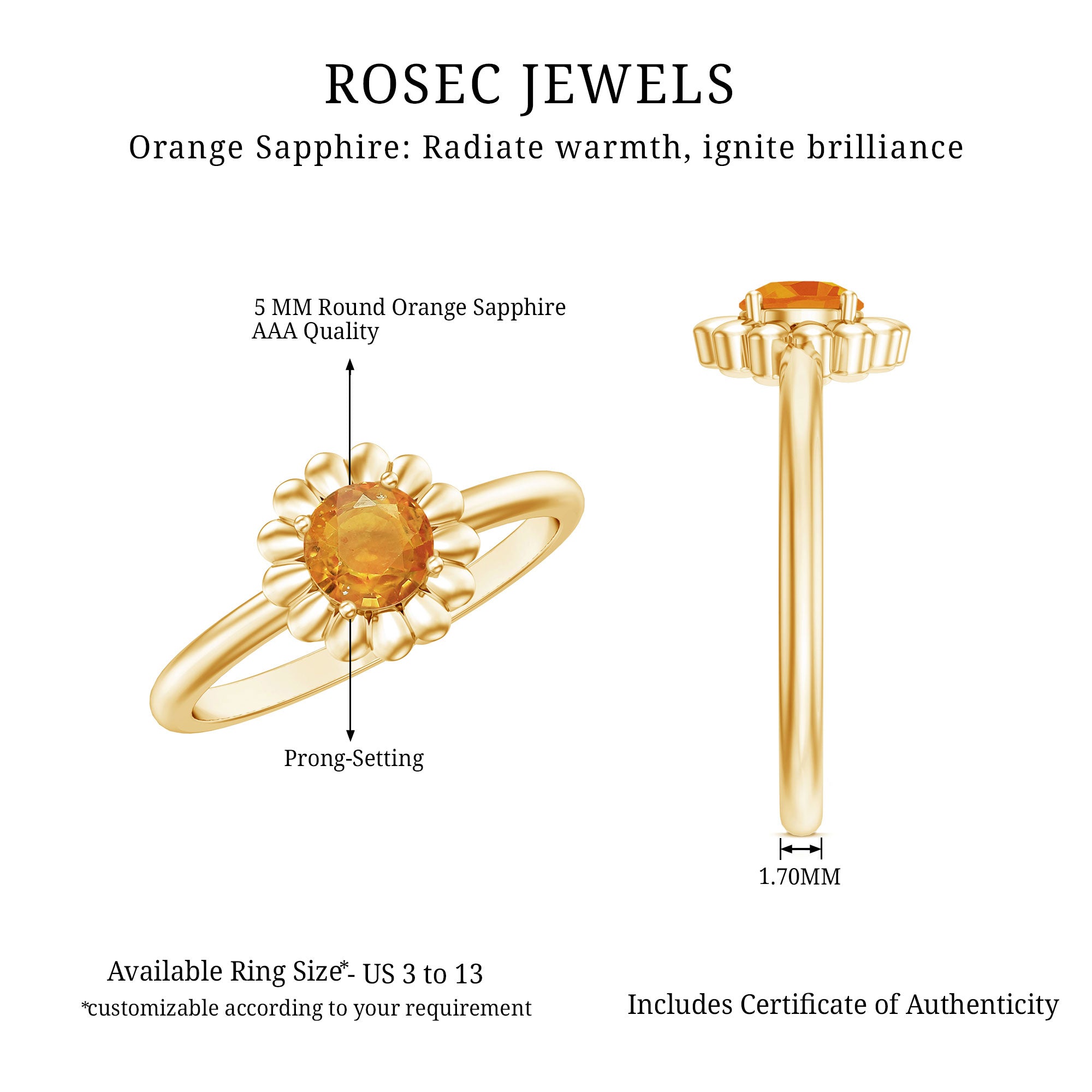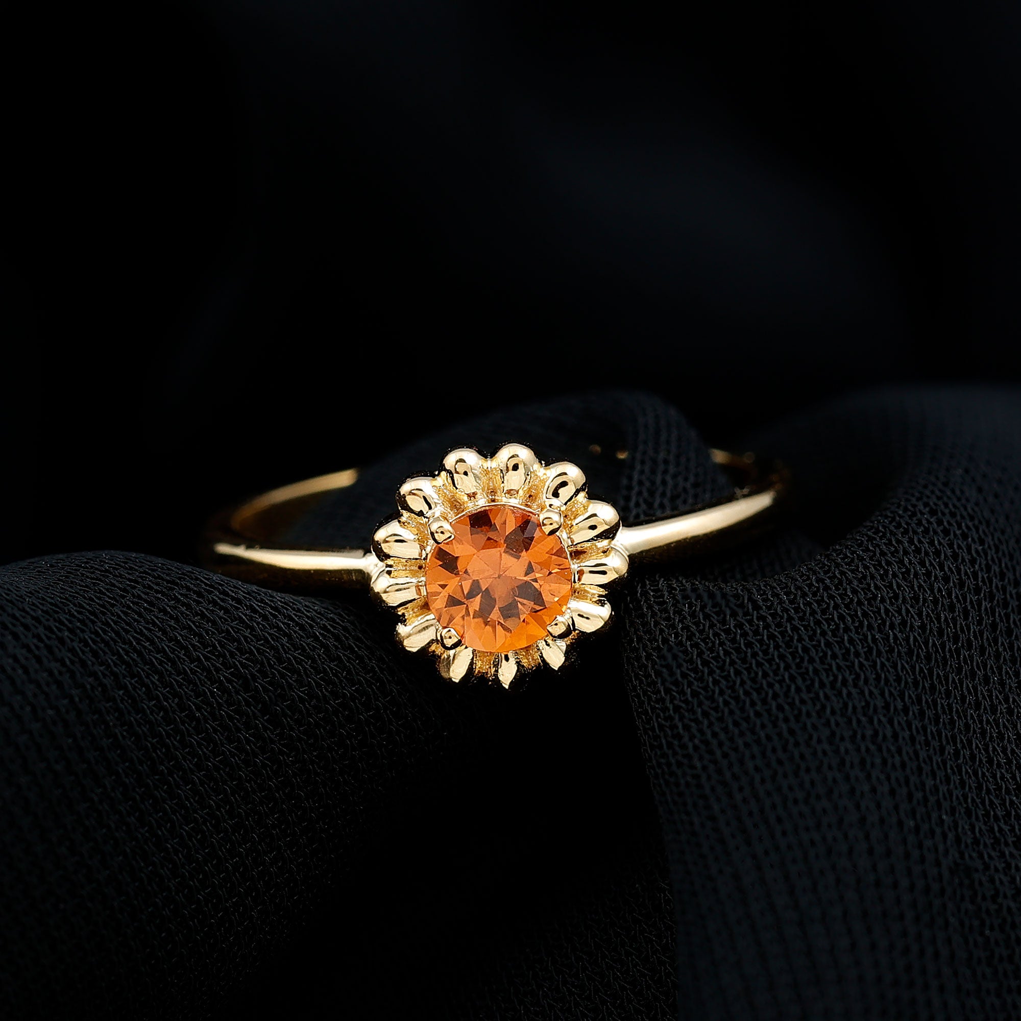 1/2 CT Round Cut Solitaire Orange Sapphire Gold Flower Engagement Ring