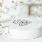 Timelessness of your bond can be seen with the exchange of perfect jewelry. This Moissanite Wedding Ring Set is crafted in Gold for luxurious appeal, embellished with round shape moissanite solitaire ring in prong Setting also it has Moissanite Stackable Ring to add more charm to the ring set. Make your special day enchanting with presenting this Bridal Ring Set to your significant other.