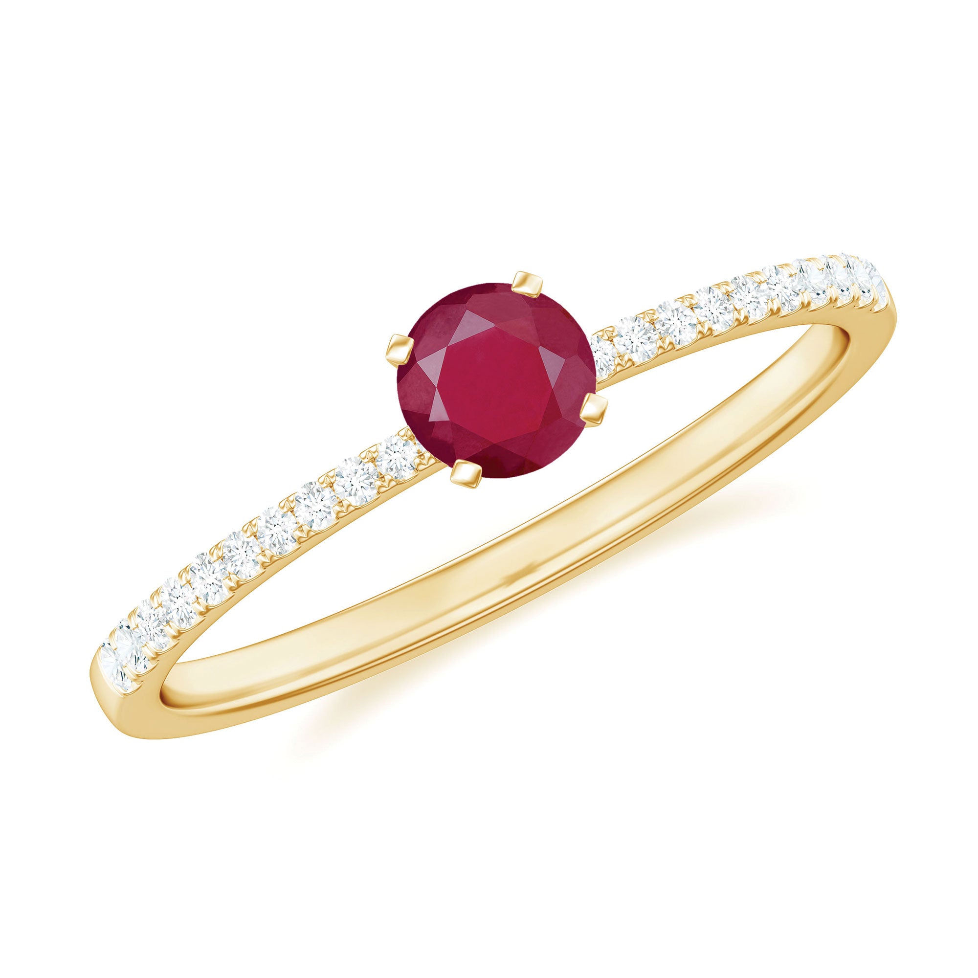 1/2 CT Round Ruby Solitaire Promise and Diamond Ring