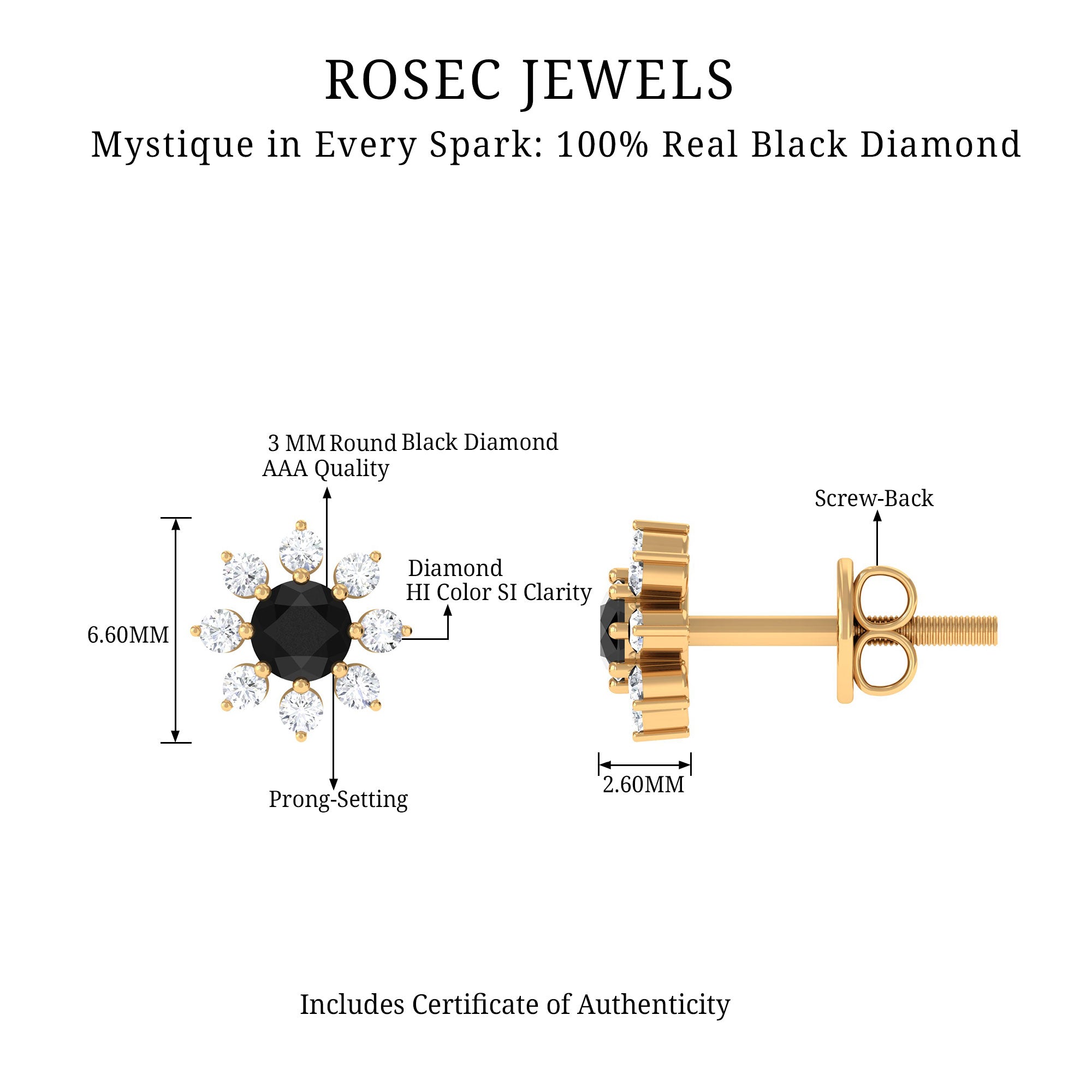 1/2 CT Round Shape Black and White Diamond Floral Stud Earring