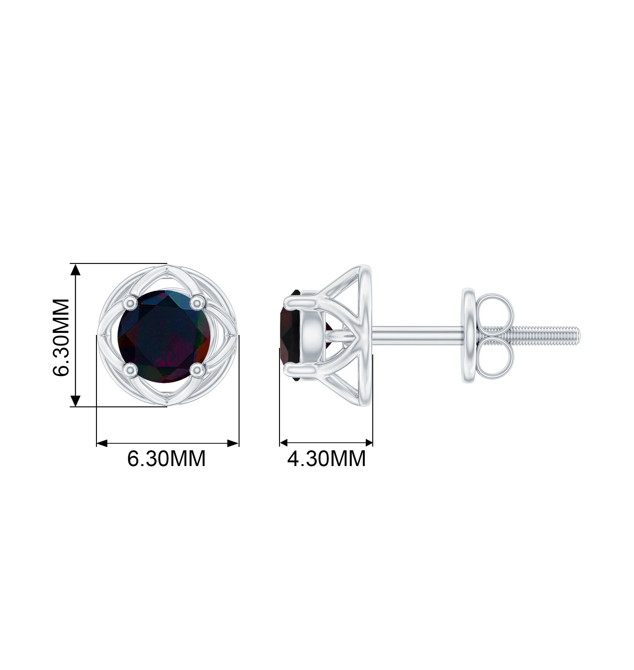 1/2 CT Round Shape Black Opal Solitaire Floral Stud Earrings