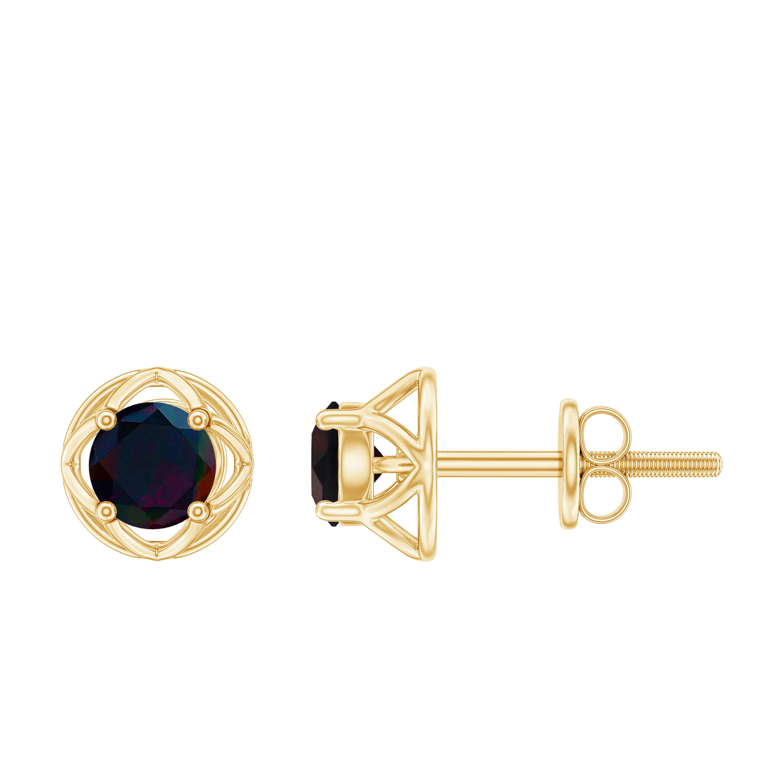 These Solitaire Floral Stud Earrings are the perfect way to add a touch of feminine elegance to your style. Adorned with Round Shape Black Opal in Prong Setting, these Stud Earrings come with Screw Back Closure. The floral design adds a delicate and charming touch to these earrings. These earrings are crafted from gold metal, ensuring they will be a cherished addition to your jewelry collection.