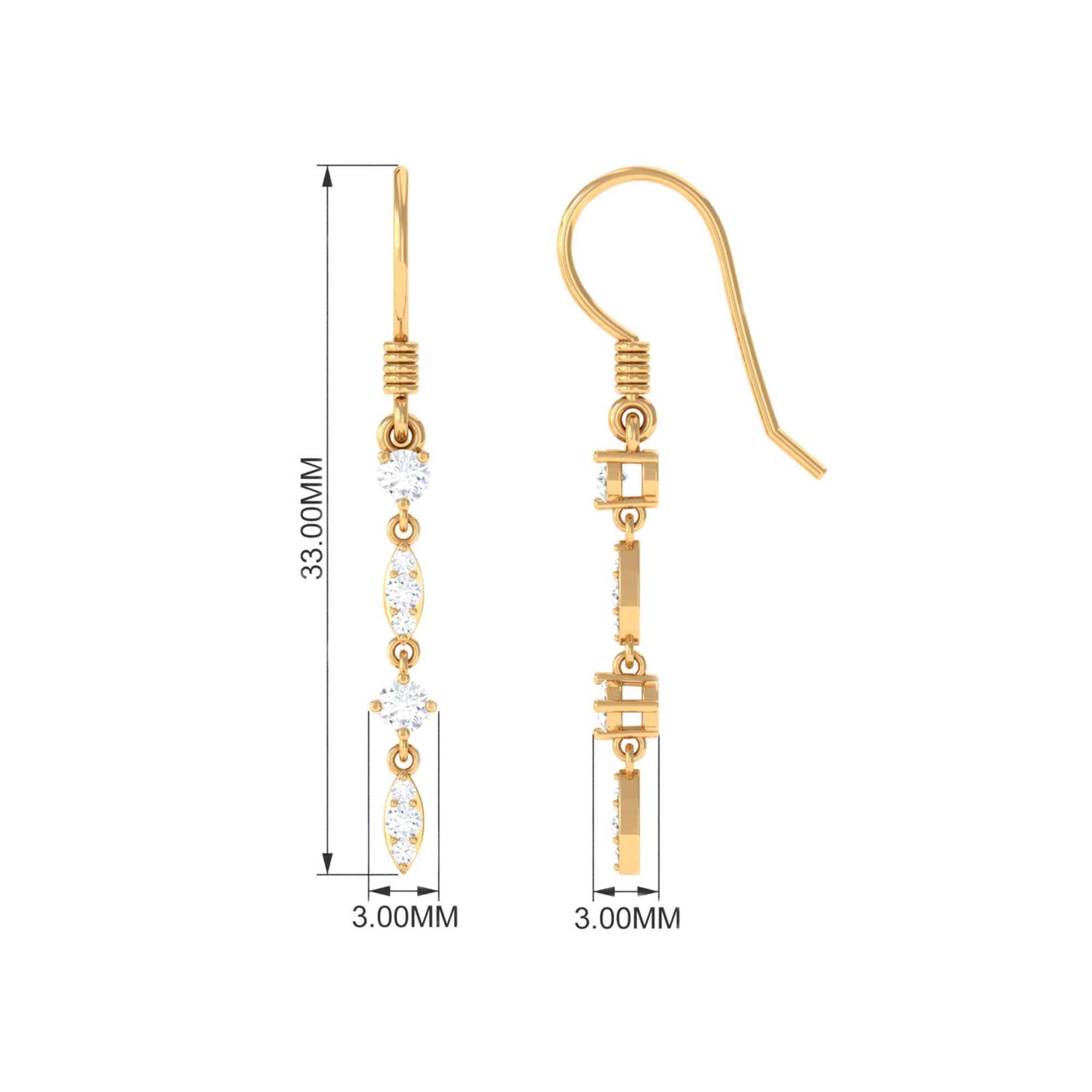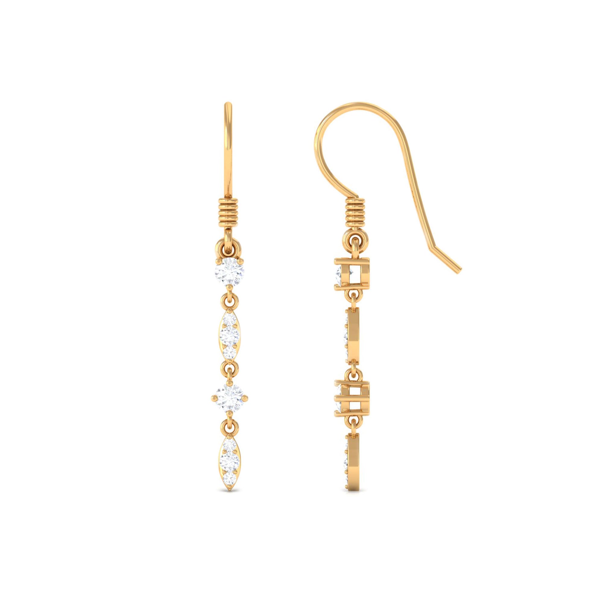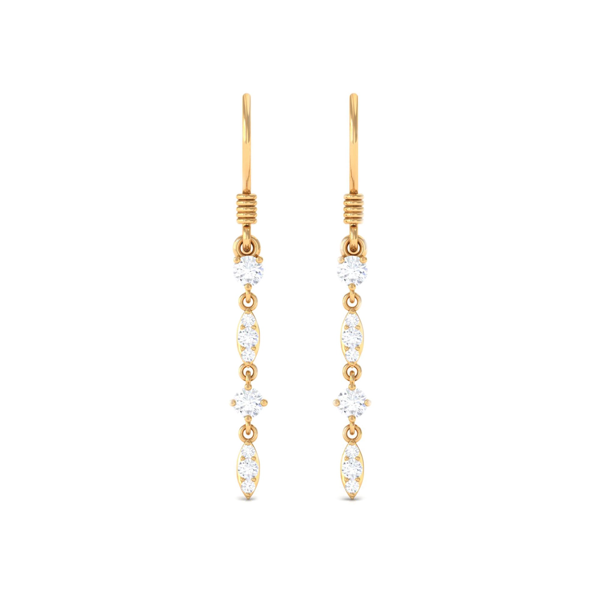 Add some dazzle to your days with these Sparkling Moissanite Simple Dangle Earrings. These Moissanite earrings feature a dangle pattern adorned with round Moissanite, and are secured with a fish hook. Crafted from solid gold, these earrings radiate a brilliant shine that will enhance your appearance and catch the eye. Make a statement with these exquisite earrings that are sure to bedazzle any outfit.