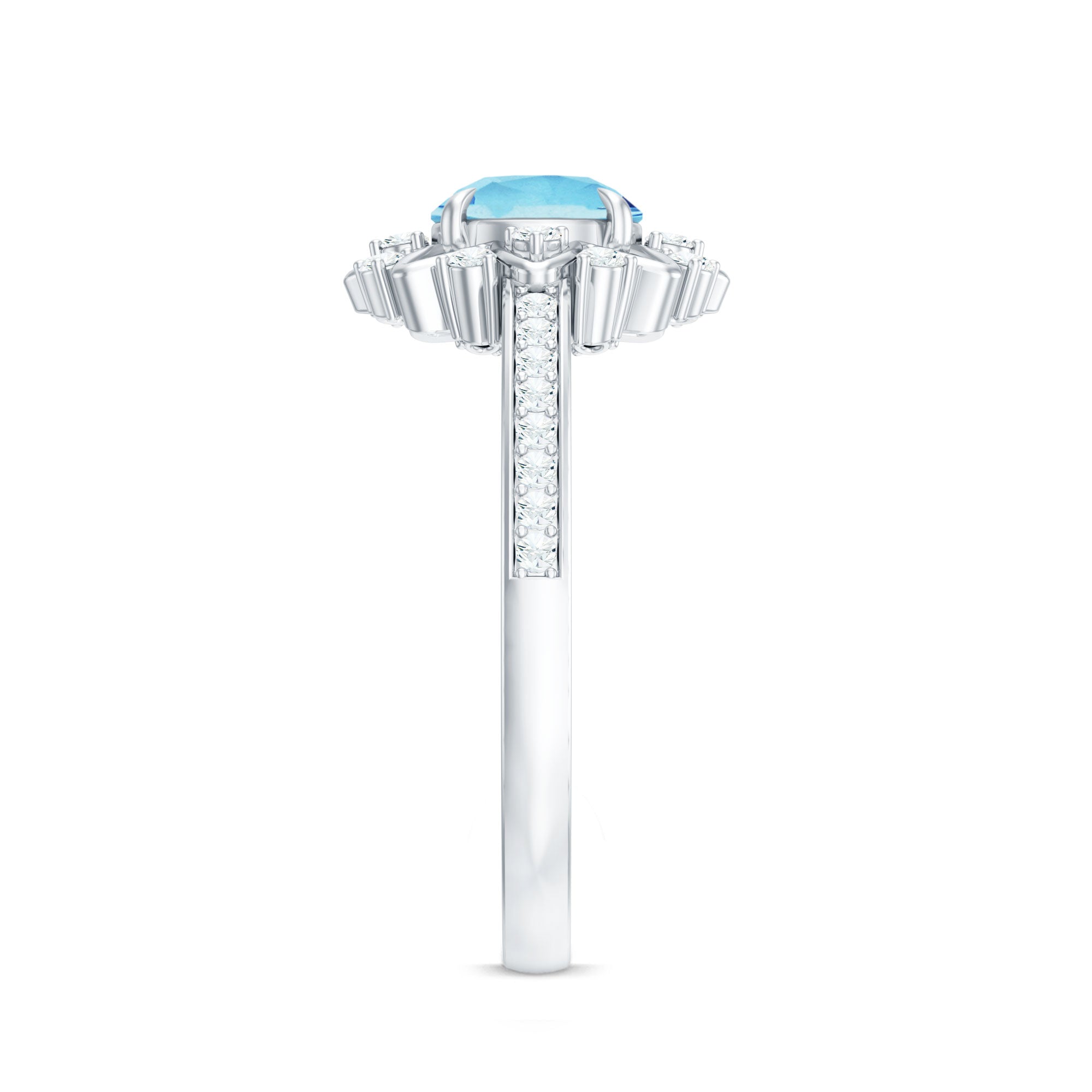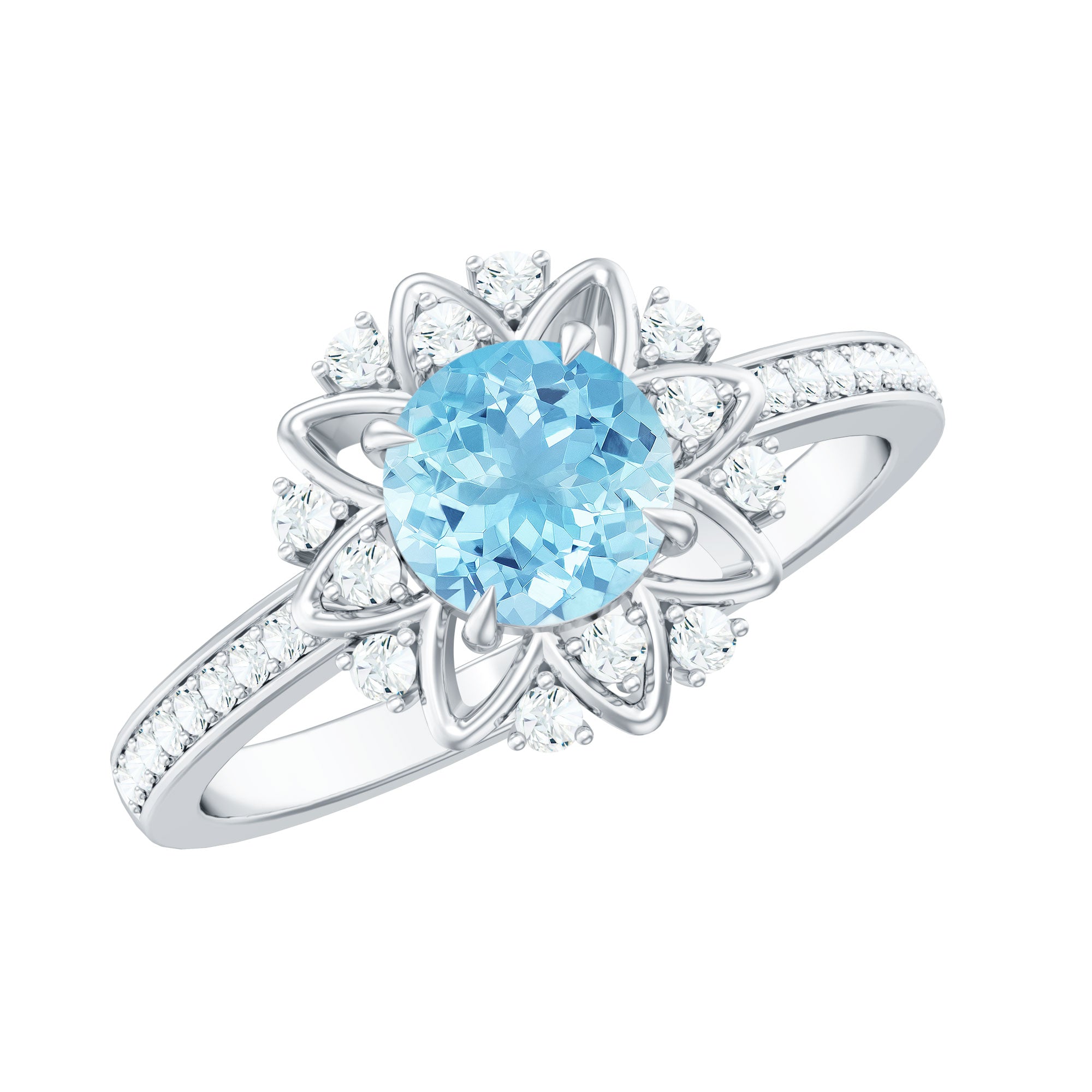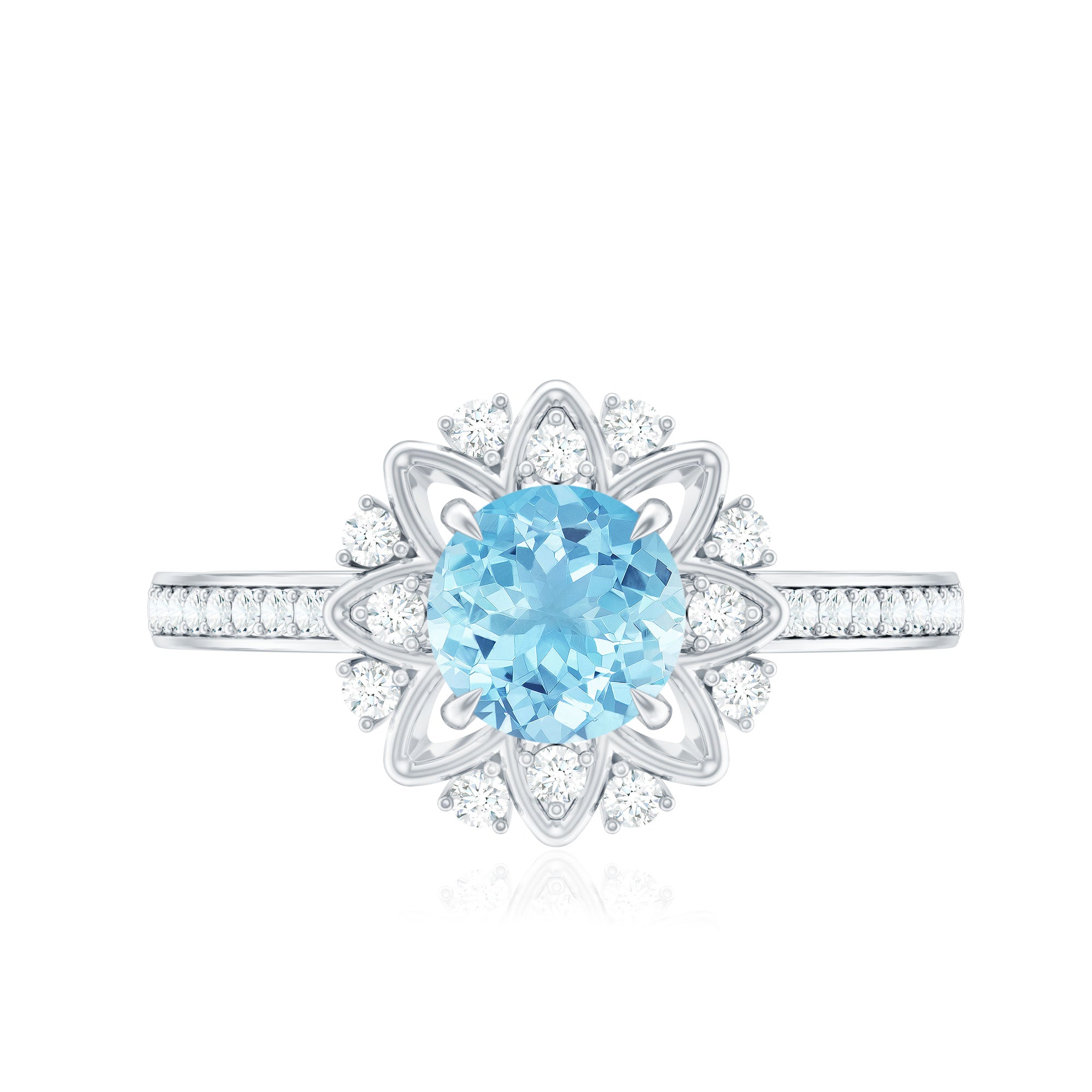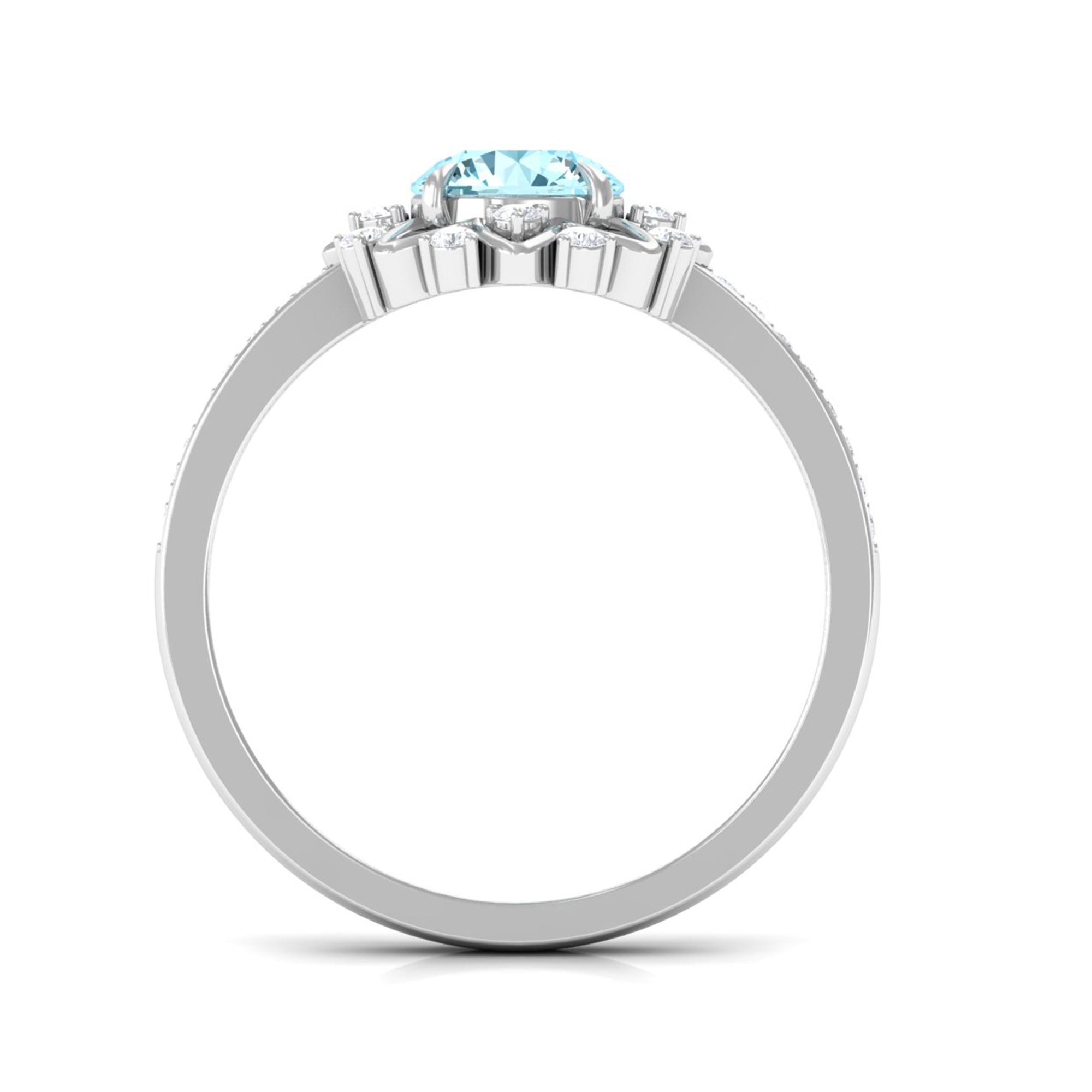1.25 CT Aquamarine Floral Engagement Ring with Diamond Side Stones