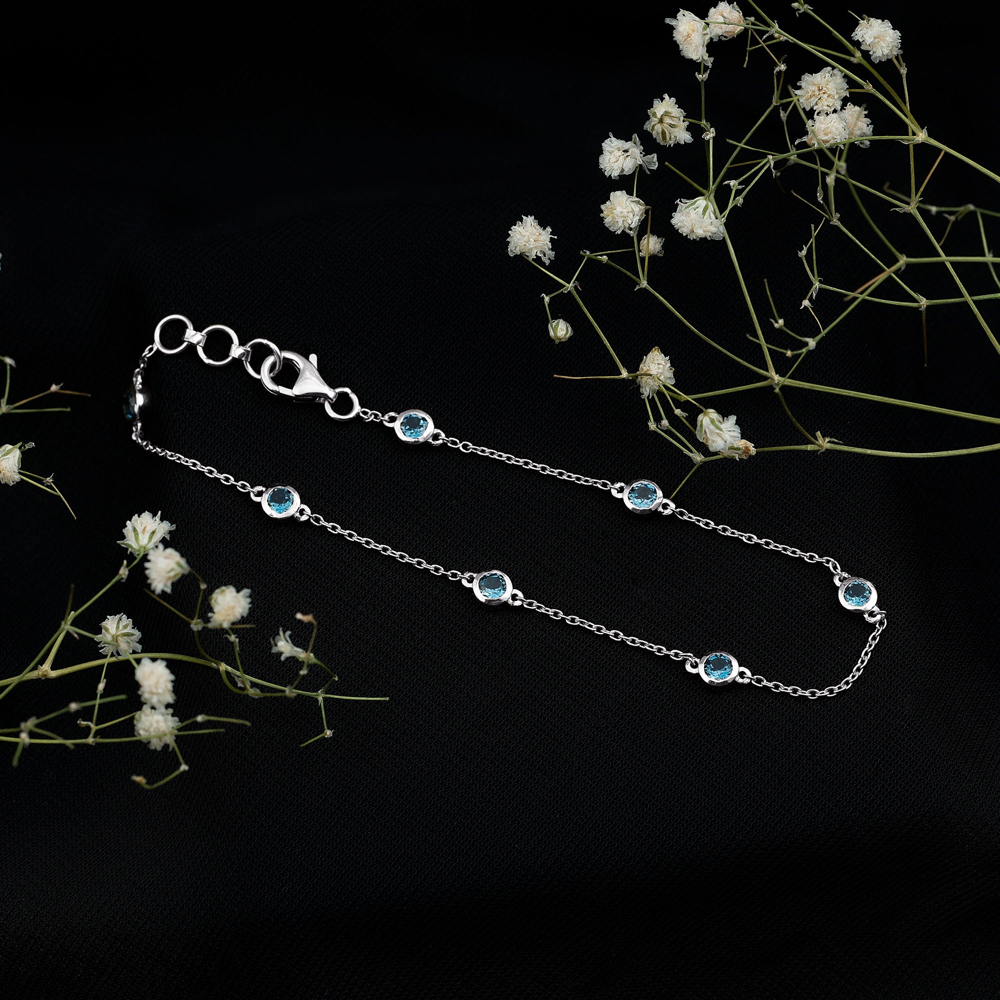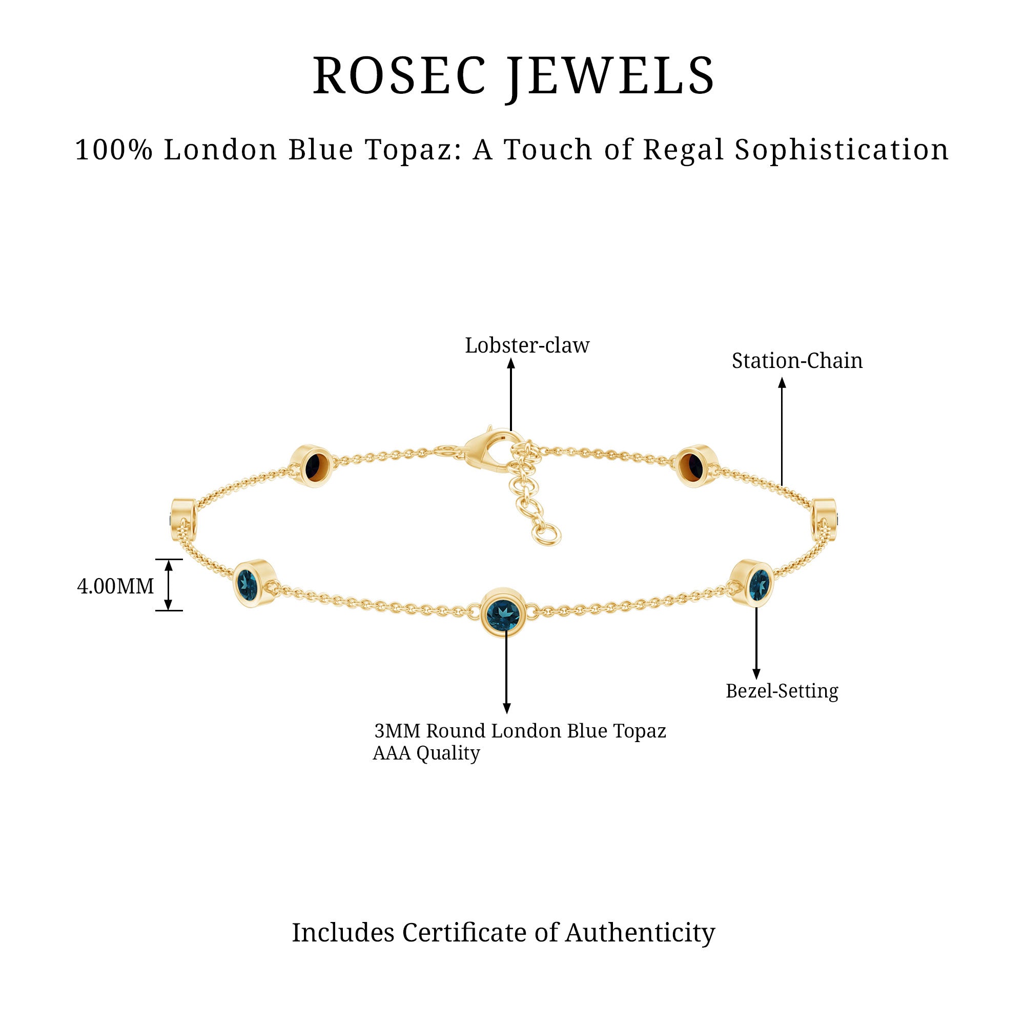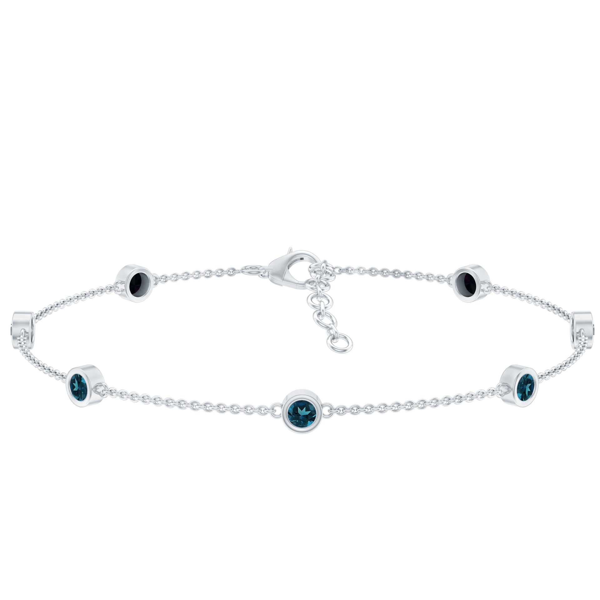 1.25 CT Bezel Set London Blue Topaz Seven Stone Station Chain Bracelet