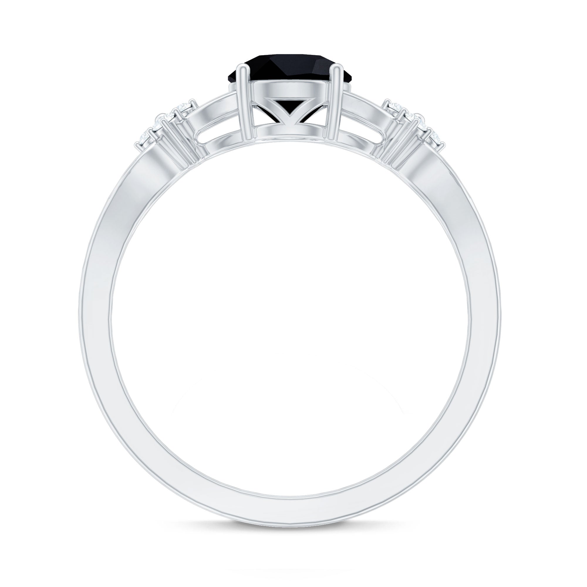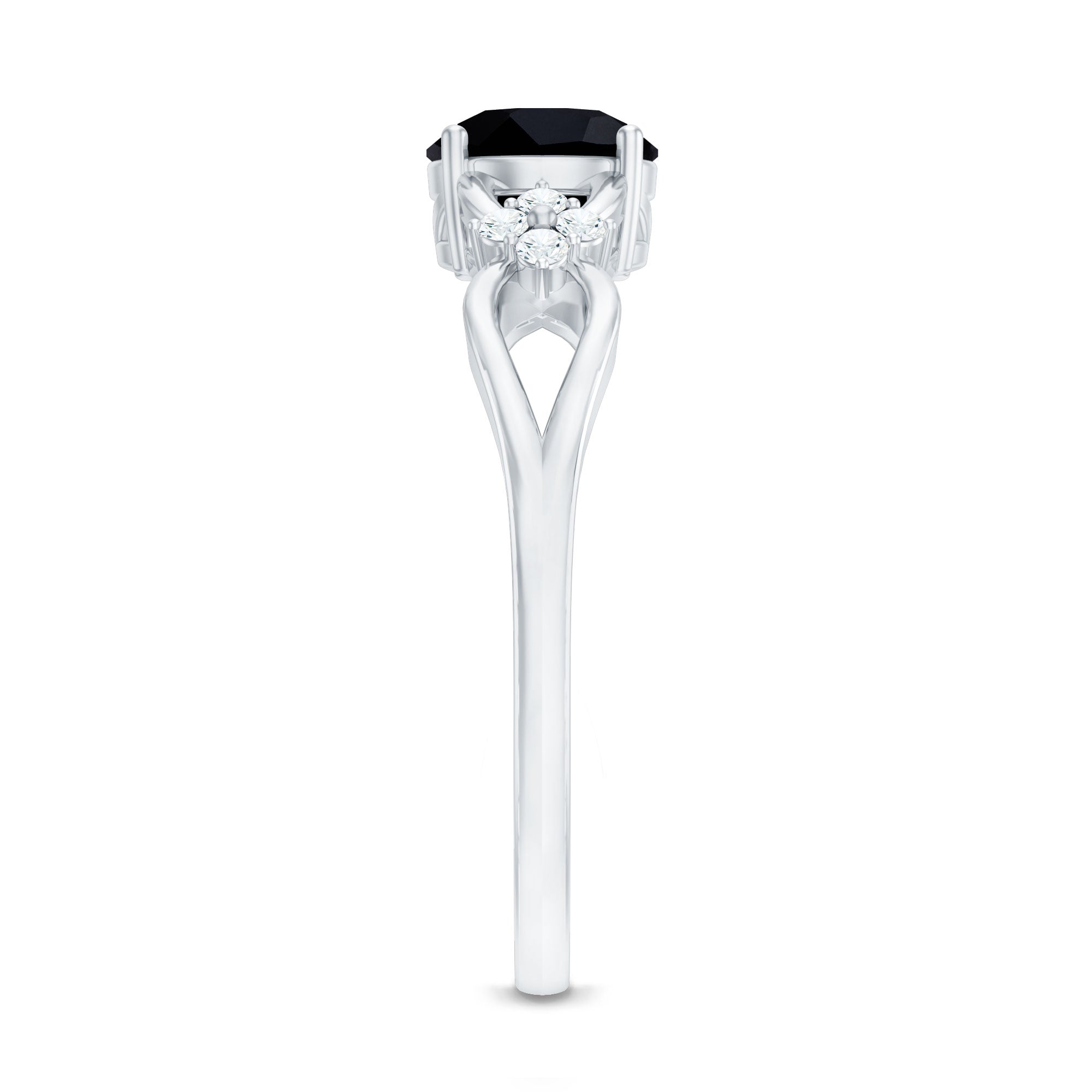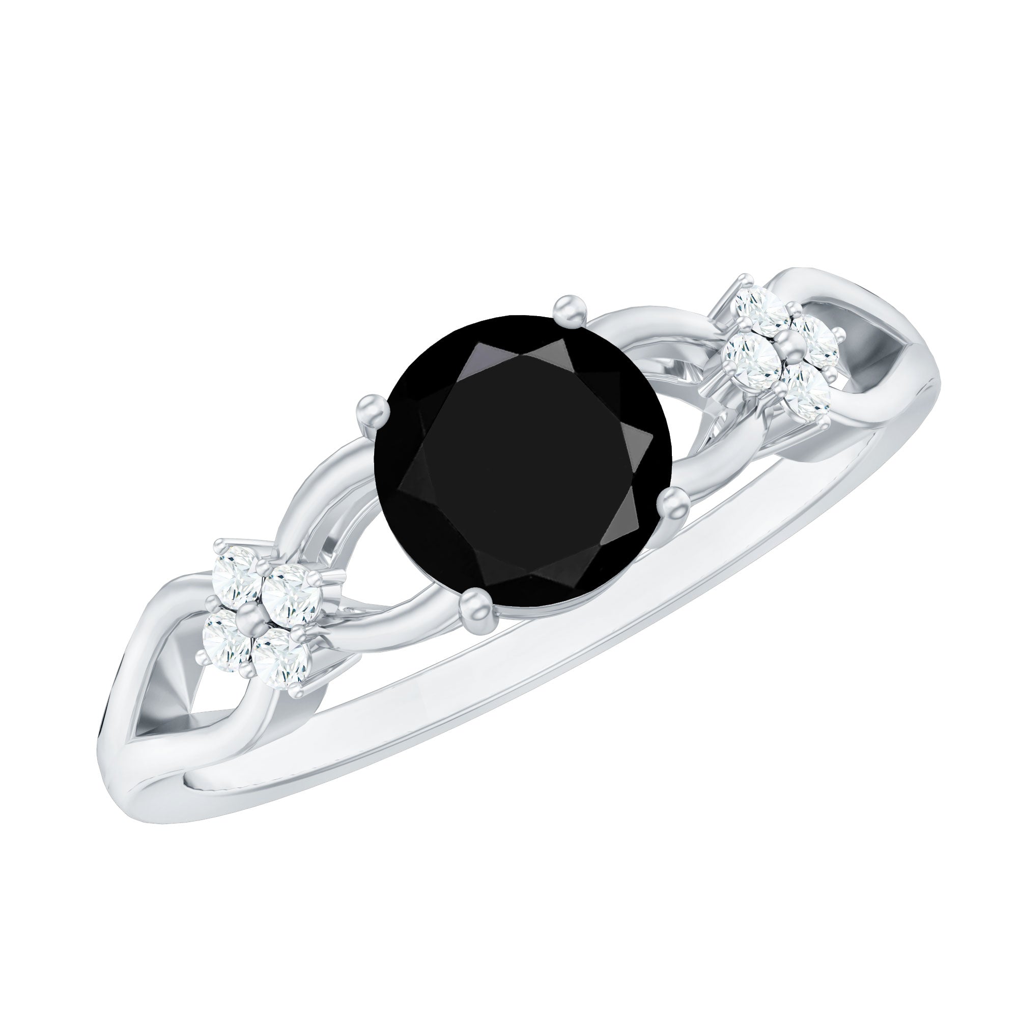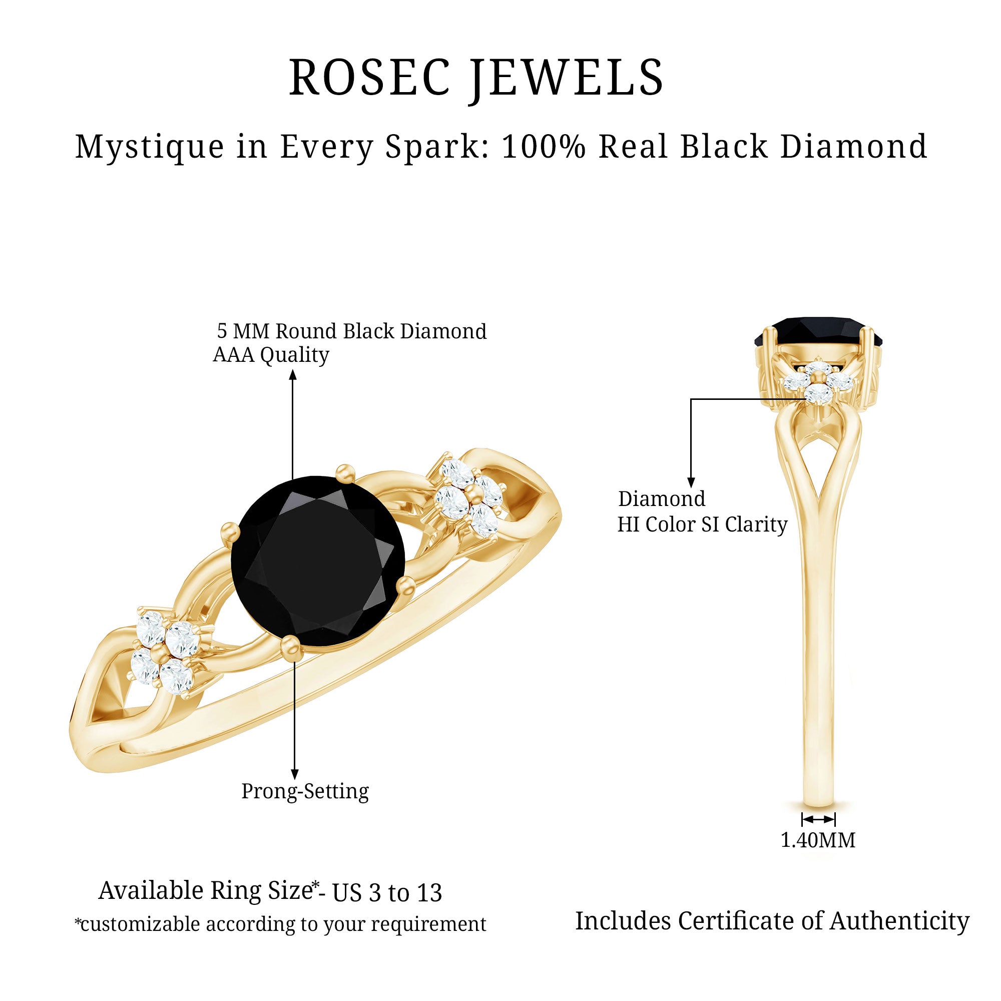 Whether its a special occasion or just because, this ring is sure to take her breath away and leave her feeling like the queen she truly is. This ring is embellished with Round Shape Black Diamond and its crossover shank it accentuated with Diamond, giving this ring a elegant look. This black diamond and Diamond ring is how she wanted it to be - bold and beautiful.