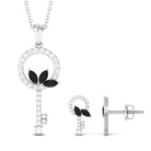 1.25 CT Black Onyx and Diamond Key Pendant Earrings Set