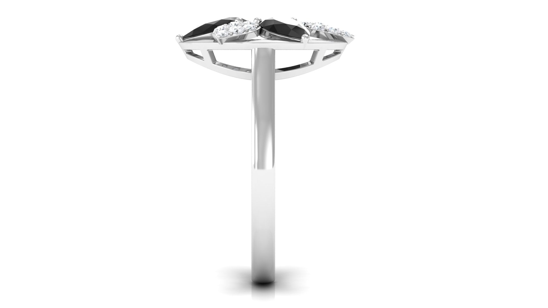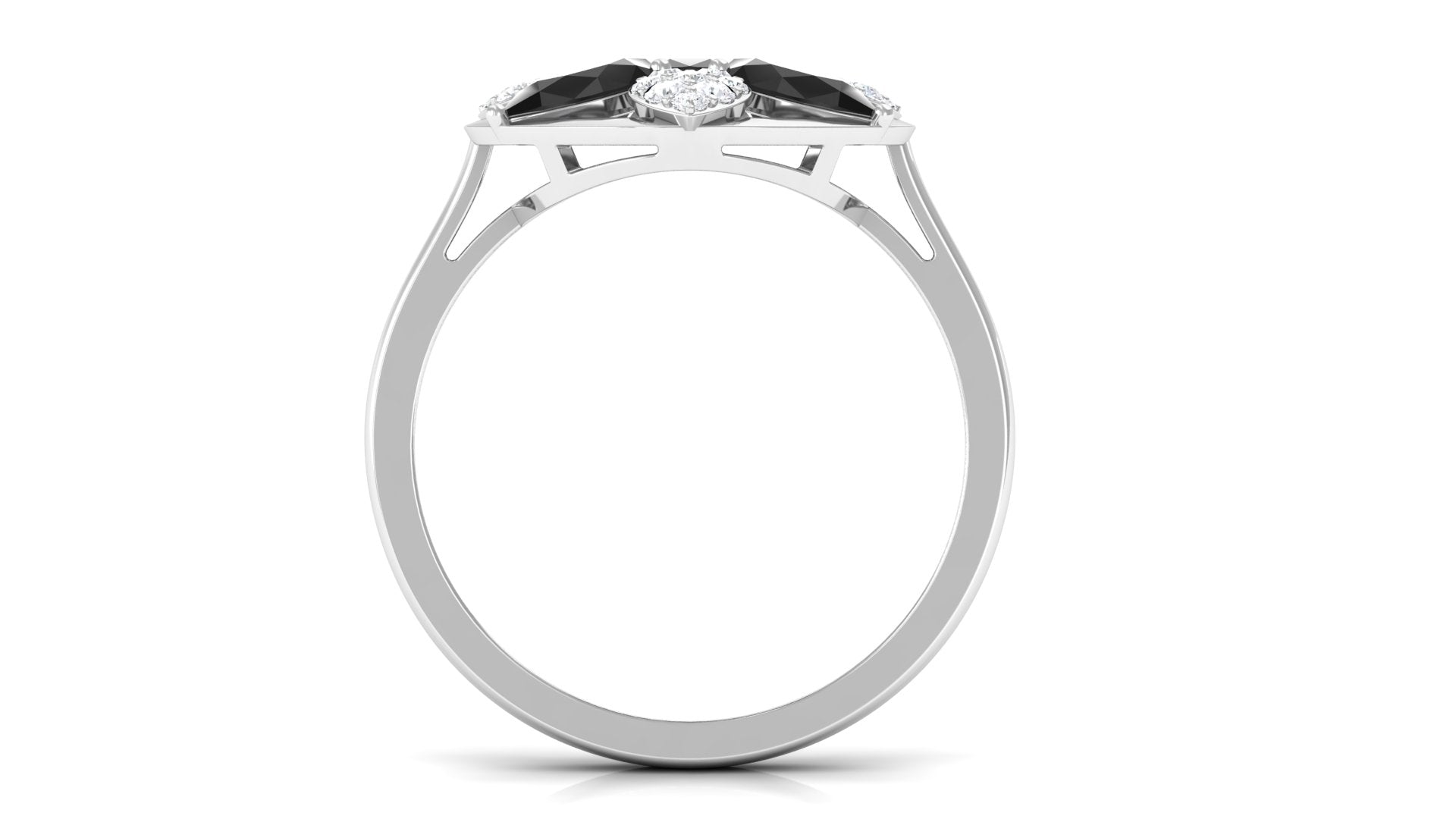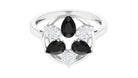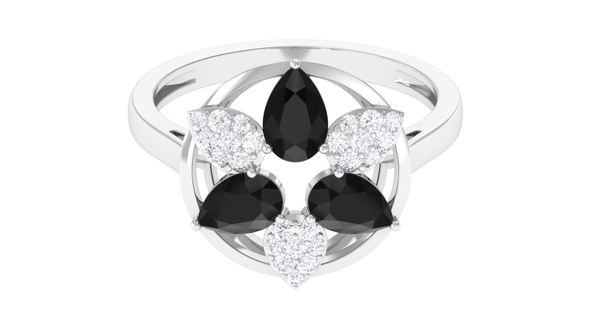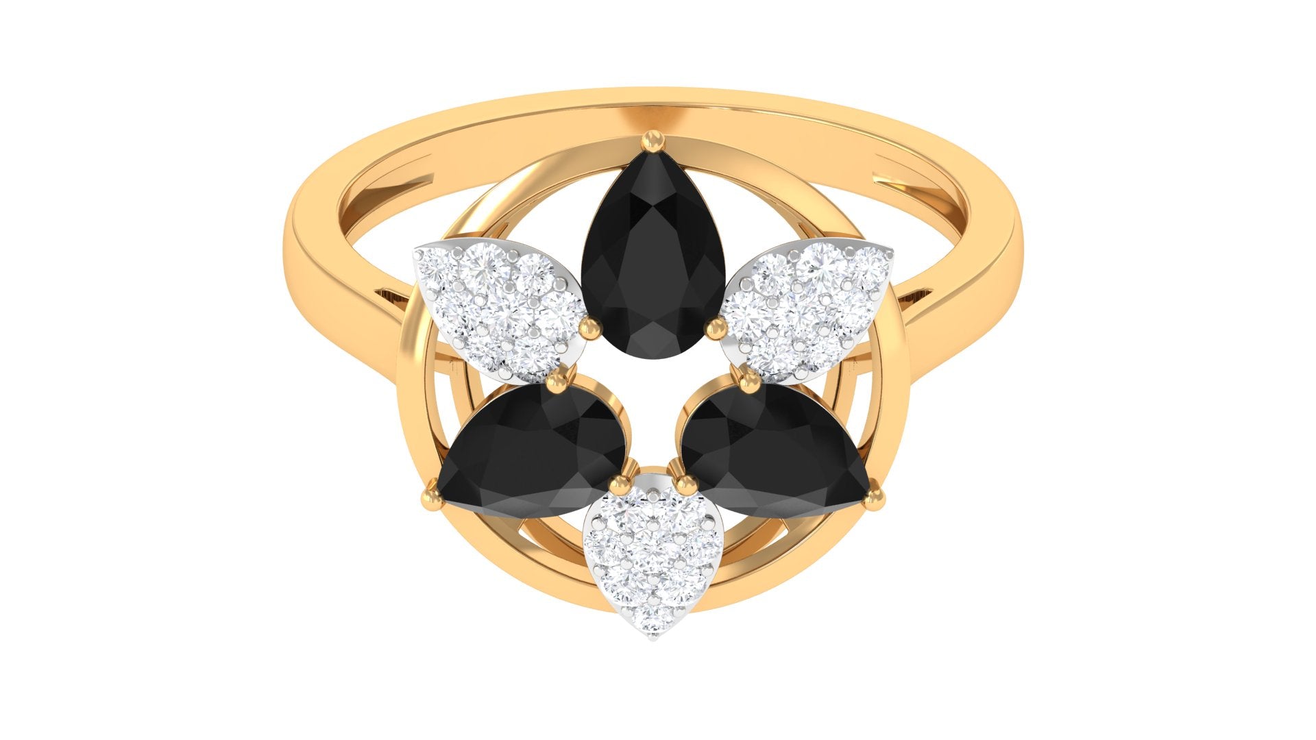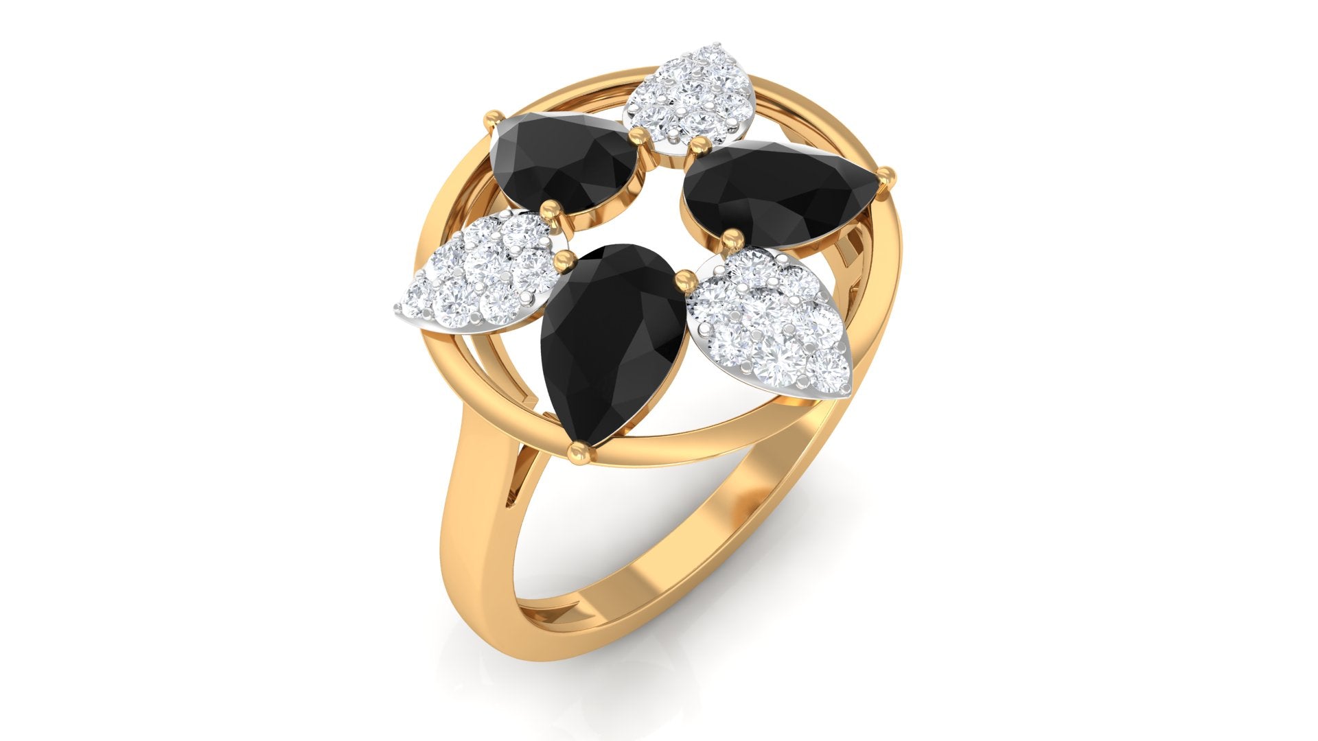 Bring a trendy eye catching look by wearing this Flower Ring embellished with Pear Shape Black Spinel and Round Shape Diamond.