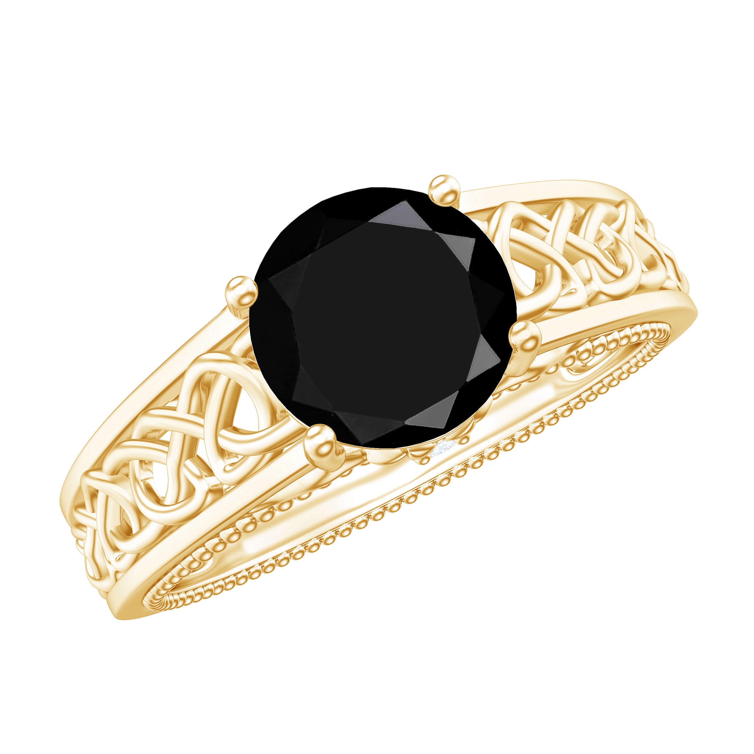 Complement your outfit for the special occasion with this gorgeous Solitaire Band adorned with Round Shape Black Spinel with Round Shape Diamond. This Solitaire Band Ring is crafted with Solid Gold with Celtic Details for a charming appeal.